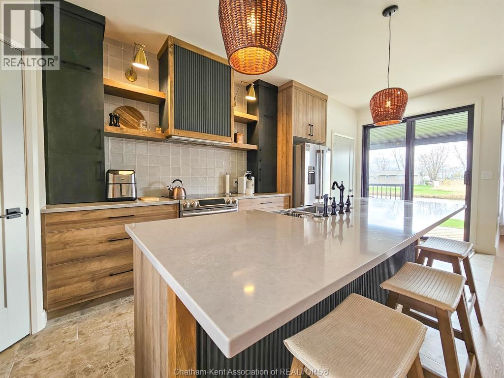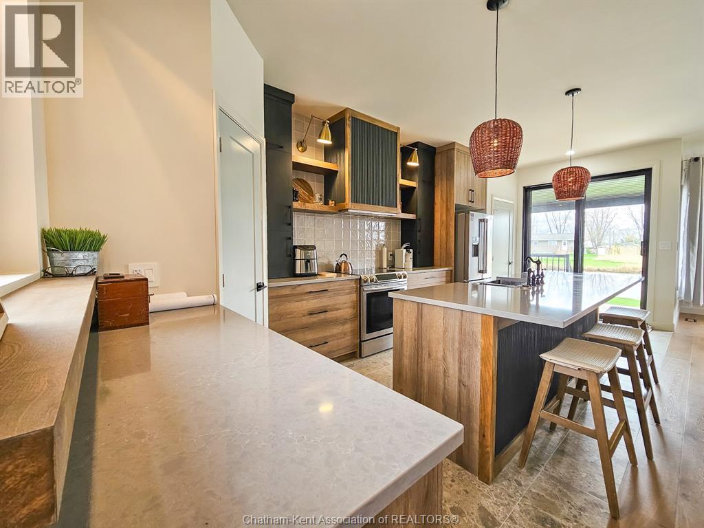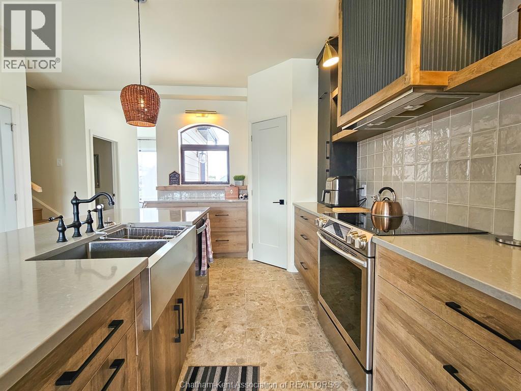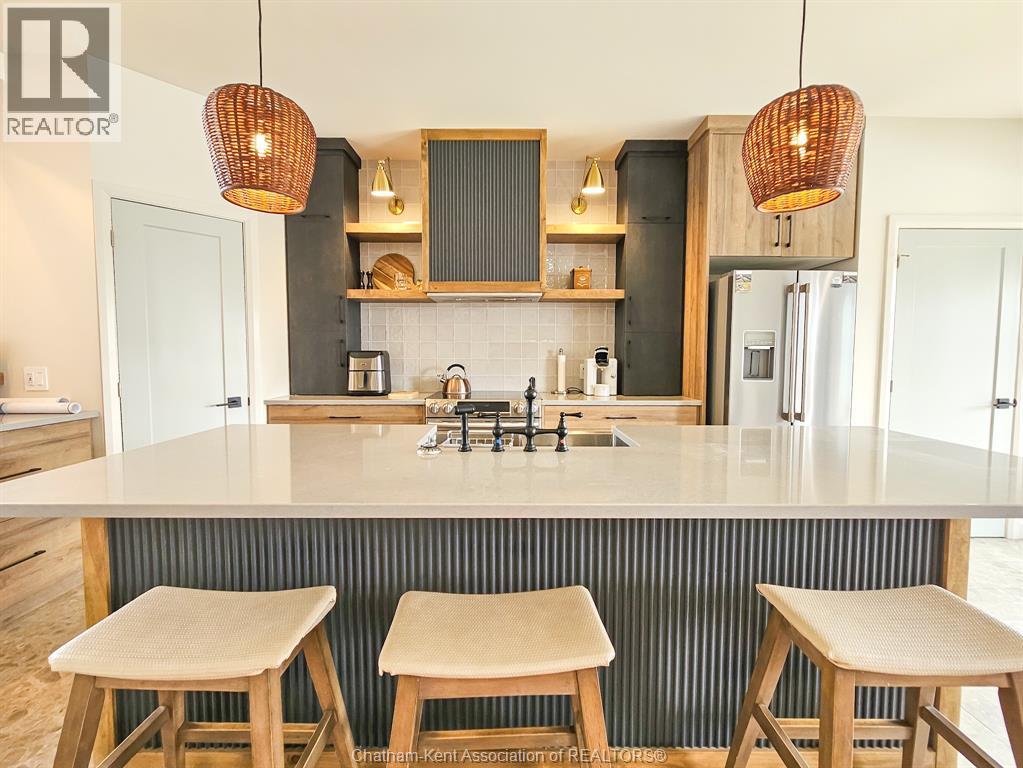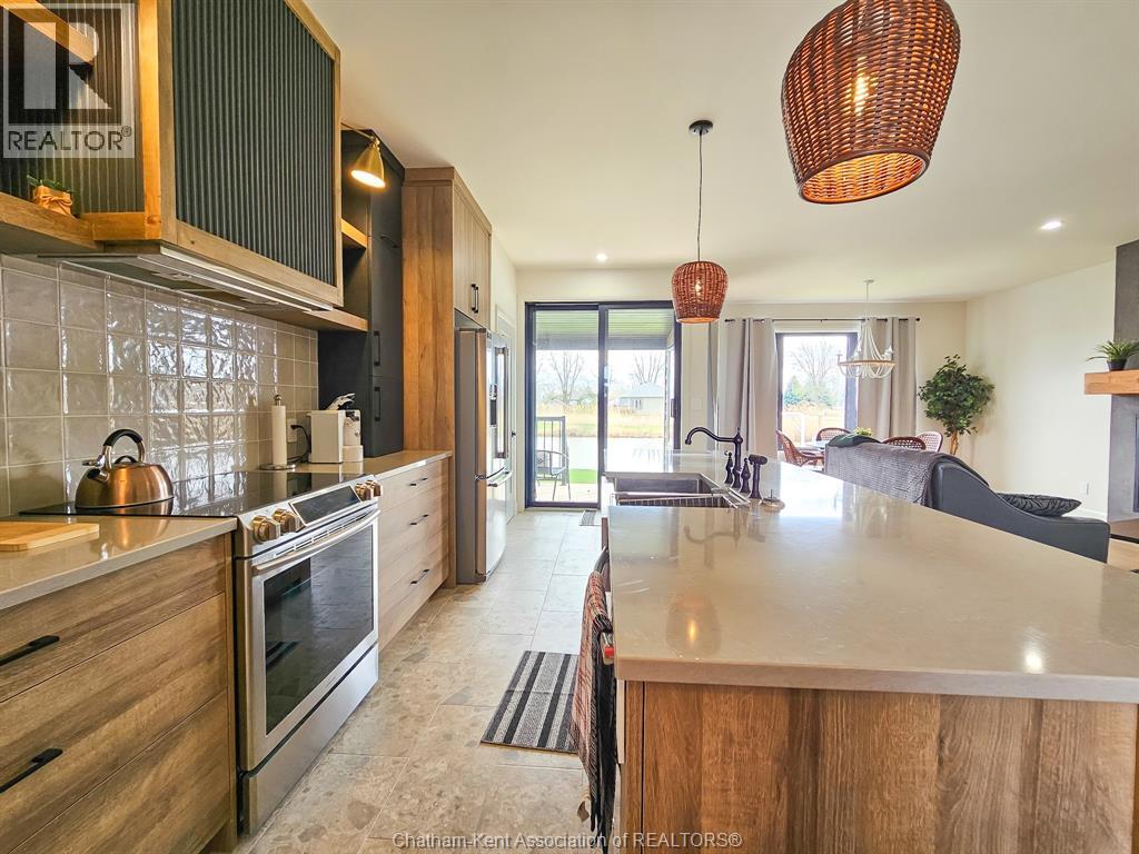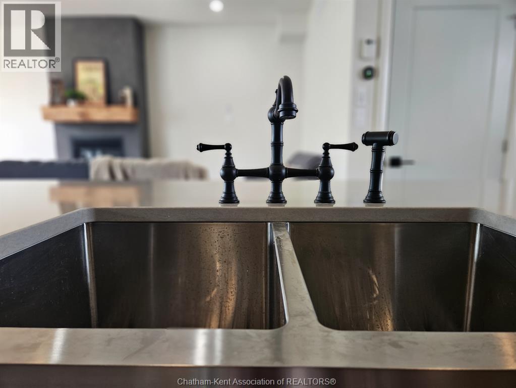 Modern Waterfront New-Build on Lake St. Clair This beautiful new-build backs onto a peaceful canal and offers stunning lake views from the front. Enjoy direct water access with a steel break wall, floating dock, power, running water, and space for a potential jet ski or small boat hoist. The exterior features Hardie board siding, black custom windows, a durable steel roof, and five security cameras for peace of mind. Inside, wide-plank engineered hardwood floors run through the main living area, centered around a gas fireplace. The kitchen boasts custom cabinetry, quartz countertops, stainless steel appliances, an apron-front sink with bridge faucet, and a walk-in pantry—all accented with durable ceramic tile flooring. Smart details include automatic lighting in all closets, a spacious foyer/mudroom, and a combined laundry/powder room. The main bath features a marble mosaic floor and a walk-in shower with bench seating. Two large bedrooms offer comfort, with the front bedroom opening to a private balcony with lake views. Enjoy outdoor living with a covered back porch, gas/electric hookups for a BBQ, stove, and dryer, plus a built-in EV charging station. (id:4555)