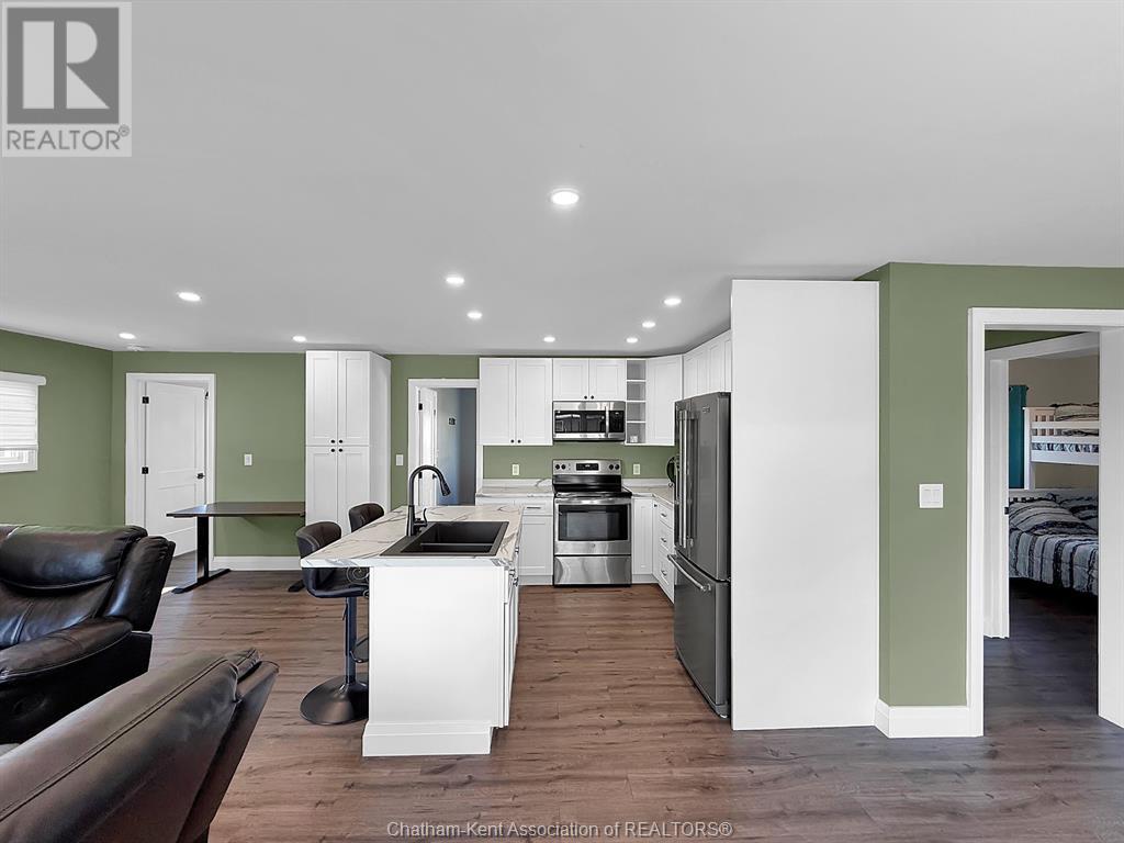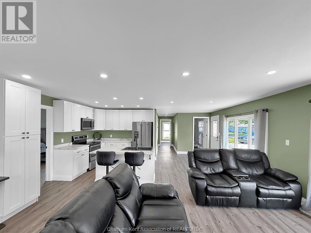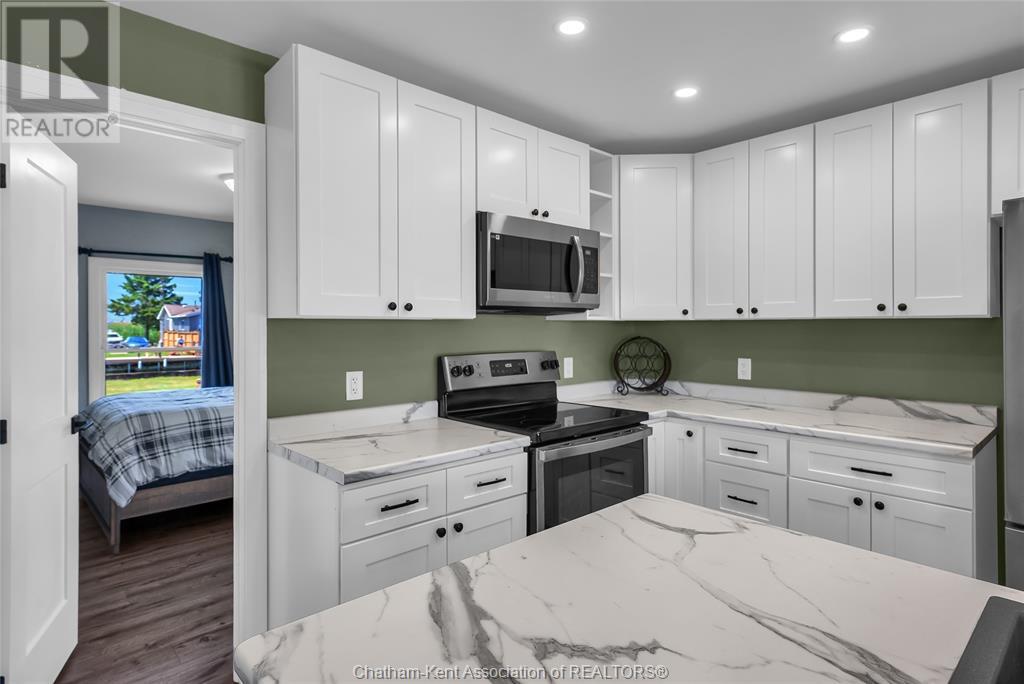An incredible opportunity to own this beautifully updated 3 bedroom waterfront bungalow situated on a rare double lot in the community of Shrewsbury. With approximately 120 feet of frontage and a steel breakwall, this property offers is just a short boat ride to Rondeau Bay for boating, swimming, and world-class fishing right from your backyard. Enjoy scenic water views of Rondeau Bay directly across the road and take in the peaceful surroundings of this well maintained property. Over the past four years, the home has undergone extensive renovations, including updated insulation, drywall, plumbing, electrical, shingles, a high-efficiency furnace and air conditioner, and an on-demand hot water heater. Inside, the bright open-concept layout is ideal for entertaining, featuring large windows that fill the home with natural light, stylish laminate flooring throughout, and a modern kitchen with updated cabinetry. Step outside to enjoy the large patio deck for relaxing or hosting guests, along with a convenient storage shed for tools and outdoor equipment. This is a turn-key waterfront property!! Don’t delay and call today to enjoy the amazing property. (id:4555)