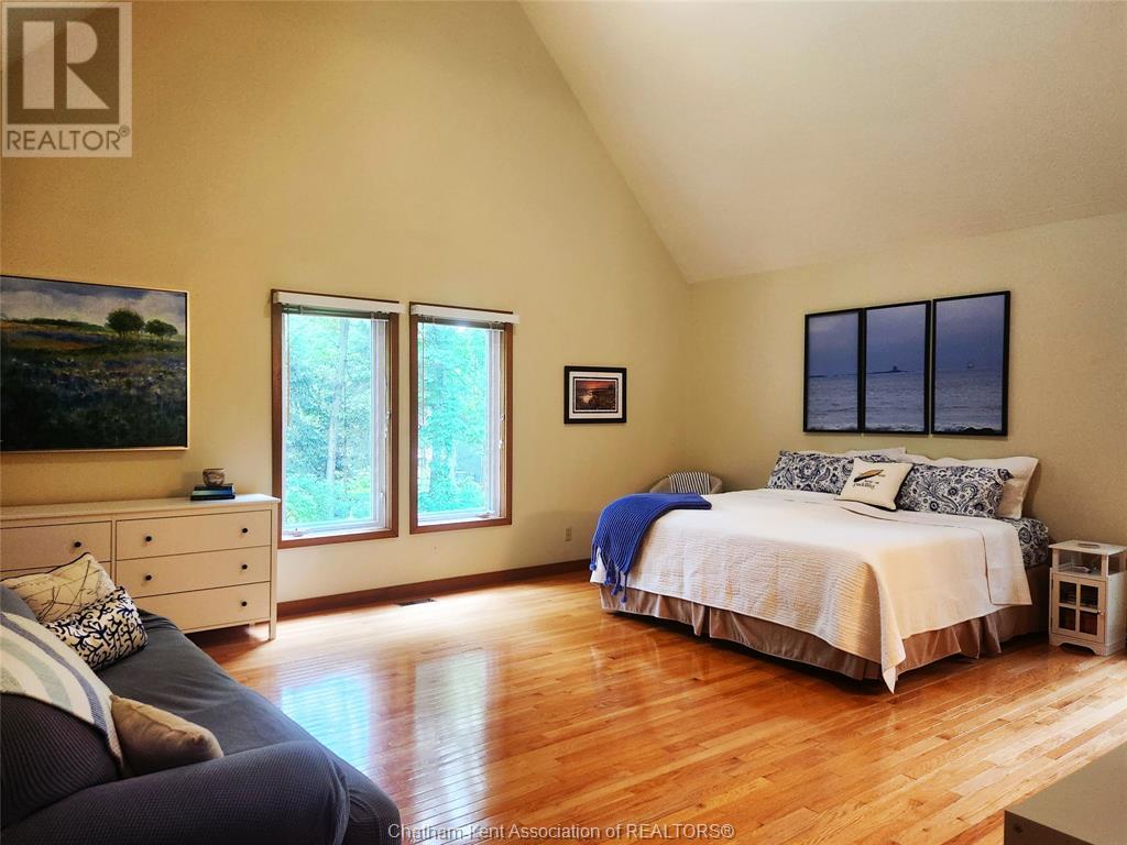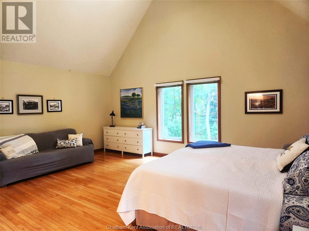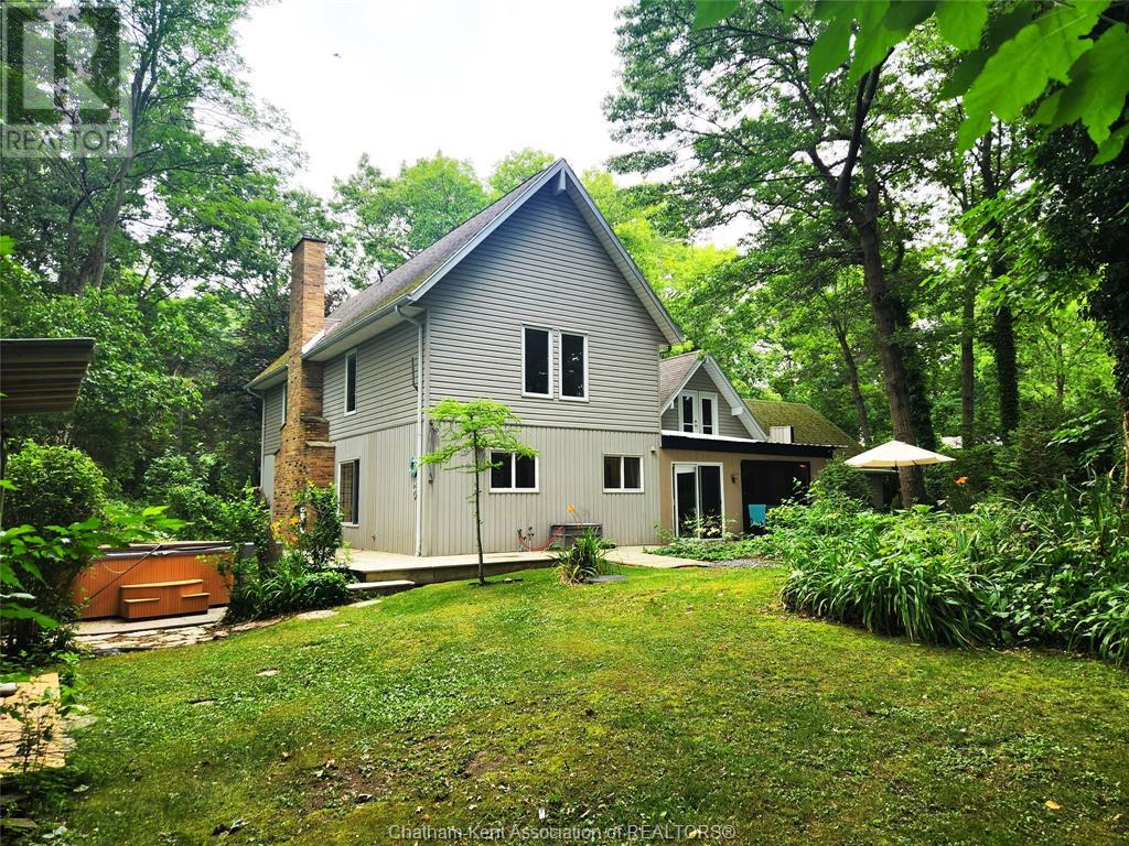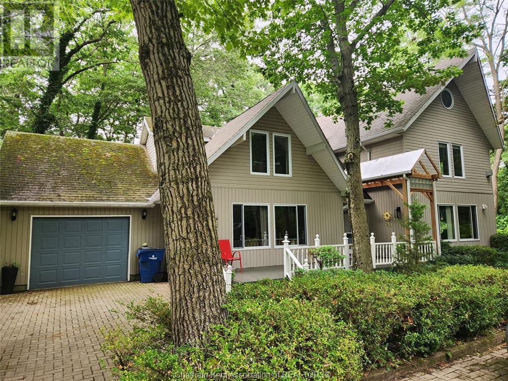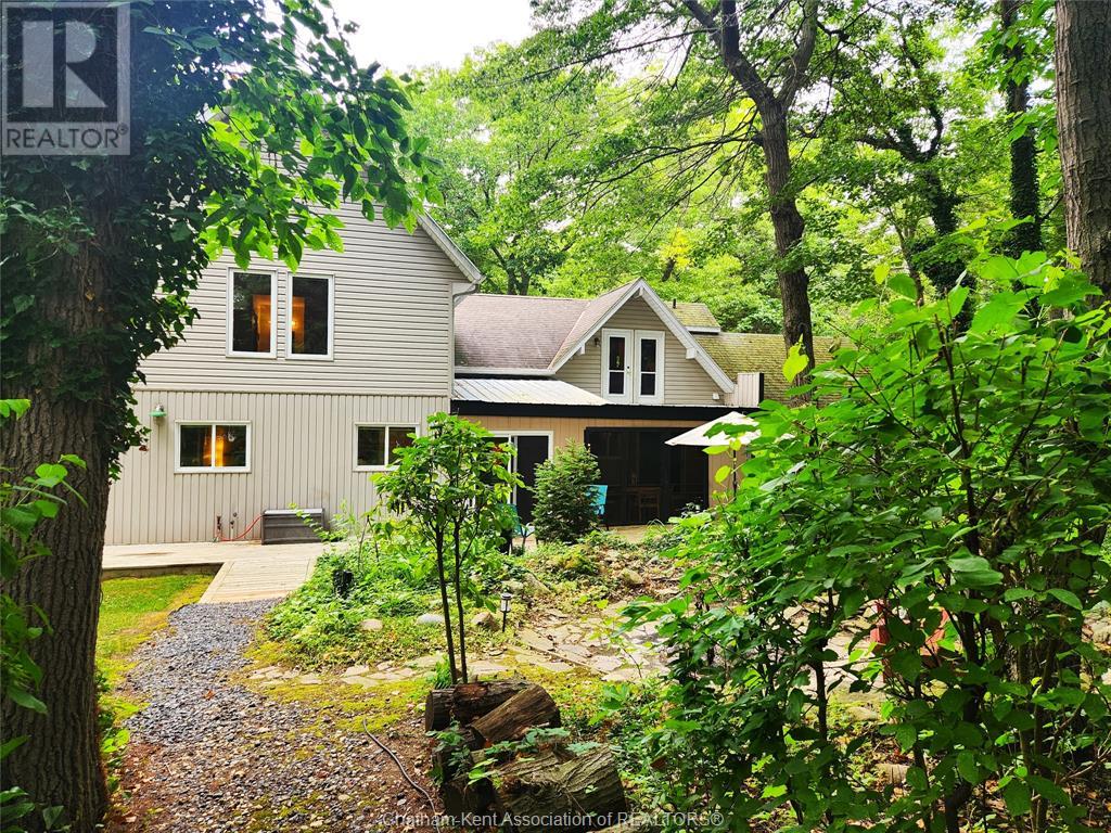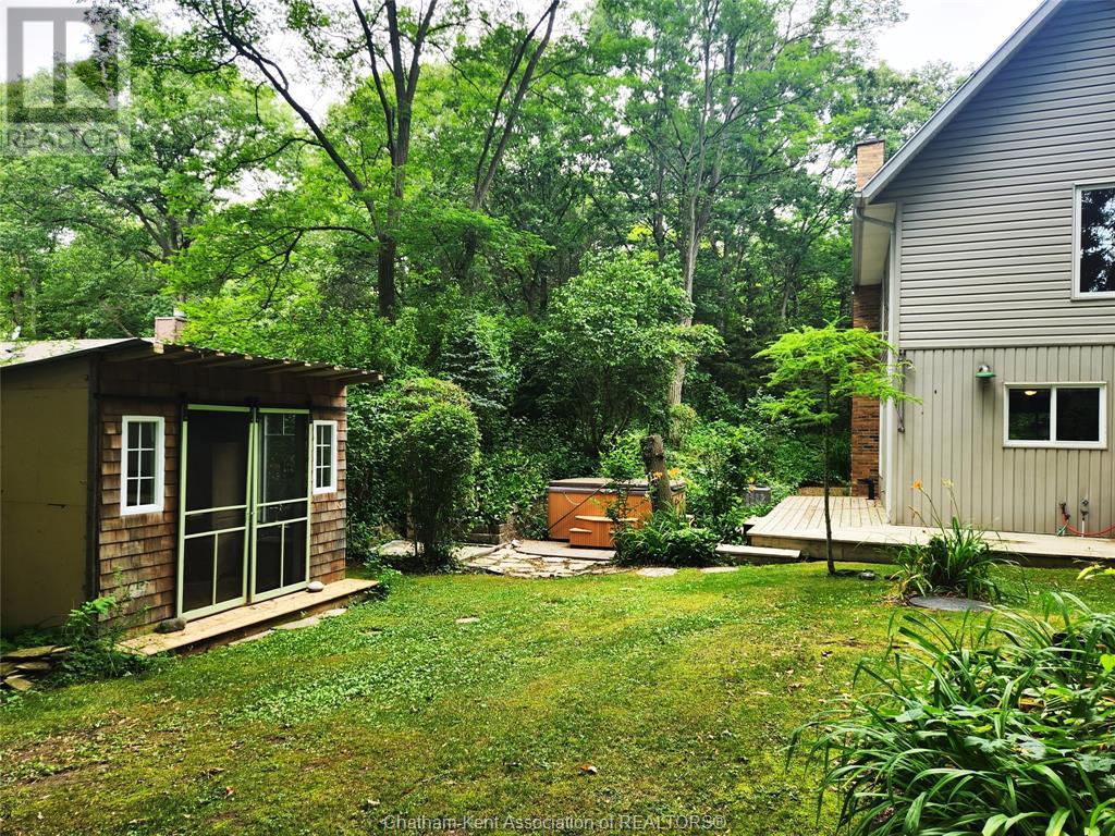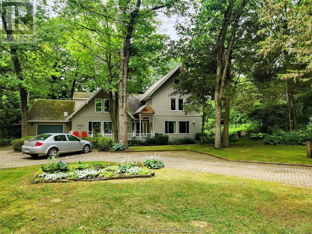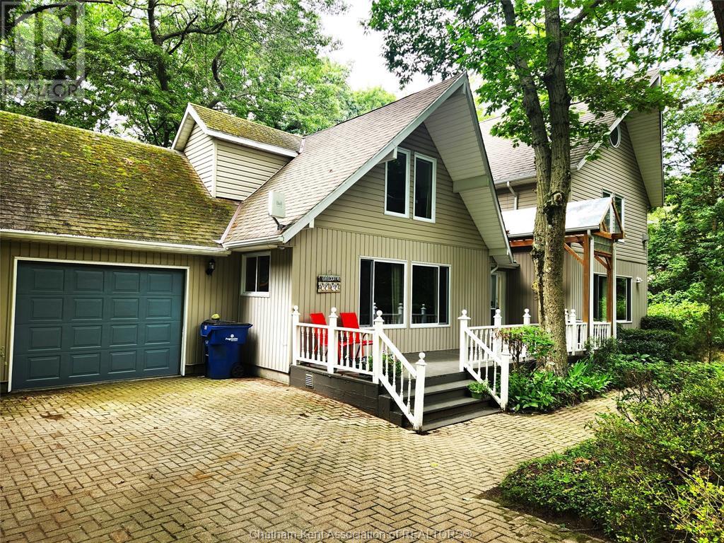 Welcome to Bates Subdivision located just outside Rondeau Provincial Park. Enjoy the natural beauty of this Carolinian Forest peninsula. Within one block north is Rondeau Bay and approximately a 100 foot walk south is public access to the sandy beach of Lake Erie. This area is a 4 season wonderland. The home built in approx 1965, with an addition in 2000 has been well cared for and updated as needed. It has generous spaces in all rooms. Entering the front door is a large bright foyer with an oak staircase to the upper level. The kitchen/dining/living room or great room is spacious and has a wood burning stove with charming brick hearth. There is a family room/library with built-in bookcases and tongue & groove wood panel. Most rooms have hardwood floors - kitchen and bath rooms have ceramic tile. The large primary bedroom and the second bedroom have vaulted ceilings. Both of these rooms have ensuite bath and the second bedroom has a gas fireplace. There is a 3rd 4 pc bath on the second floor. The windows have views of the side and back yards. The large private yard features spectacular landscaping that follows the natural sand dune contours. There is an attached screened in porch and both front and rear exterior decks. The 2 backyard sheds would make fabulous bunkies or simply great storage. With attached garage, inter-locking brick driveway, updated mechanicals and so much more this home is an absolute must-see! the home overlooks a 72 acre conservation area on east side of Sixth St. This lot is one and a half lot in width at 108.4 feet. (id:4555)