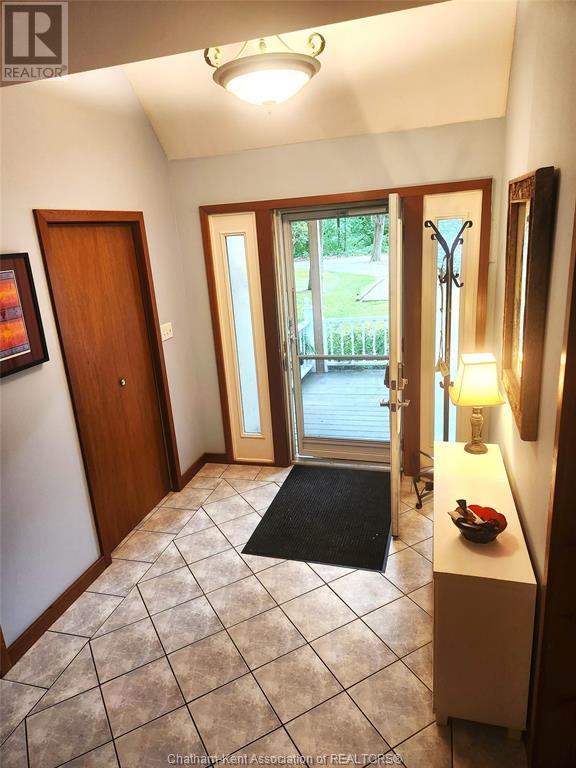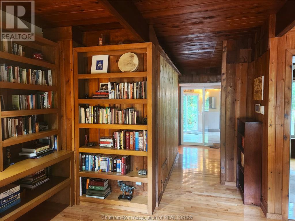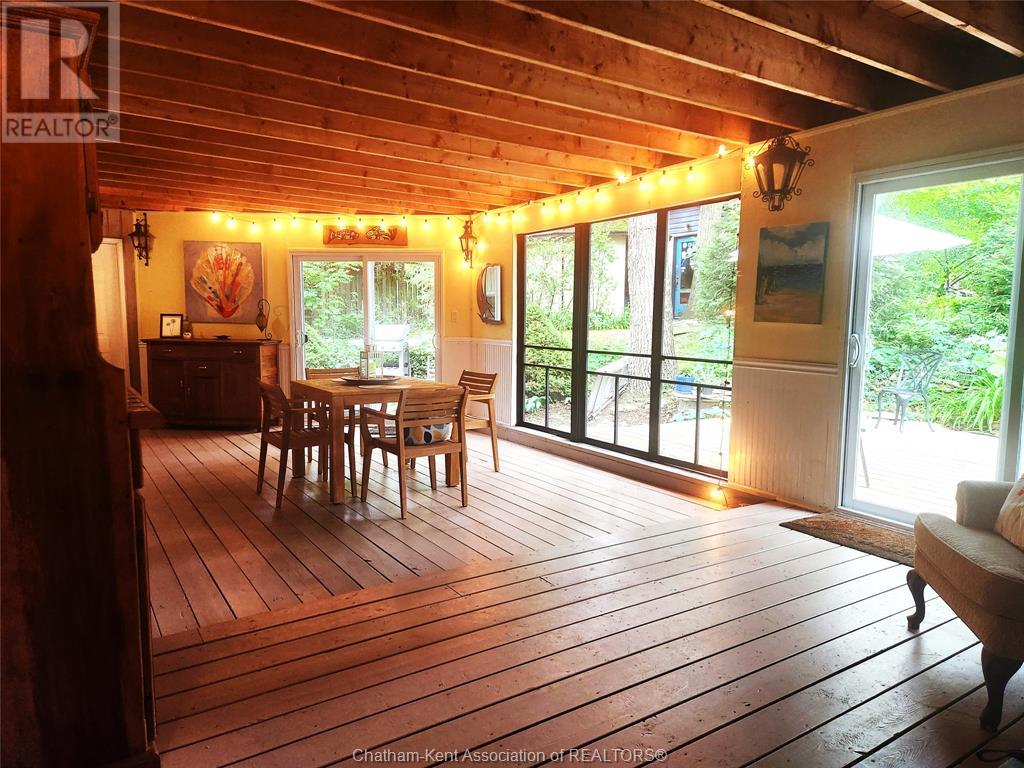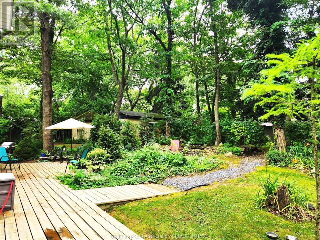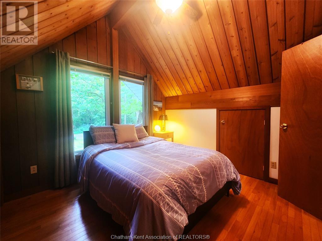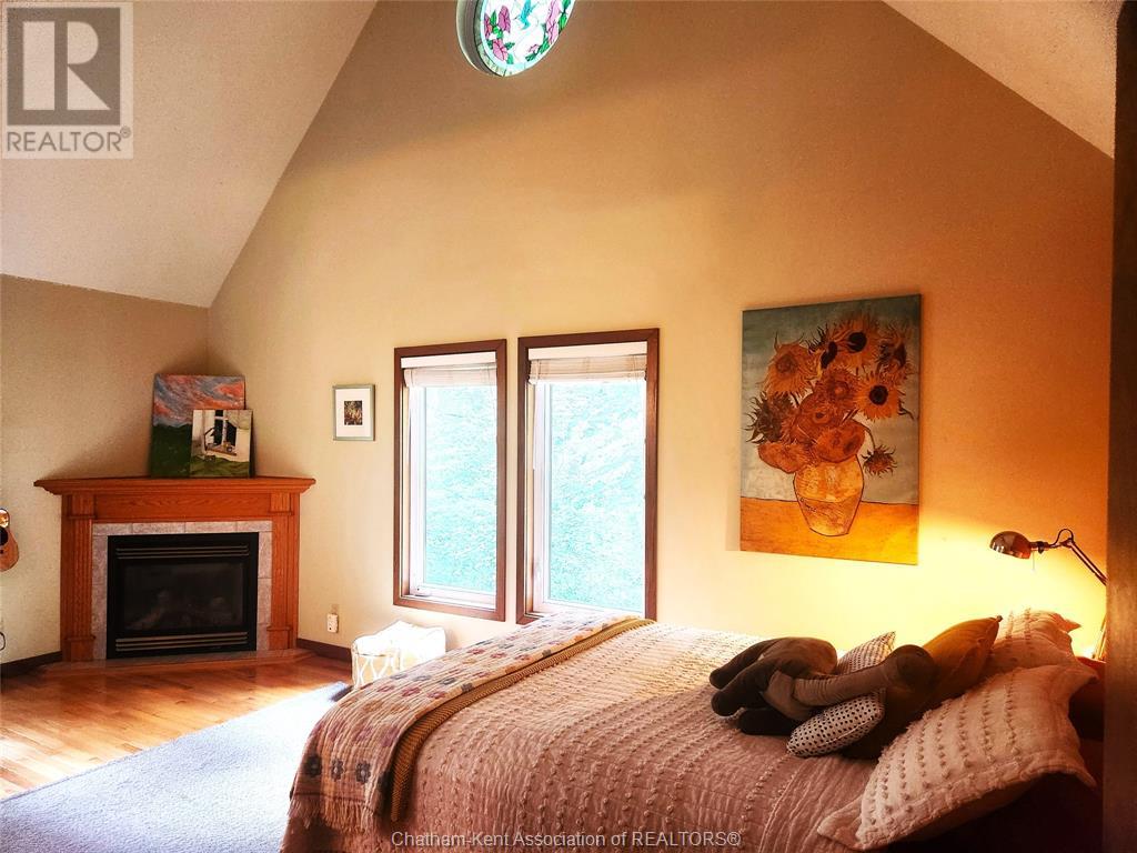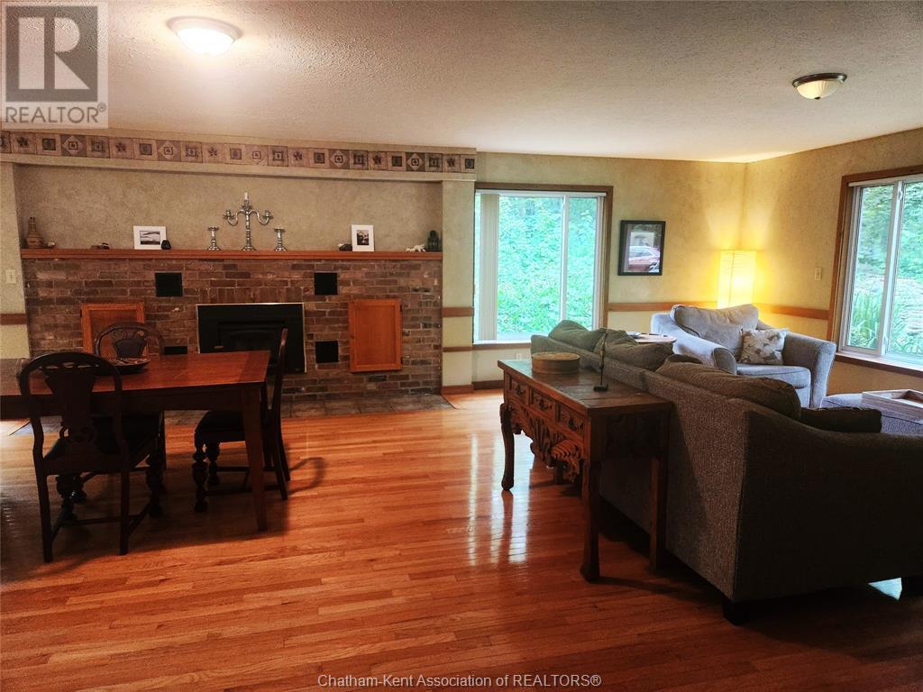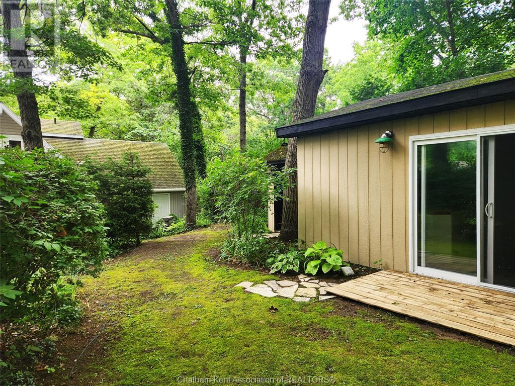 Welcome to Bates Subdivision located just outside Rondeau Provincial Park. Enjoy the natural beauty of this Carolinian Forest peninsula. Within one block north is Rondeau Bay and approximately a 100 foot walk south is public access to the sandy beach of Lake Erie. This area is a 4 season wonderland. The home built in approx 1965, with an addition in 2000 has been well cared for and updated as needed. It has generous spaces in all rooms. Entering the front door is a large bright foyer with an oak staircase to the upper level. The kitchen/dining/living room or great room is spacious and has a wood burning stove with charming brick hearth. There is a family room/library with built-in bookcases and tongue & groove wood panel. Most rooms have hardwood floors - kitchen and bath rooms have ceramic tile. The large primary bedroom and the second bedroom have vaulted ceilings. Both of these rooms have ensuite bath and the second bedroom has a gas fireplace. There is a 3rd 4 pc bath on the second floor. The windows have views of the side and back yards. The large private yard features spectacular landscaping that follows the natural sand dune contours. There is an attached screened in porch and both front and rear exterior decks. The 2 backyard sheds would make fabulous bunkies or simply great storage. With attached garage, inter-locking brick driveway, updated mechanicals and so much more this home is an absolute must-see! the home overlooks a 72 acre conservation area on east side of Sixth St. This lot is one and a half lot in width at 108.4 feet. (id:4555)