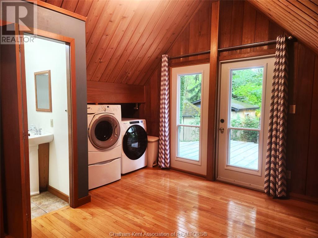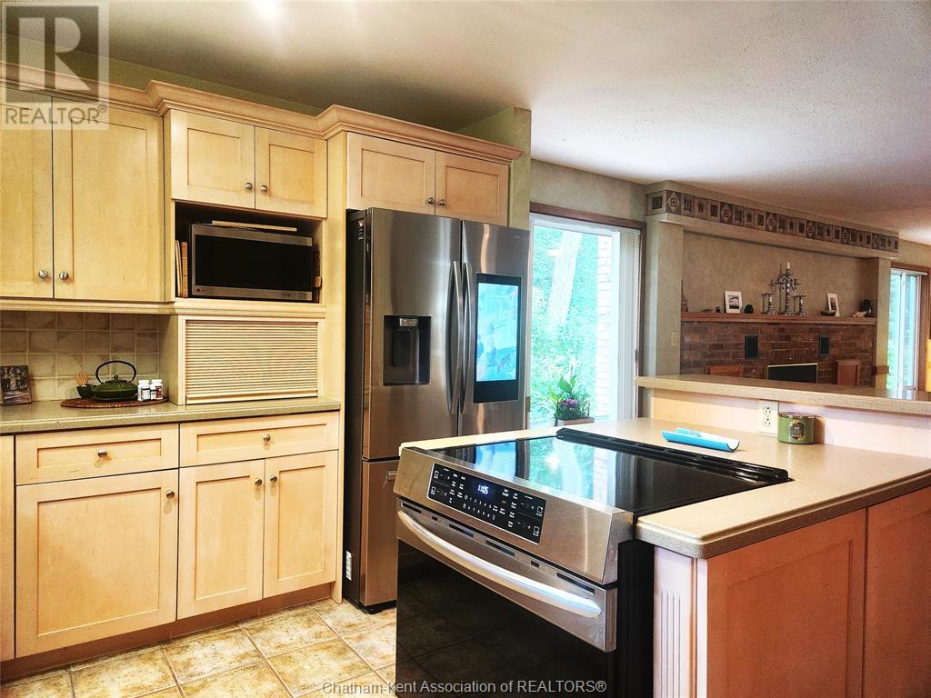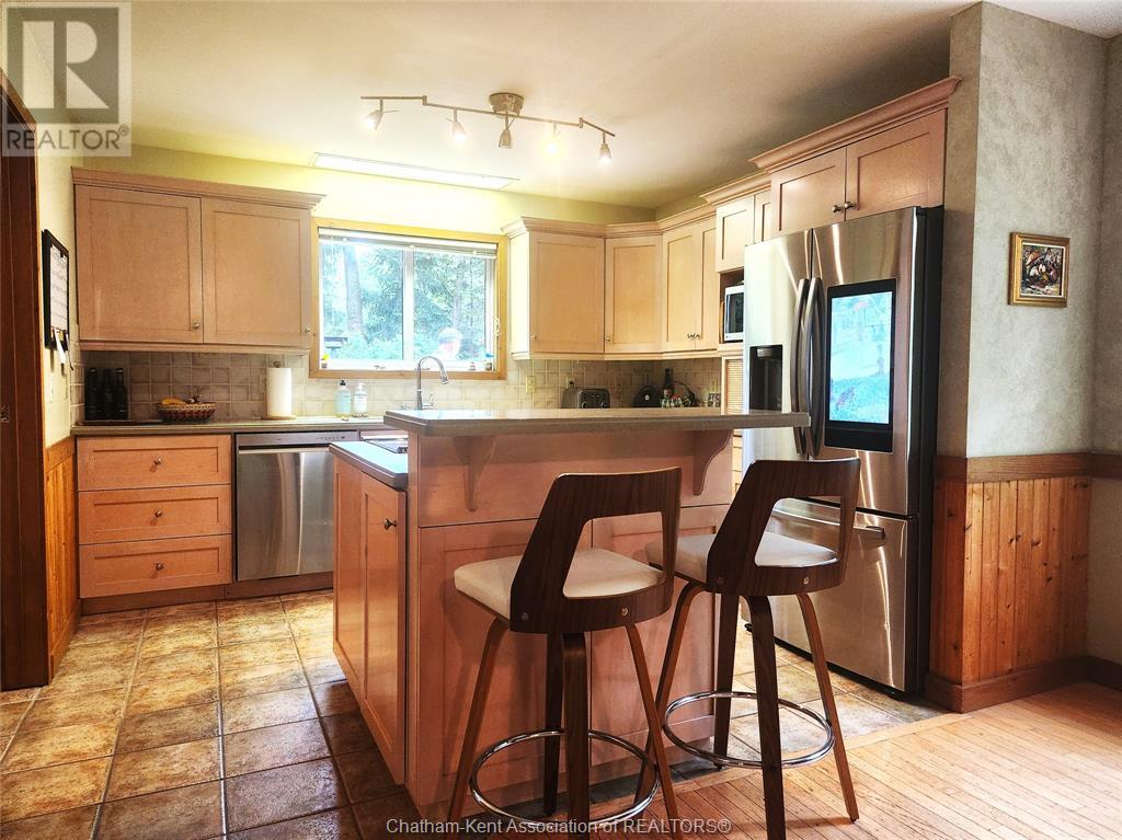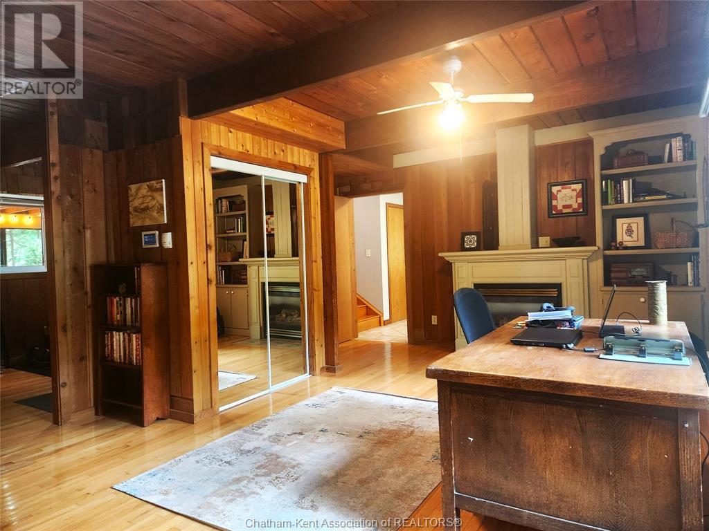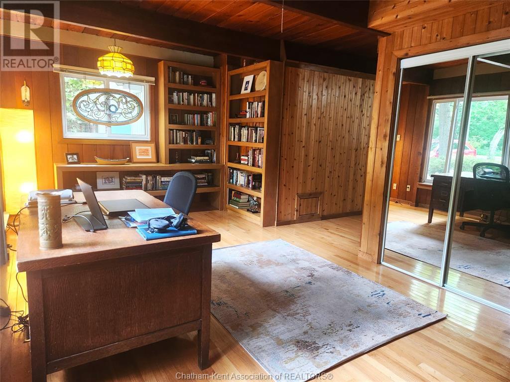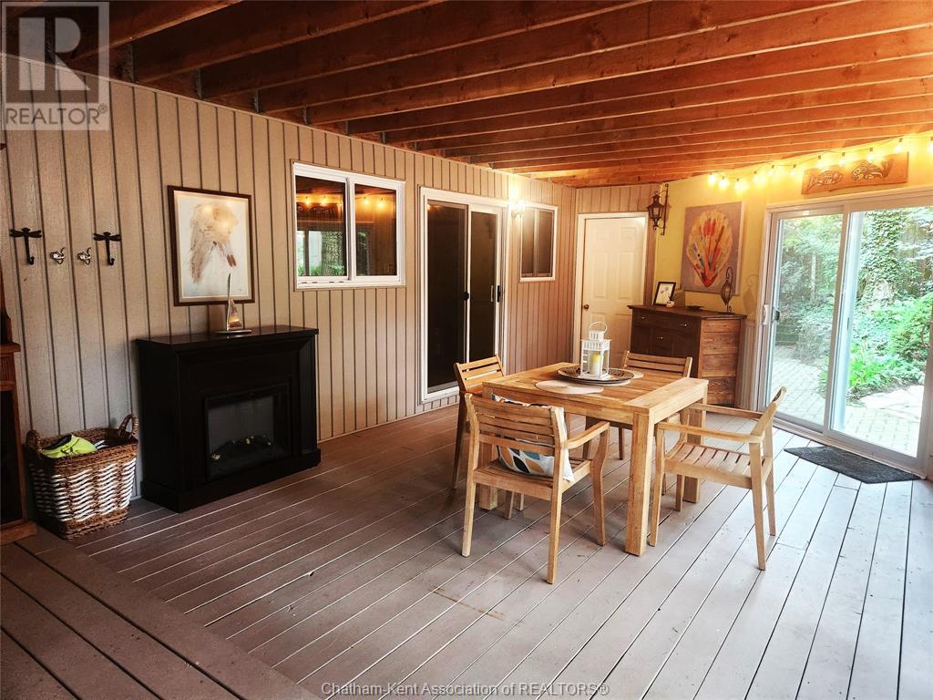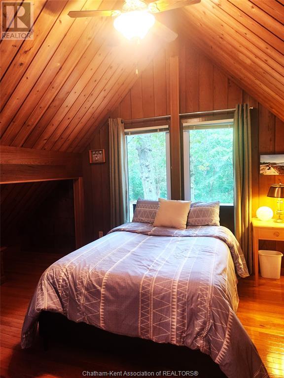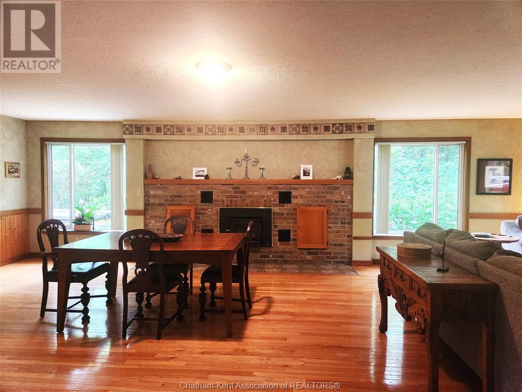 Welcome to Bates Subdivision located just outside Rondeau Provincial Park. Enjoy the natural beauty of this Carolinian Forest peninsula. Within one block north is Rondeau Bay and approximately a 100 foot walk south is public access to the sandy beach of Lake Erie. This area is a 4 season wonderland. The home built in approx 1965, with an addition in 2000 has been well cared for and updated as needed. It has generous spaces in all rooms. Entering the front door is a large bright foyer with an oak staircase to the upper level. The kitchen/dining/living room or great room is spacious and has a wood burning stove with charming brick hearth. There is a family room/library with built-in bookcases and tongue & groove wood panel. Most rooms have hardwood floors - kitchen and bath rooms have ceramic tile. The large primary bedroom and the second bedroom have vaulted ceilings. Both of these rooms have ensuite bath and the second bedroom has a gas fireplace. There is a 3rd 4 pc bath on the second floor. The windows have views of the side and back yards. The large private yard features spectacular landscaping that follows the natural sand dune contours. There is an attached screened in porch and both front and rear exterior decks. The 2 backyard sheds would make fabulous bunkies or simply great storage. With attached garage, inter-locking brick driveway, updated mechanicals and so much more this home is an absolute must-see! the home overlooks a 72 acre conservation area on east side of Sixth St. This lot is one and a half lot in width at 108.4 feet. (id:4555)