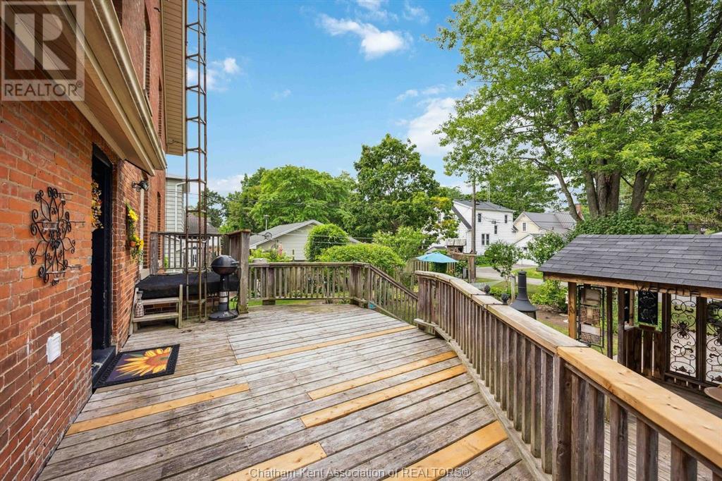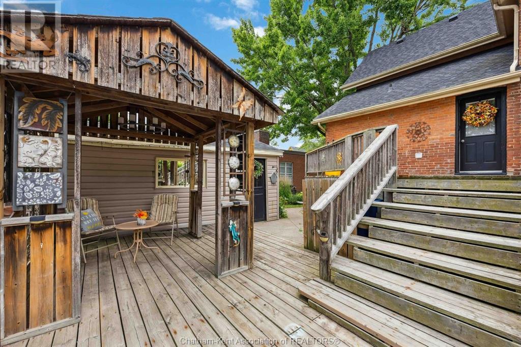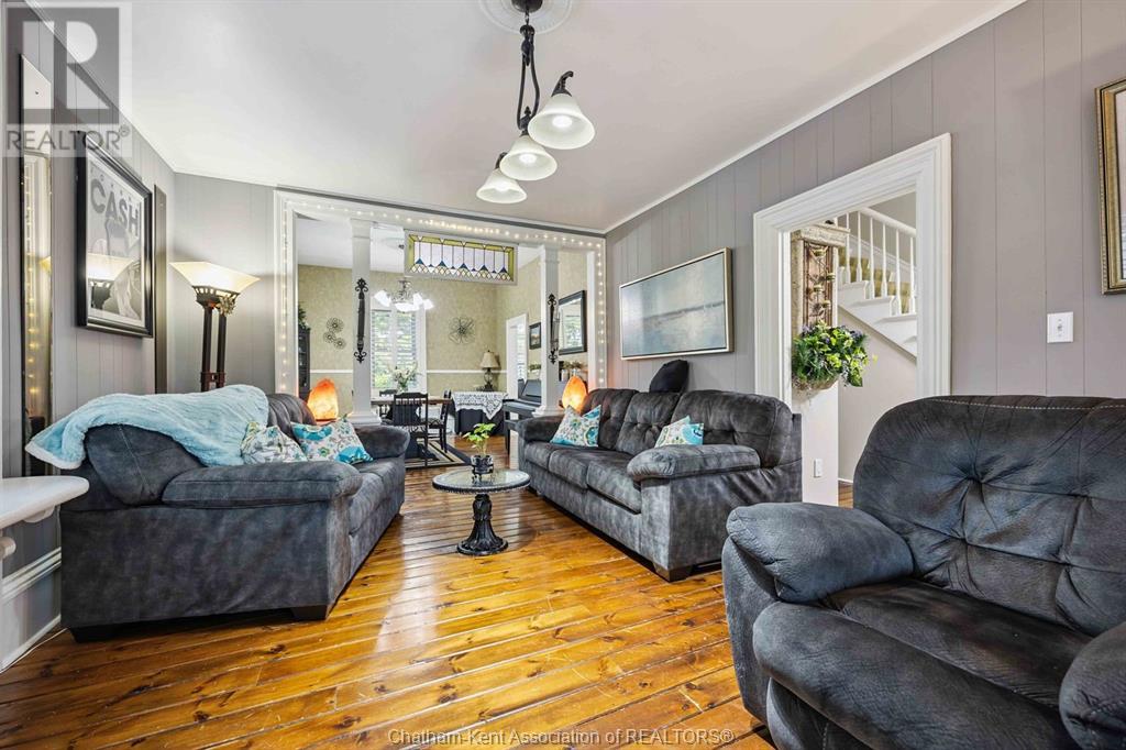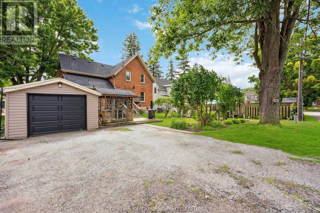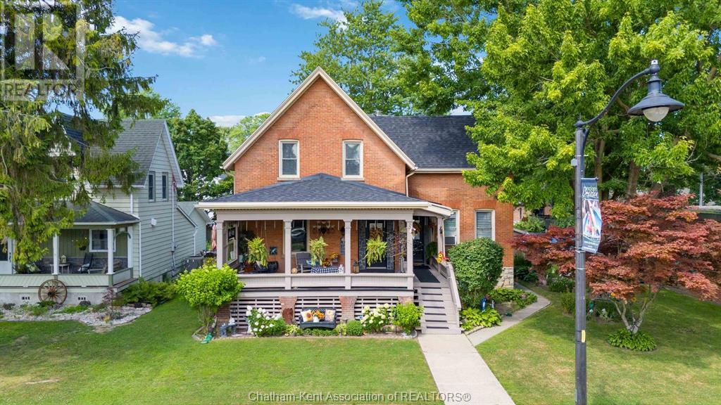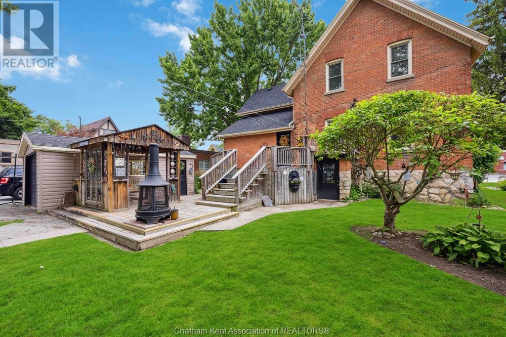 Charming Home in the Heart of Dresden! Welcome to this warm and inviting 4-bed, 2-bath home ideally located on the main street one block from uptown, two blocks from the public school, and walking distance to all local amenities. The main floor offers open living and dining spaces with gleaming pine floors and fresh paint throughout (2023). The 4th bedroom, currently used as an office, features separate entrance to front porch and 3-piece ensuite with relaxing soaker tub. Upstairs, you'll find 3 generously sized bedrooms, a main full bath, multiple walk-in closets and a convenient second staircase access to the lower level. White California shutters grace the home throughout. Main floor laundry, with Laundry Pure System, is conveniently located near the back entrance for accessibility to clothes line. You’ll fall in love with the spacious, covered front porch, freshly painted in 2023, complete with a classic porch swing. It's the perfect spot to enjoy your morning coffee, read a book, or simply watch the world go by. Whether you're soaking in the quiet charm of the neighborhood or chatting with passersby, this porch offers a peaceful escape and timeless small-town comfort. Replaced porch steps, part of porch (2023) along with fresh porch & door(s) paint. Enjoy outdoor living on the 3-level back deck complete with a gazebo, surrounded by well-loved perennial gardens, mature trees, lilac, blooming purple wisteria & beautiful Japanese Maple near porch. The single detached insulated garage has hydro and a concrete floor & rear parking for two vehicles. Additional features include: New roof (2024); Unfinished basement with walkout to backyard; Water filtration system; LED programmable home lighting by Lift Lighting (200 bulbs, 2 levels); Original stone foundation with unique etchings. This beautifully maintained home is a rare find—blending historic charm with modern updates, all in a prime Dresden location. Don’t miss your chance to own this one-of-a-kind property! (id:4555)