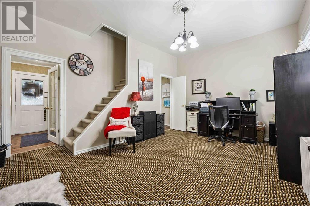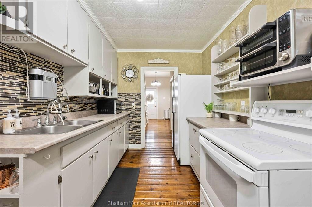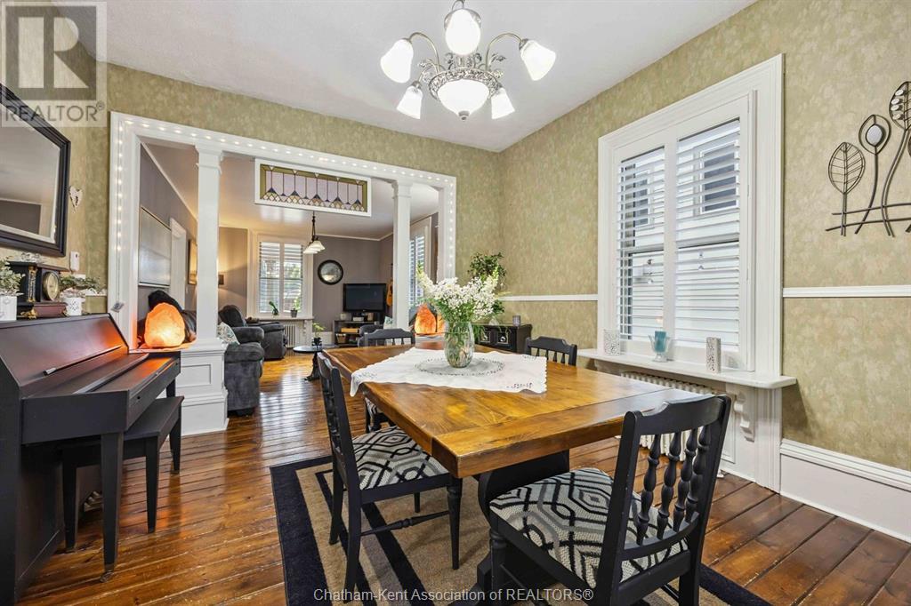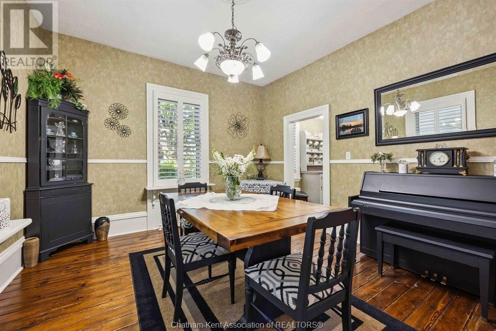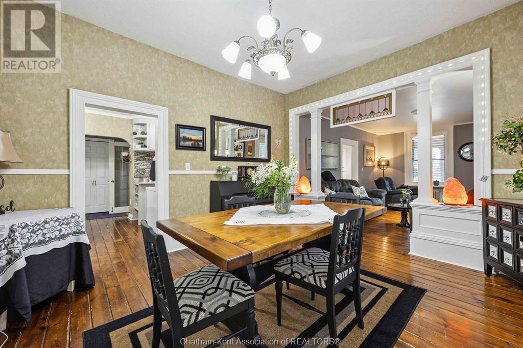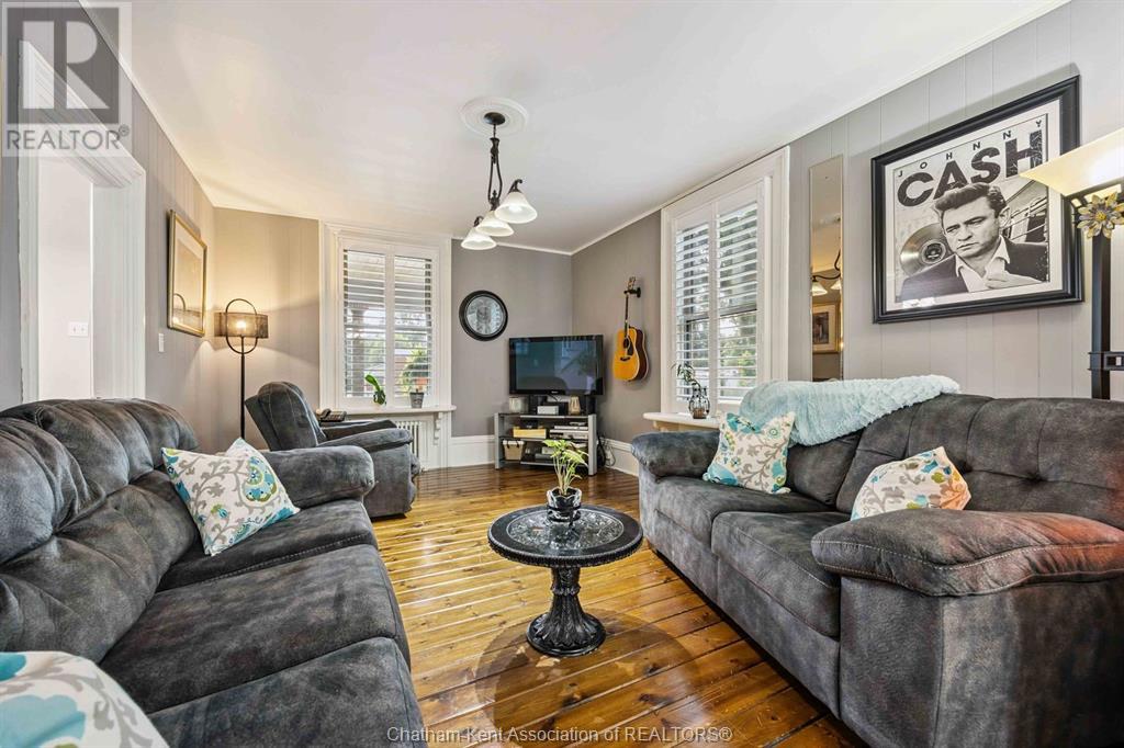 Charming Home in the Heart of Dresden! Welcome to this warm and inviting 4-bed, 2-bath home ideally located on the main street one block from uptown, two blocks from the public school, and walking distance to all local amenities. The main floor offers open living and dining spaces with gleaming pine floors and fresh paint throughout (2023). The 4th bedroom, currently used as an office, features separate entrance to front porch and 3-piece ensuite with relaxing soaker tub. Upstairs, you'll find 3 generously sized bedrooms, a main full bath, multiple walk-in closets and a convenient second staircase access to the lower level. White California shutters grace the home throughout. Main floor laundry, with Laundry Pure System, is conveniently located near the back entrance for accessibility to clothes line. You’ll fall in love with the spacious, covered front porch, freshly painted in 2023, complete with a classic porch swing. It's the perfect spot to enjoy your morning coffee, read a book, or simply watch the world go by. Whether you're soaking in the quiet charm of the neighborhood or chatting with passersby, this porch offers a peaceful escape and timeless small-town comfort. Replaced porch steps, part of porch (2023) along with fresh porch & door(s) paint. Enjoy outdoor living on the 3-level back deck complete with a gazebo, surrounded by well-loved perennial gardens, mature trees, lilac, blooming purple wisteria & beautiful Japanese Maple near porch. The single detached insulated garage has hydro and a concrete floor & rear parking for two vehicles. Additional features include: New roof (2024); Unfinished basement with walkout to backyard; Water filtration system; LED programmable home lighting by Lift Lighting (200 bulbs, 2 levels); Original stone foundation with unique etchings. This beautifully maintained home is a rare find—blending historic charm with modern updates, all in a prime Dresden location. Don’t miss your chance to own this one-of-a-kind property! (id:4555)
