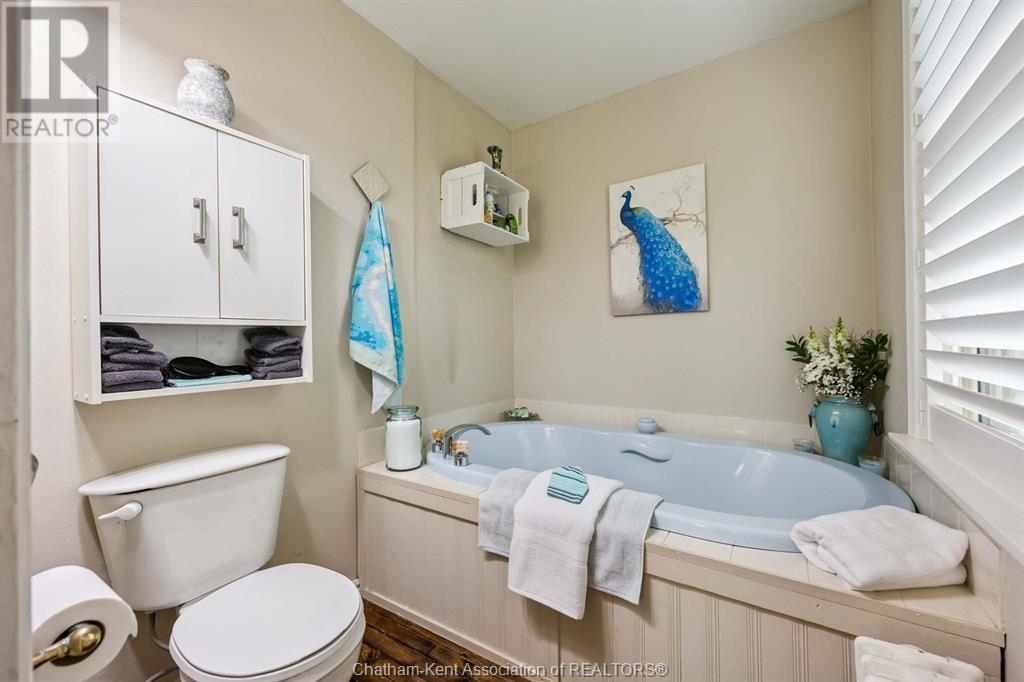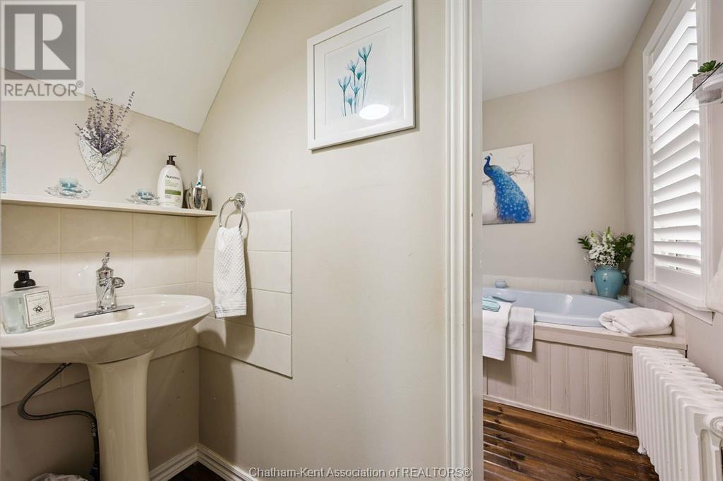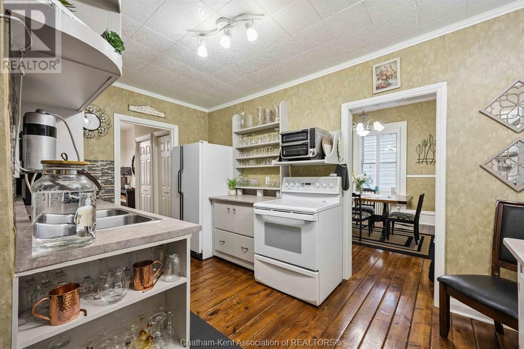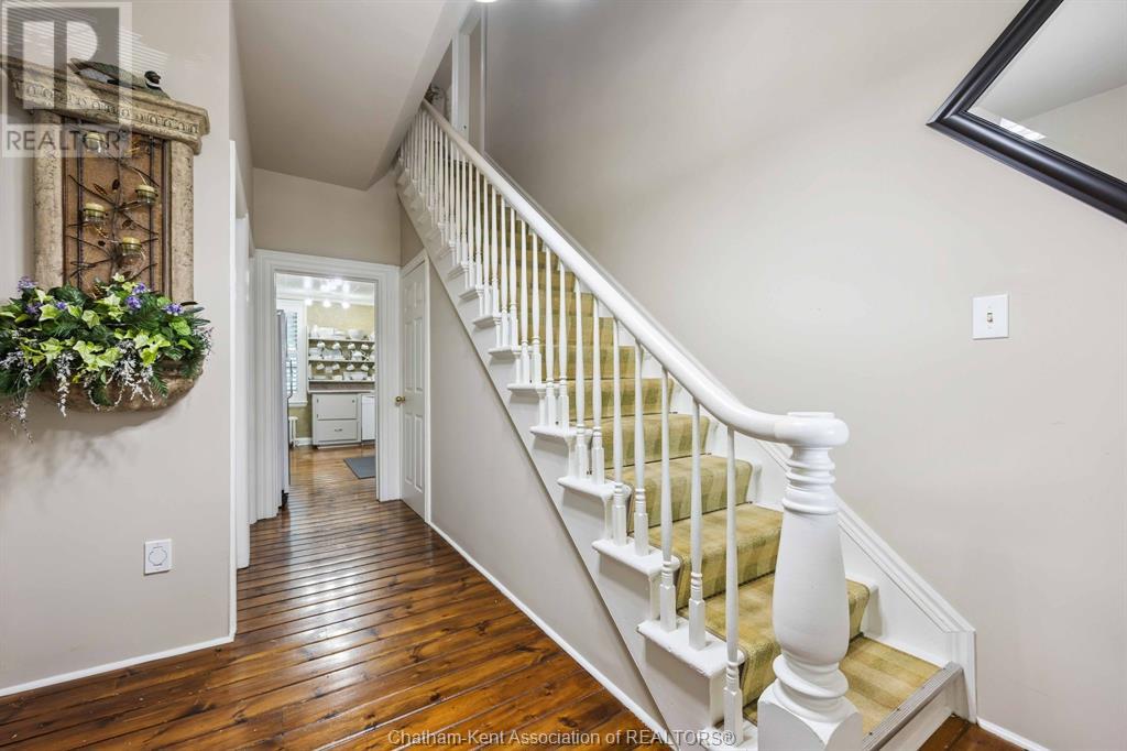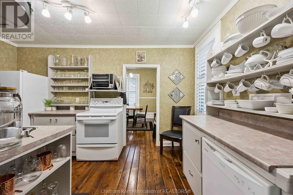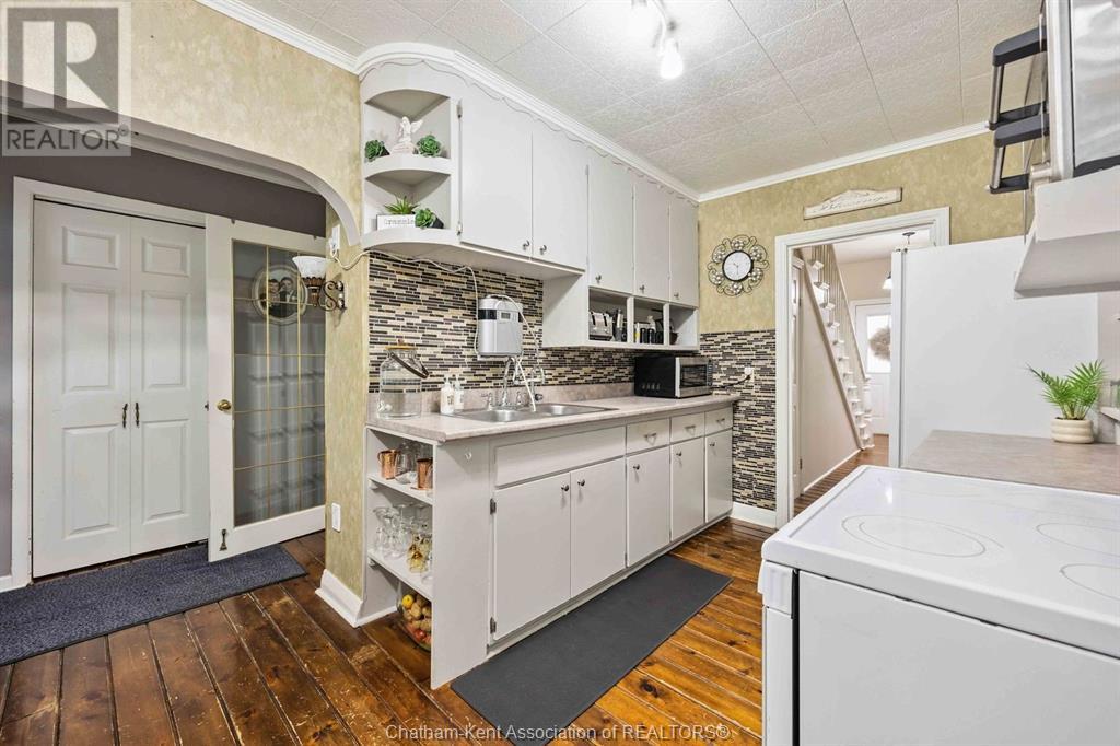 Charming Home in the Heart of Dresden! Welcome to this warm and inviting 4-bed, 2-bath home ideally located on the main street one block from uptown, two blocks from the public school, and walking distance to all local amenities. The main floor offers open living and dining spaces with gleaming pine floors and fresh paint throughout (2023). The 4th bedroom, currently used as an office, features separate entrance to front porch and 3-piece ensuite with relaxing soaker tub. Upstairs, you'll find 3 generously sized bedrooms, a main full bath, multiple walk-in closets and a convenient second staircase access to the lower level. White California shutters grace the home throughout. Main floor laundry, with Laundry Pure System, is conveniently located near the back entrance for accessibility to clothes line. You’ll fall in love with the spacious, covered front porch, freshly painted in 2023, complete with a classic porch swing. It's the perfect spot to enjoy your morning coffee, read a book, or simply watch the world go by. Whether you're soaking in the quiet charm of the neighborhood or chatting with passersby, this porch offers a peaceful escape and timeless small-town comfort. Replaced porch steps, part of porch (2023) along with fresh porch & door(s) paint. Enjoy outdoor living on the 3-level back deck complete with a gazebo, surrounded by well-loved perennial gardens, mature trees, lilac, blooming purple wisteria & beautiful Japanese Maple near porch. The single detached insulated garage has hydro and a concrete floor & rear parking for two vehicles. Additional features include: New roof (2024); Unfinished basement with walkout to backyard; Water filtration system; LED programmable home lighting by Lift Lighting (200 bulbs, 2 levels); Original stone foundation with unique etchings. This beautifully maintained home is a rare find—blending historic charm with modern updates, all in a prime Dresden location. Don’t miss your chance to own this one-of-a-kind property! (id:4555)