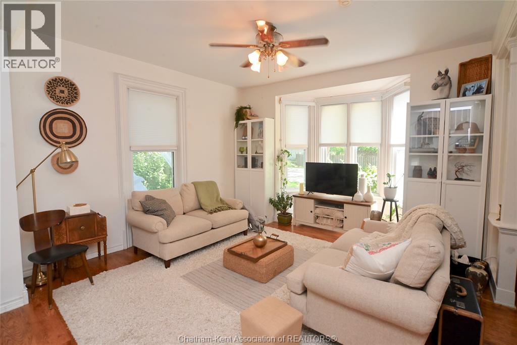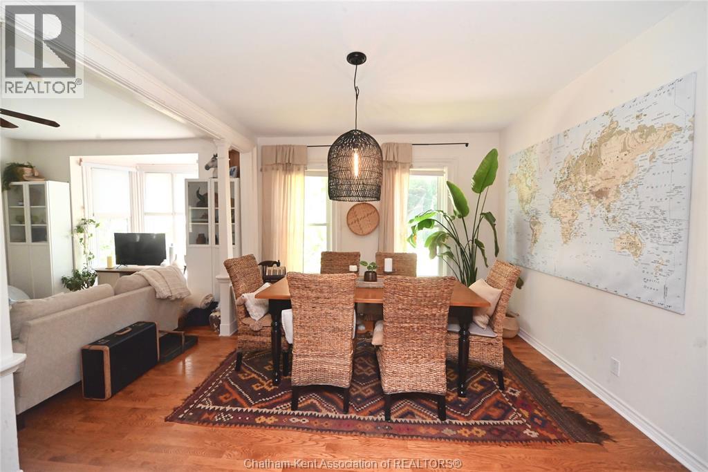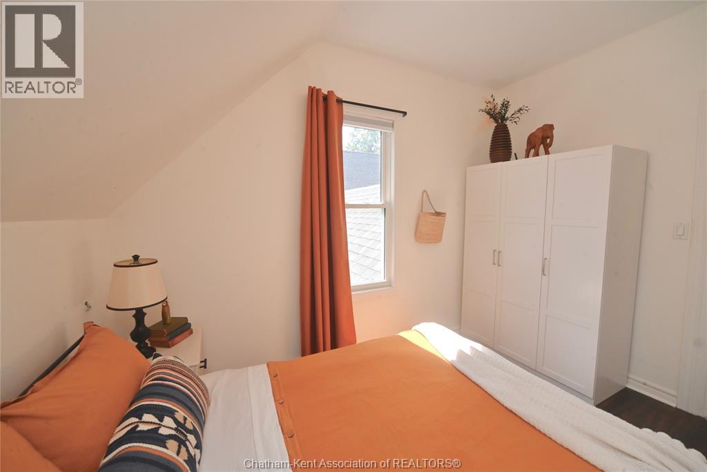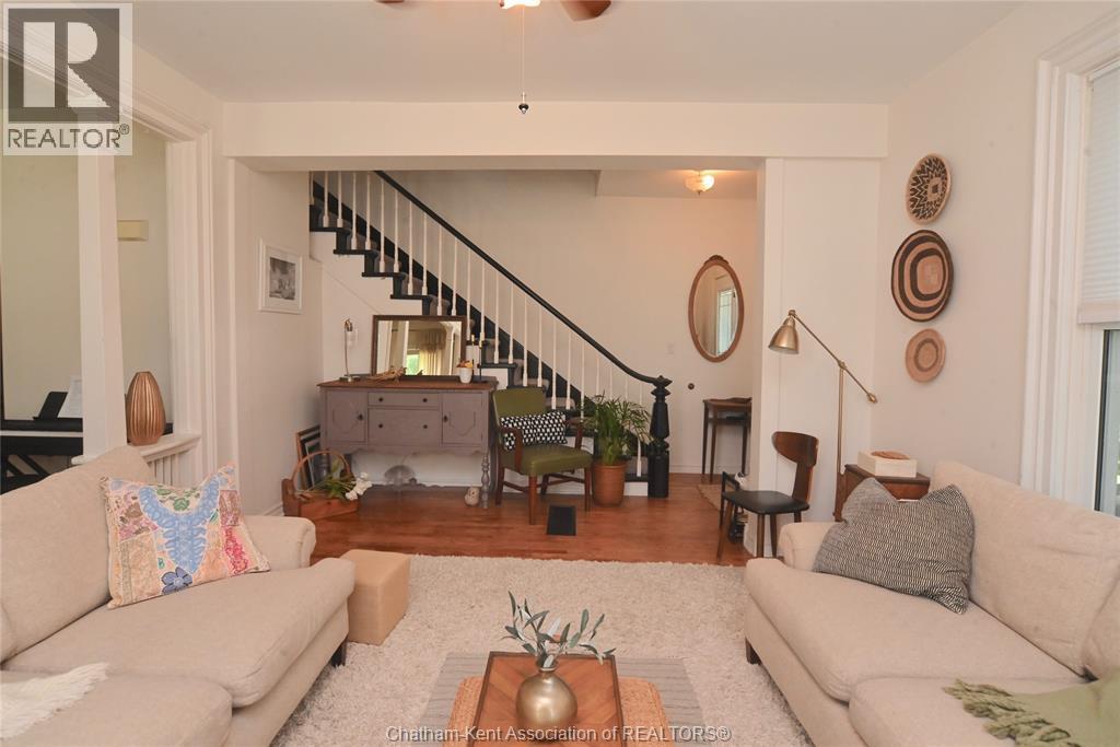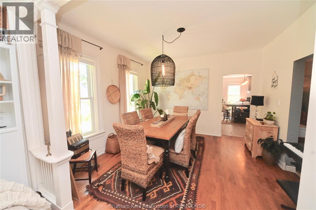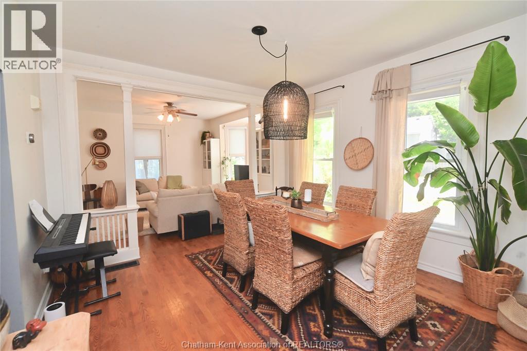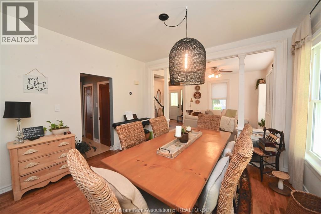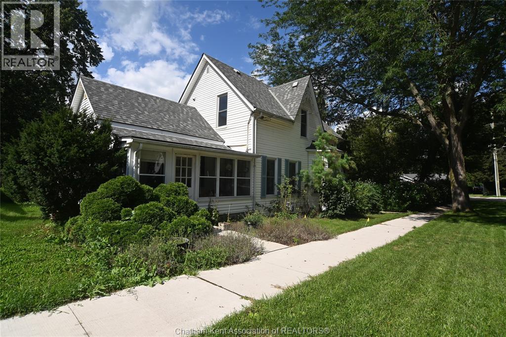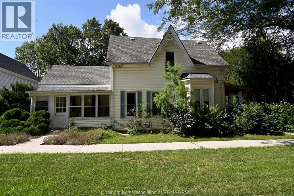 This 3 bedroom Victorian beauty embodies all of Ridgetown's classic small town charm and character. From the gingerbread gable trim outside and breezy private front porch shaded and hidden from street view by mature trees and gorgeous rose of sharon hedges, to the original interior wood trim and hardwood floors with window aprons, original bannisters and the decorative arch between living and dining rooms. High ceilings and large windows create an airy interior with light neutrals. The kitchen and both full bathrooms are delightfully done. Upstairs are two bedrooms (one being a very large primary) and a bathroom with tub/shower and on the main floor is another bedroom with cheater entry to the full main floor bathroom. What's unique here is that the main floor is set up for a separate unit (currently used as an Air BnB) with the aforementioned bedroom, bathroom and a kitchenette/den able to be self-contained with rear entrance access, great for mature family shared living or extra income. If not, the layout still works when used as a whole home. There's also an ideal sitting spot in the enclosed porch off the kitchen, an office nook, and the sweetest little loft to hide away in, above the main floor laundry room. Fenced area for dogs, kids, or separate outside Air BnB space and a detached single car garage. If you're searching for the simple life in surroundings that couldn't be more quaint, this is it! (id:4555)