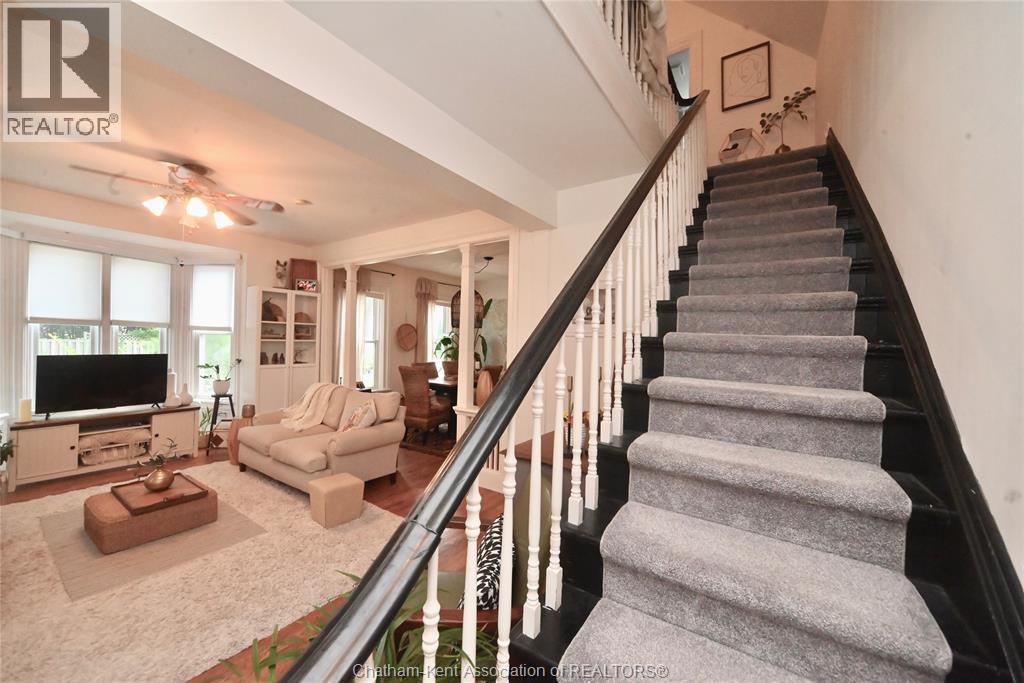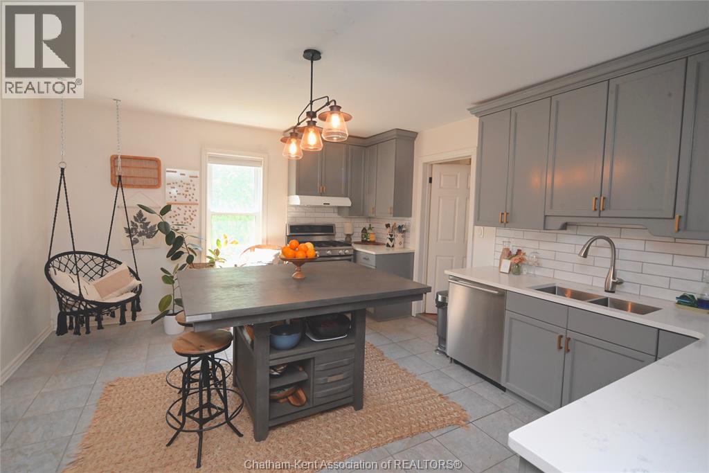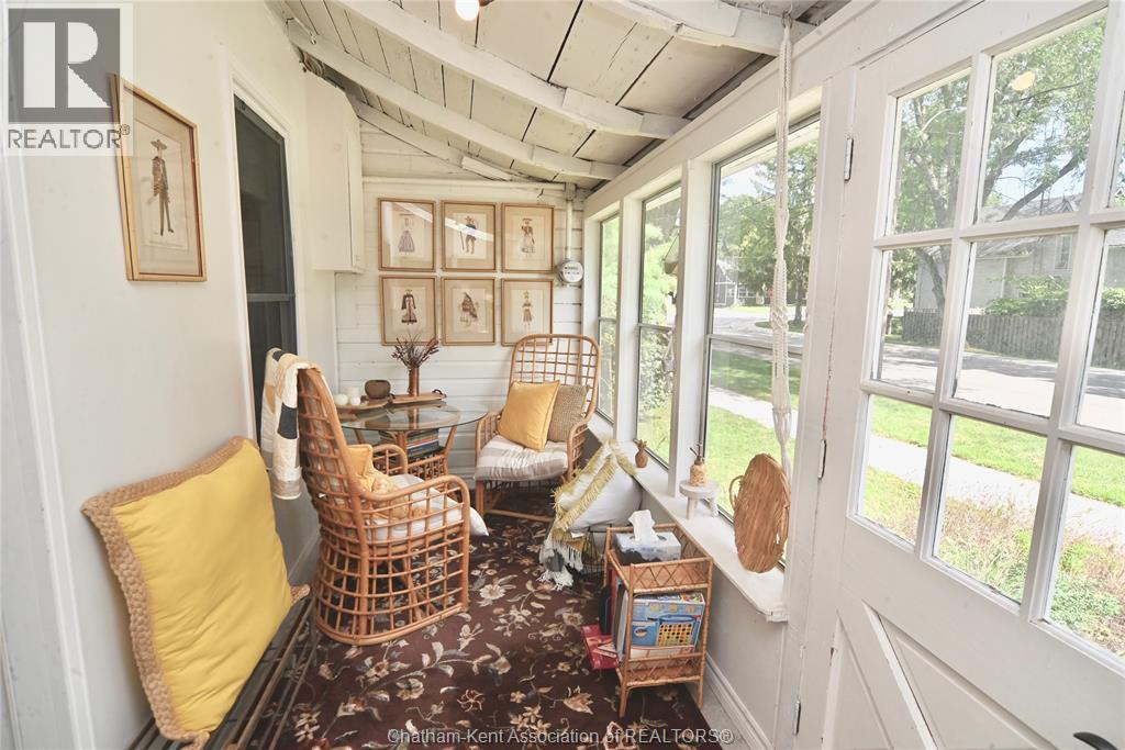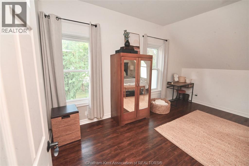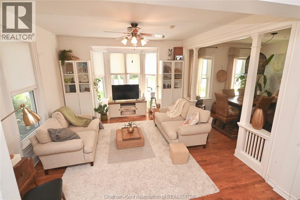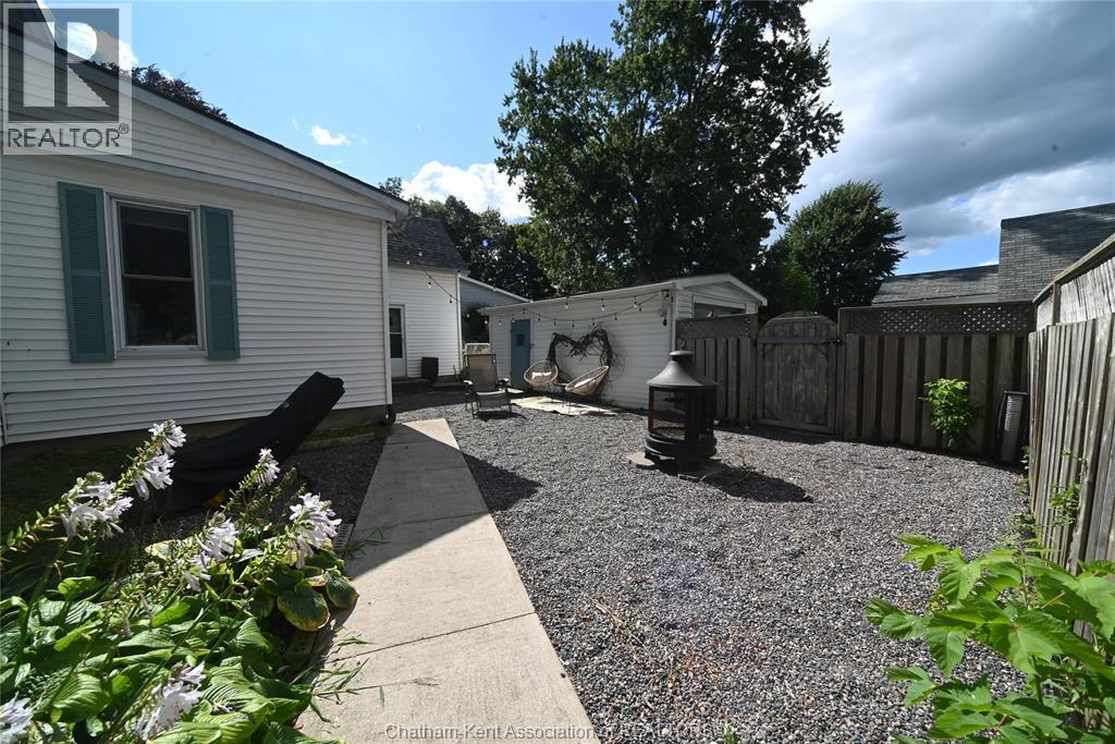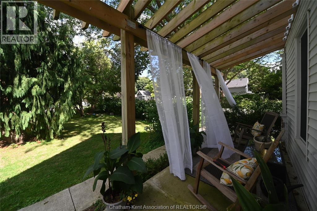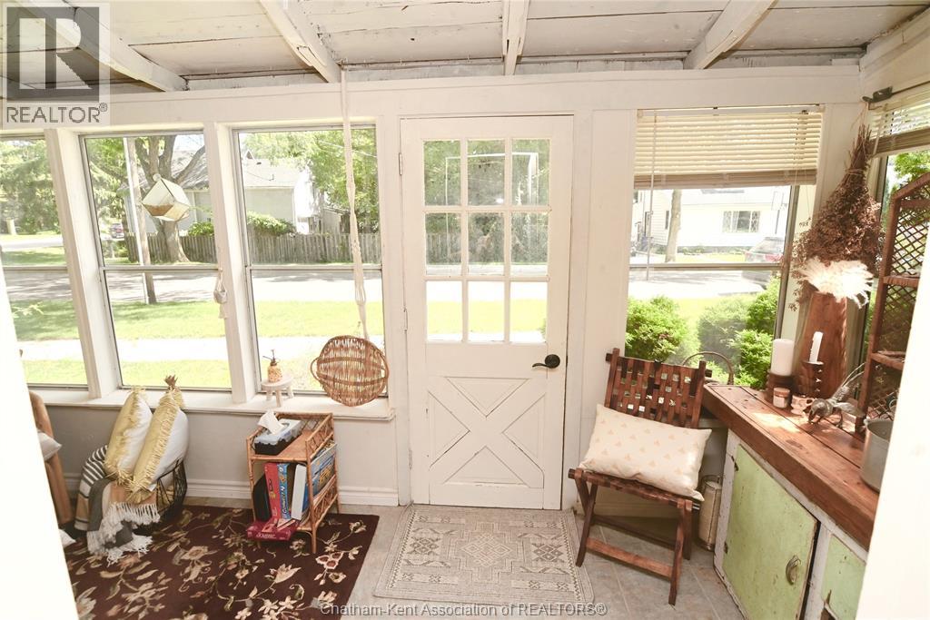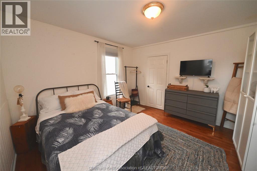 This 3 bedroom Victorian beauty embodies all of Ridgetown's classic small town charm and character. From the gingerbread gable trim outside and breezy private front porch shaded and hidden from street view by mature trees and gorgeous rose of sharon hedges, to the original interior wood trim and hardwood floors with window aprons, original bannisters and the decorative arch between living and dining rooms. High ceilings and large windows create an airy interior with light neutrals. The kitchen and both full bathrooms are delightfully done. Upstairs are two bedrooms (one being a very large primary) and a bathroom with tub/shower and on the main floor is another bedroom with cheater entry to the full main floor bathroom. What's unique here is that the main floor is set up for a separate unit (currently used as an Air BnB) with the aforementioned bedroom, bathroom and a kitchenette/den able to be self-contained with rear entrance access, great for mature family shared living or extra income. If not, the layout still works when used as a whole home. There's also an ideal sitting spot in the enclosed porch off the kitchen, an office nook, and the sweetest little loft to hide away in, above the main floor laundry room. Fenced area for dogs, kids, or separate outside Air BnB space and a detached single car garage. If you're searching for the simple life in surroundings that couldn't be more quaint, this is it! (id:4555)