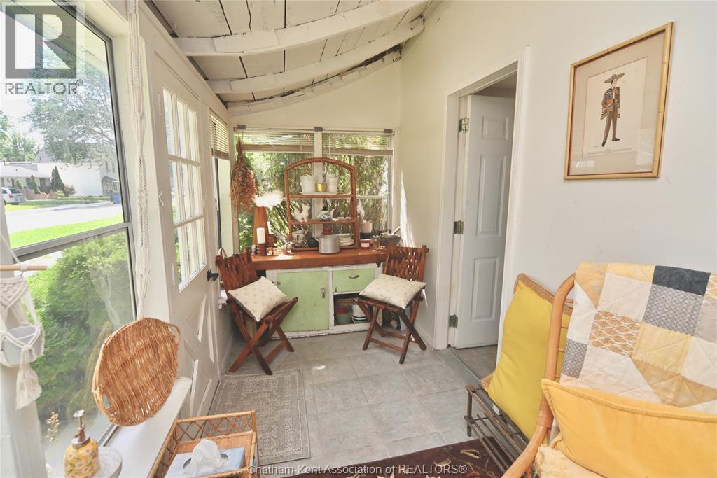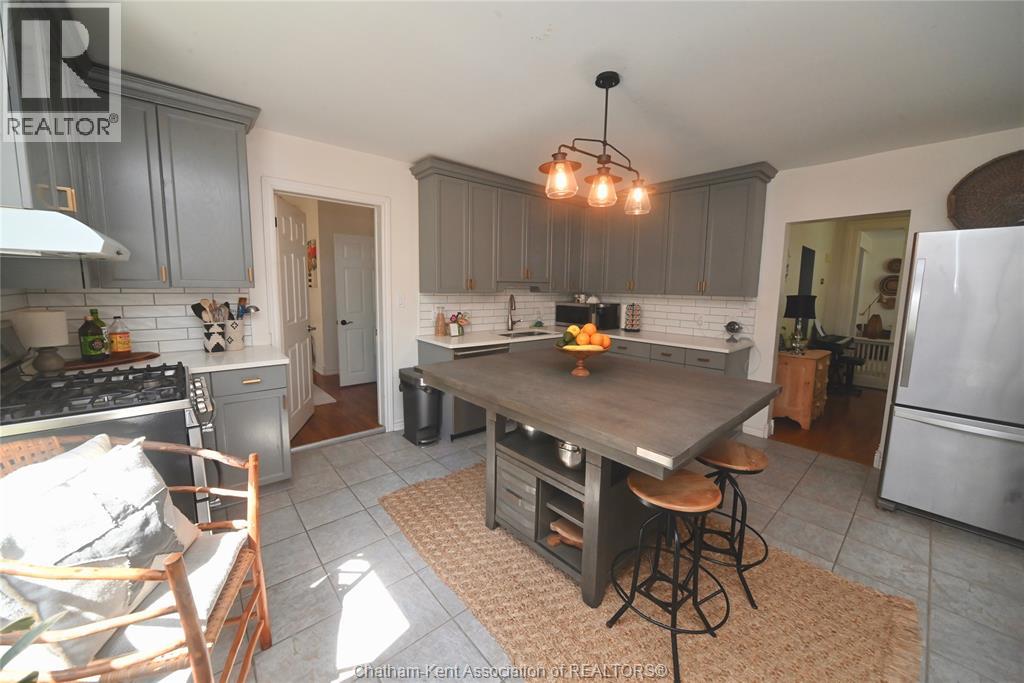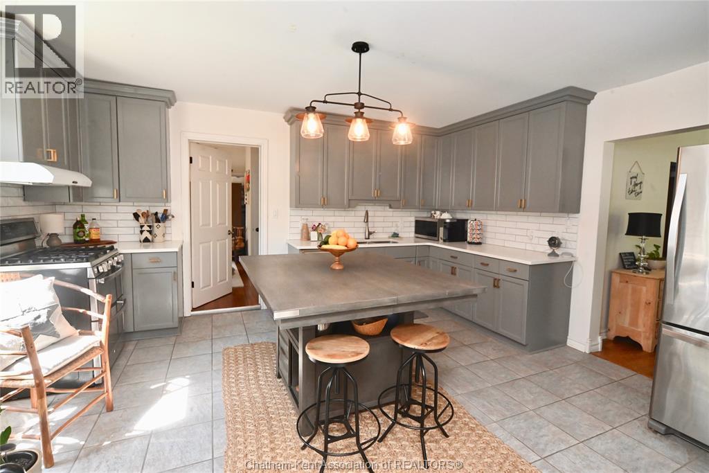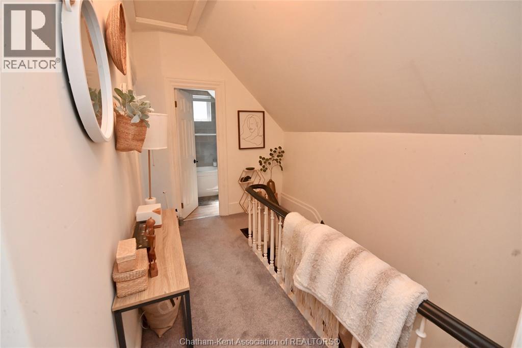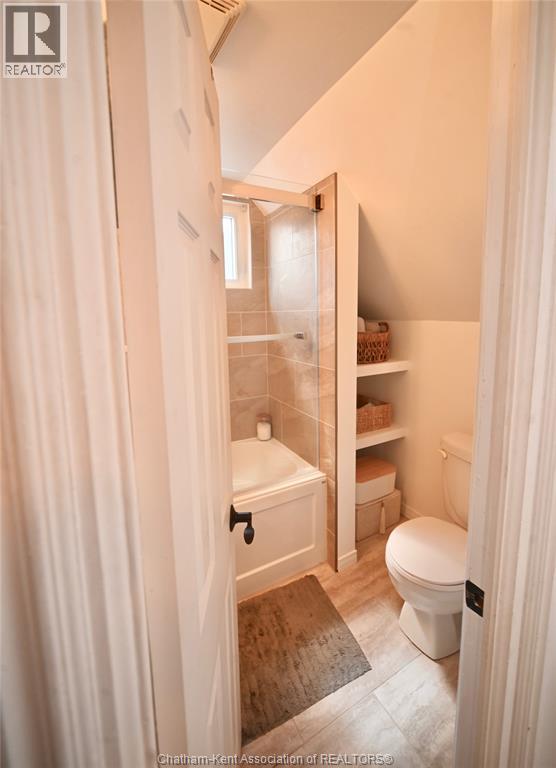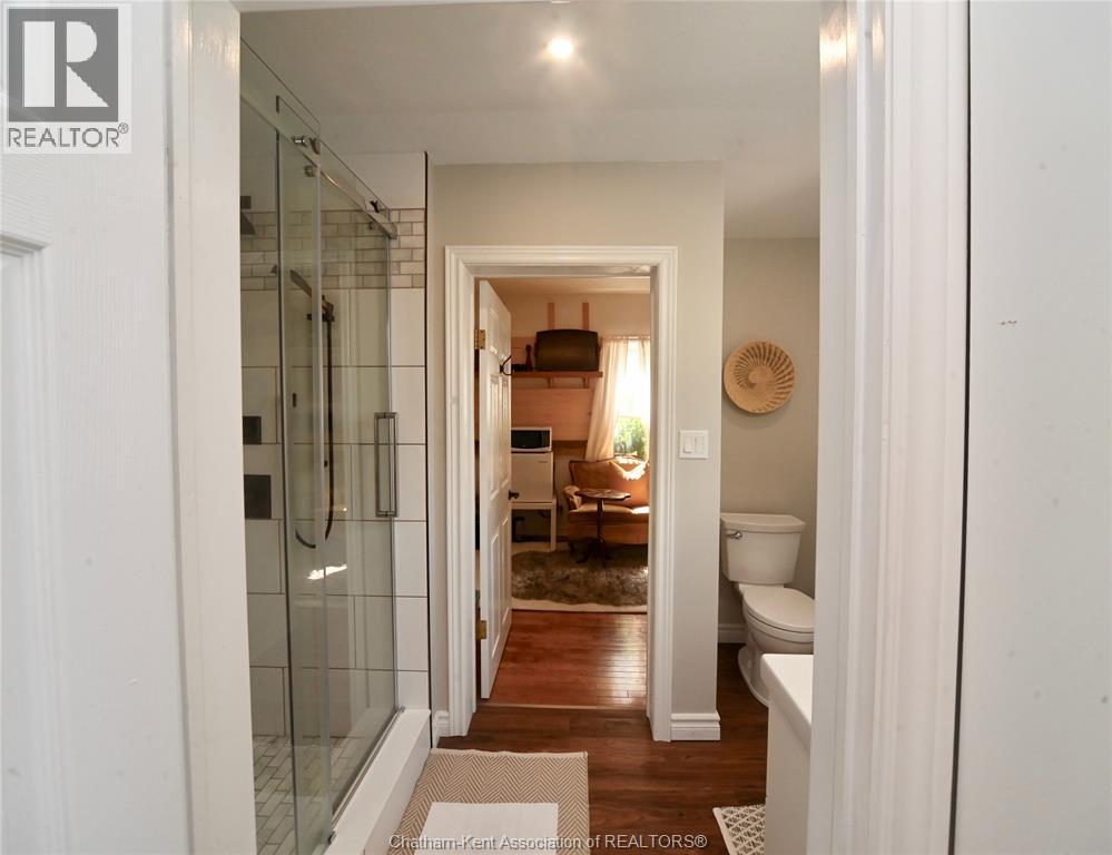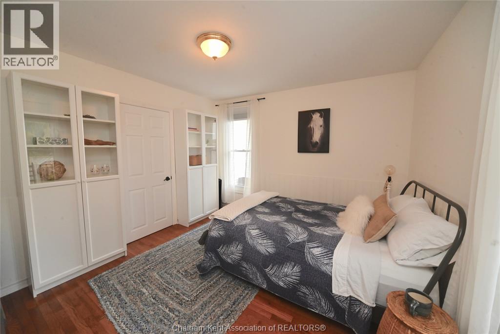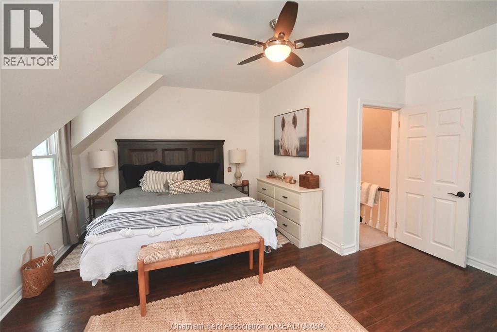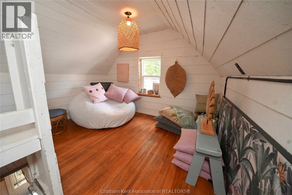 This 3 bedroom Victorian beauty embodies all of Ridgetown's classic small town charm and character. From the gingerbread gable trim outside and breezy private front porch shaded and hidden from street view by mature trees and gorgeous rose of sharon hedges, to the original interior wood trim and hardwood floors with window aprons, original bannisters and the decorative arch between living and dining rooms. High ceilings and large windows create an airy interior with light neutrals. The kitchen and both full bathrooms are delightfully done. Upstairs are two bedrooms (one being a very large primary) and a bathroom with tub/shower and on the main floor is another bedroom with cheater entry to the full main floor bathroom. What's unique here is that the main floor is set up for a separate unit (currently used as an Air BnB) with the aforementioned bedroom, bathroom and a kitchenette/den able to be self-contained with rear entrance access, great for mature family shared living or extra income. If not, the layout still works when used as a whole home. There's also an ideal sitting spot in the enclosed porch off the kitchen, an office nook, and the sweetest little loft to hide away in, above the main floor laundry room. Fenced area for dogs, kids, or separate outside Air BnB space and a detached single car garage. If you're searching for the simple life in surroundings that couldn't be more quaint, this is it! (id:4555)