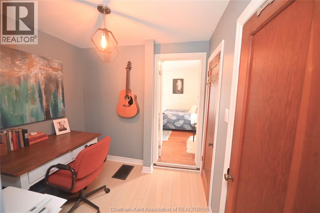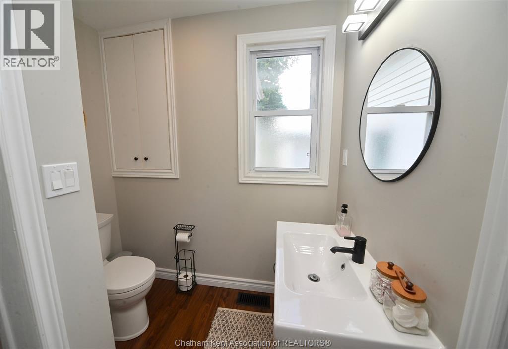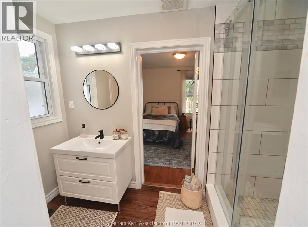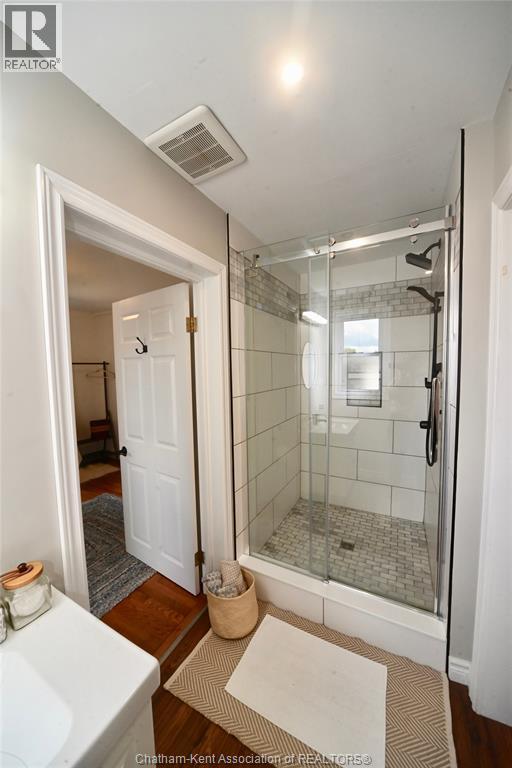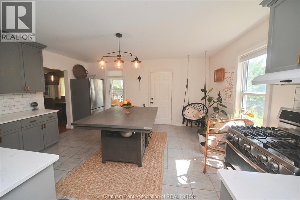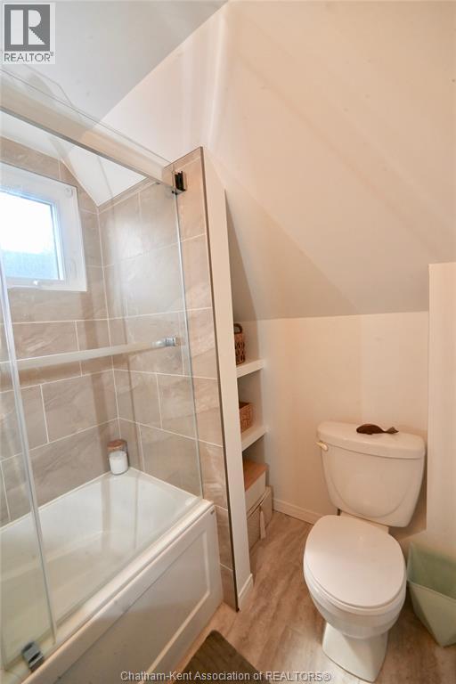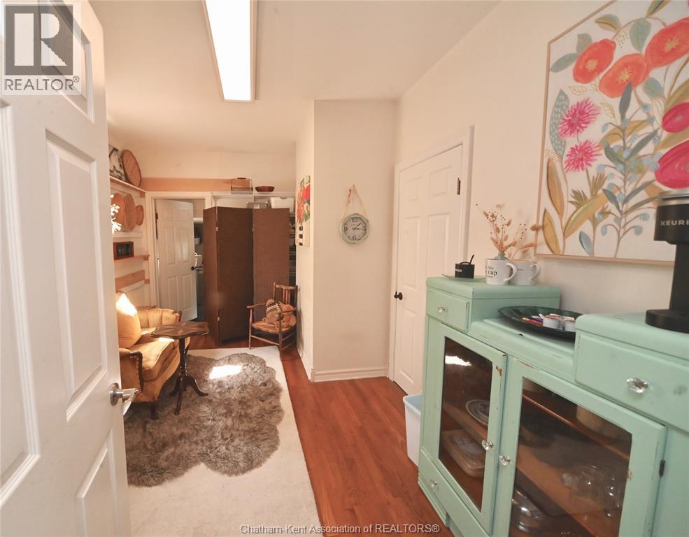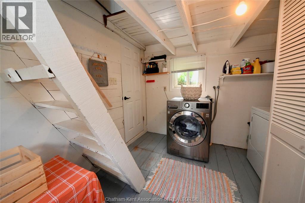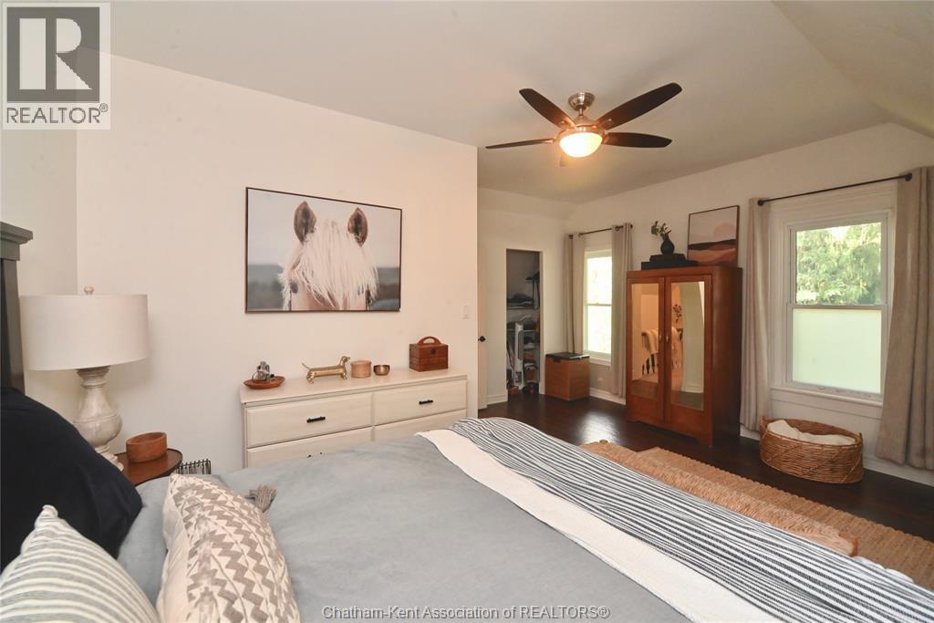 This 3 bedroom Victorian beauty embodies all of Ridgetown's classic small town charm and character. From the gingerbread gable trim outside and breezy private front porch shaded and hidden from street view by mature trees and gorgeous rose of sharon hedges, to the original interior wood trim and hardwood floors with window aprons, original bannisters and the decorative arch between living and dining rooms. High ceilings and large windows create an airy interior with light neutrals. The kitchen and both full bathrooms are delightfully done. Upstairs are two bedrooms (one being a very large primary) and a bathroom with tub/shower and on the main floor is another bedroom with cheater entry to the full main floor bathroom. What's unique here is that the main floor is set up for a separate unit (currently used as an Air BnB) with the aforementioned bedroom, bathroom and a kitchenette/den able to be self-contained with rear entrance access, great for mature family shared living or extra income. If not, the layout still works when used as a whole home. There's also an ideal sitting spot in the enclosed porch off the kitchen, an office nook, and the sweetest little loft to hide away in, above the main floor laundry room. Fenced area for dogs, kids, or separate outside Air BnB space and a detached single car garage. If you're searching for the simple life in surroundings that couldn't be more quaint, this is it! (id:4555)