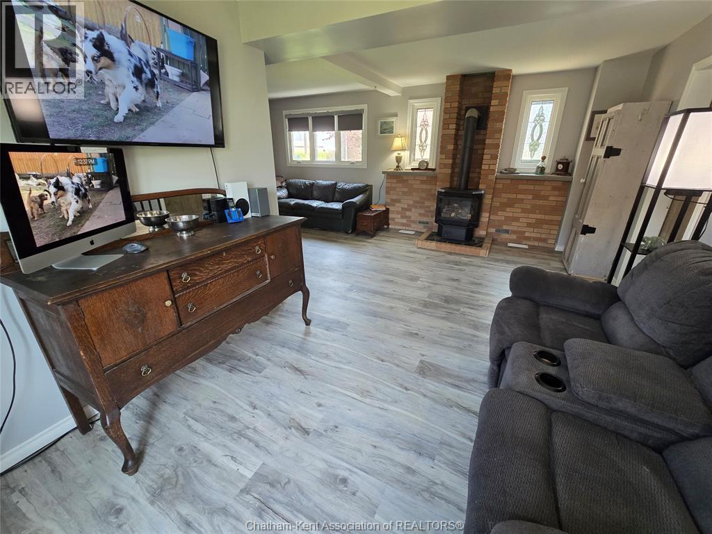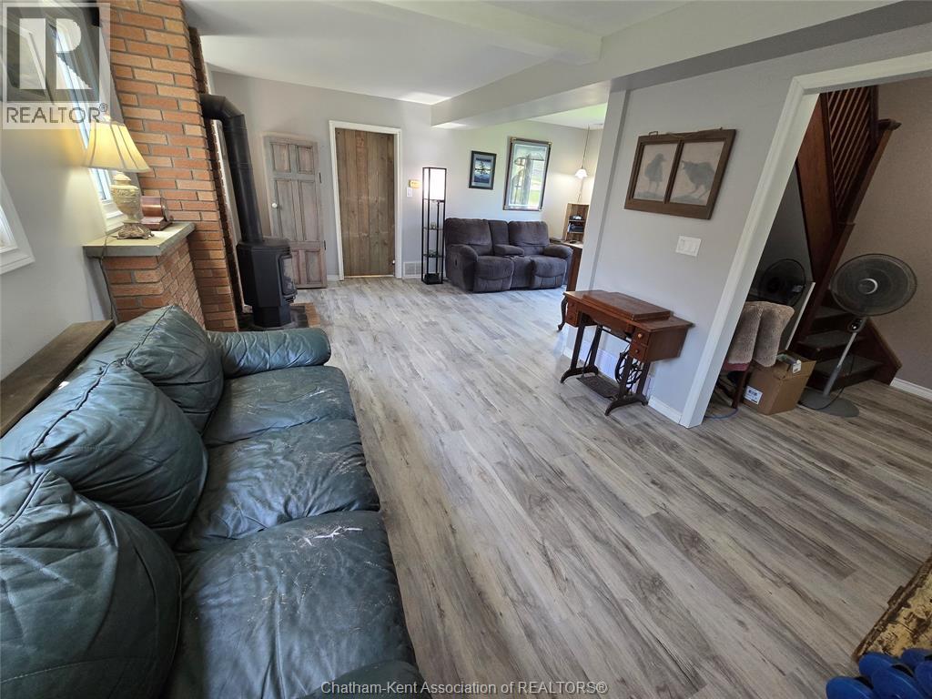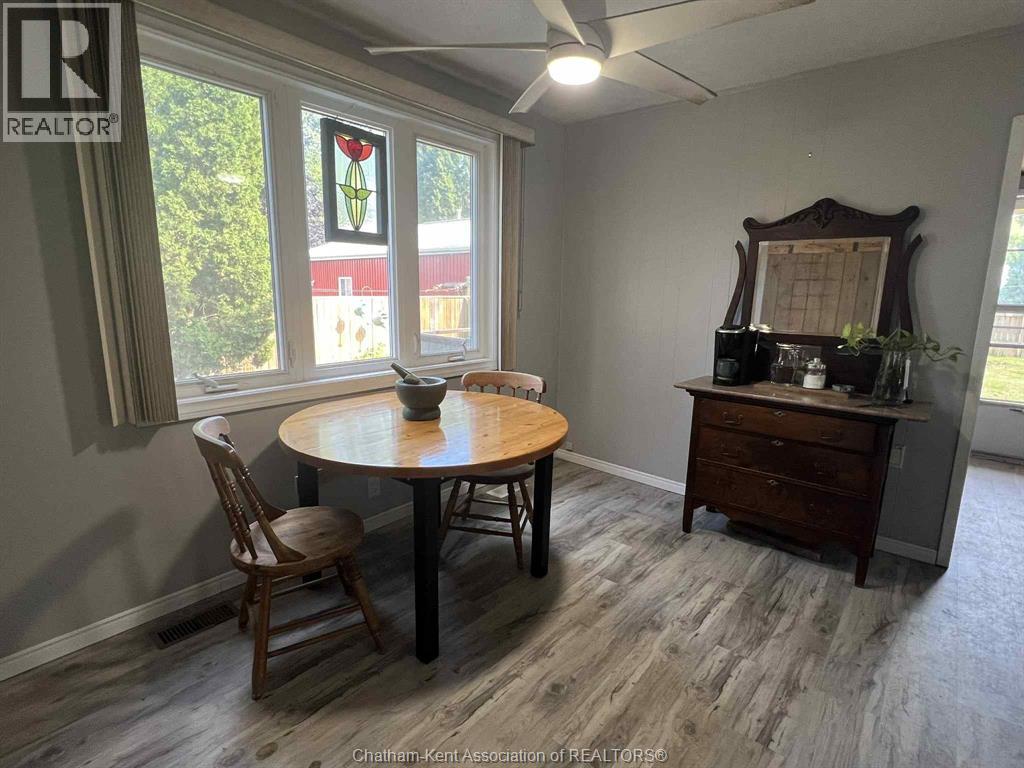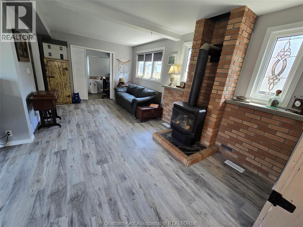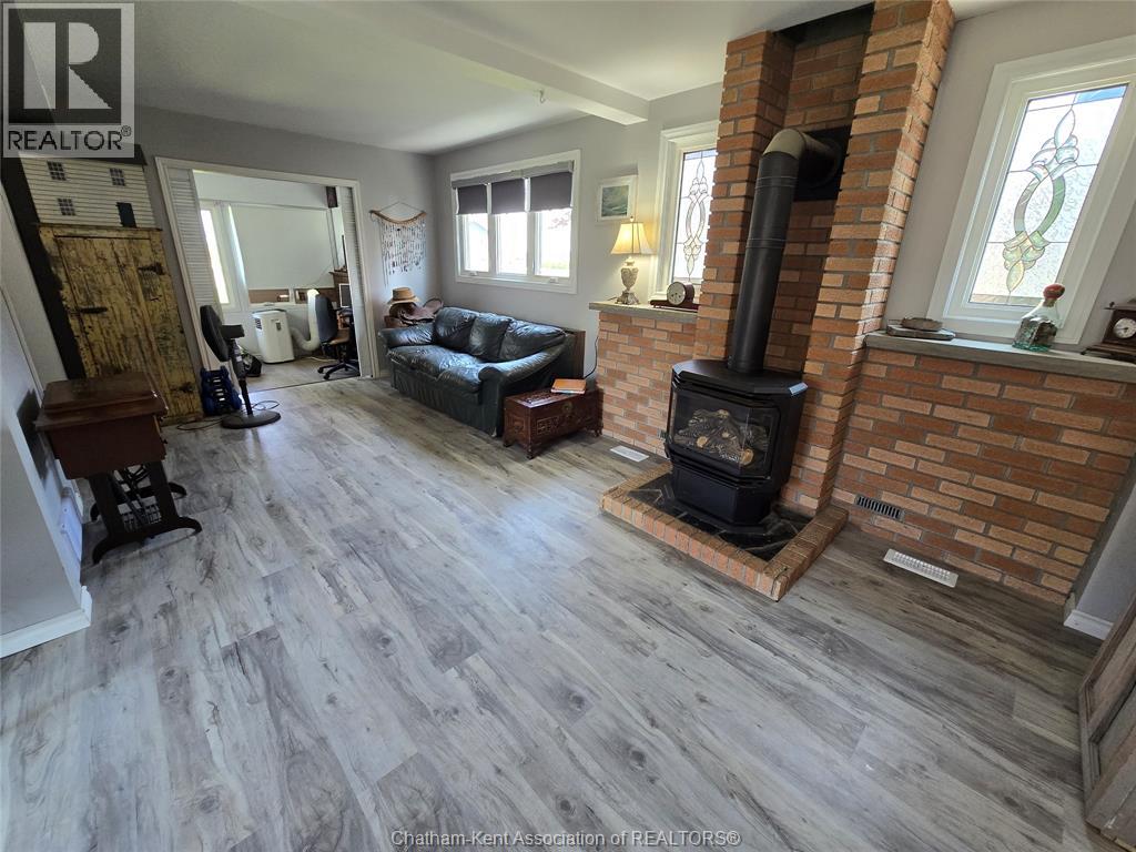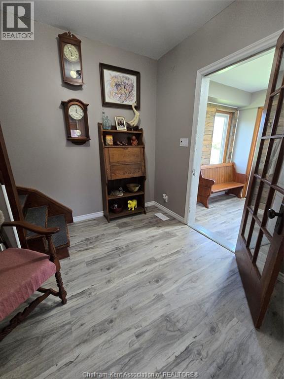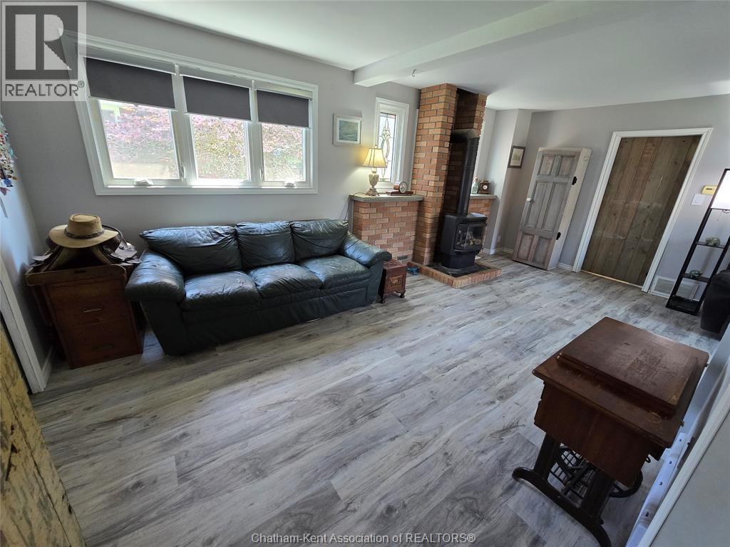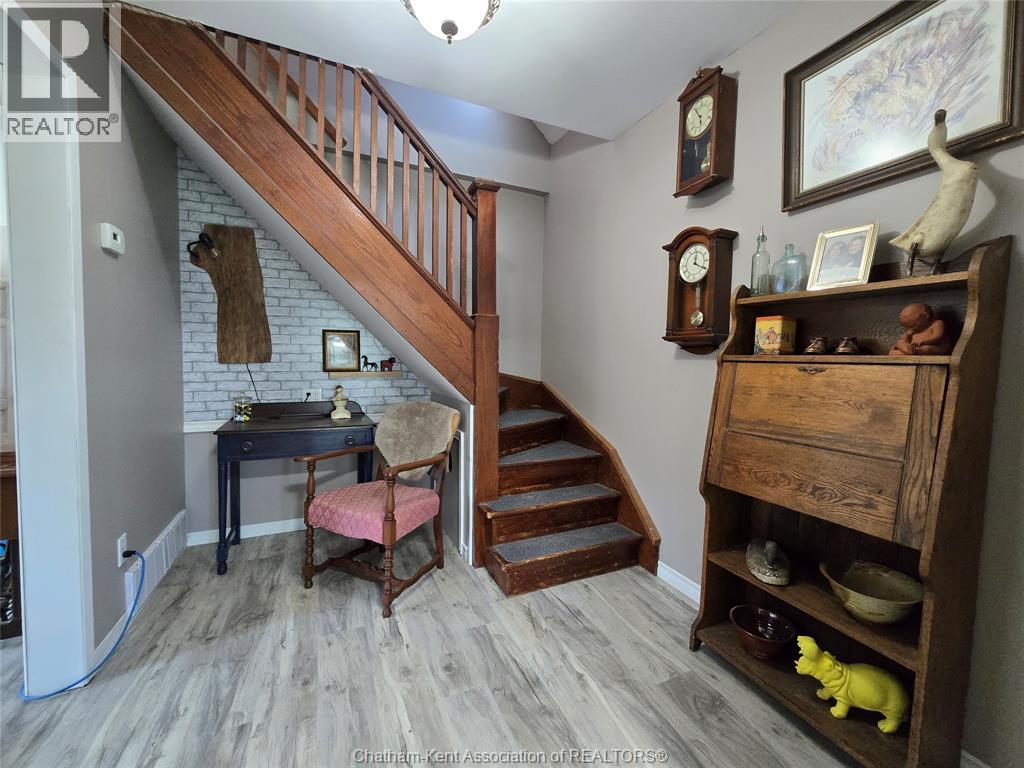 Minutes to Wallaceburg, just a half hour to Sarnia & Chatham! Welcome to this solid 1.5-storey home featuring 3 bedrooms, 1.5 baths, and a detached double-car garage, all in a great neighbourhood. The main floor offers a spacious kitchen with eating area, pantry, and convenient laundry tucked away. The large family/living room features a cozy gas fireplace, and an additional room with pocket doors provides the perfect space for a home office—currently used as a main floor bedroom. Off the back entrance you’ll find the furnace area and a handy 2-piece bath. Freshly updated front foyer opens to a quiet sitting area with stairs leading to the second floor. New vinyl flooring (2025) runs throughout most of the main level (except the main floor bedroom). Upstairs you’ll find three bedrooms, a 4-piece bath, and an open storage/closet space. Rounding out this package is a fantastic detached, insulated, and heated (wood) double-car garage (24 X 19.2)—perfect as a hobby or workshop space. Home also features two hot water heaters: the main floor unit (owned) and a second unit (rented 2023) dedicated to the 4-piece bathroom upstairs. Natural gas hook up for BBQ on garage. VPP required! (id:4555)
