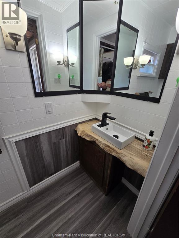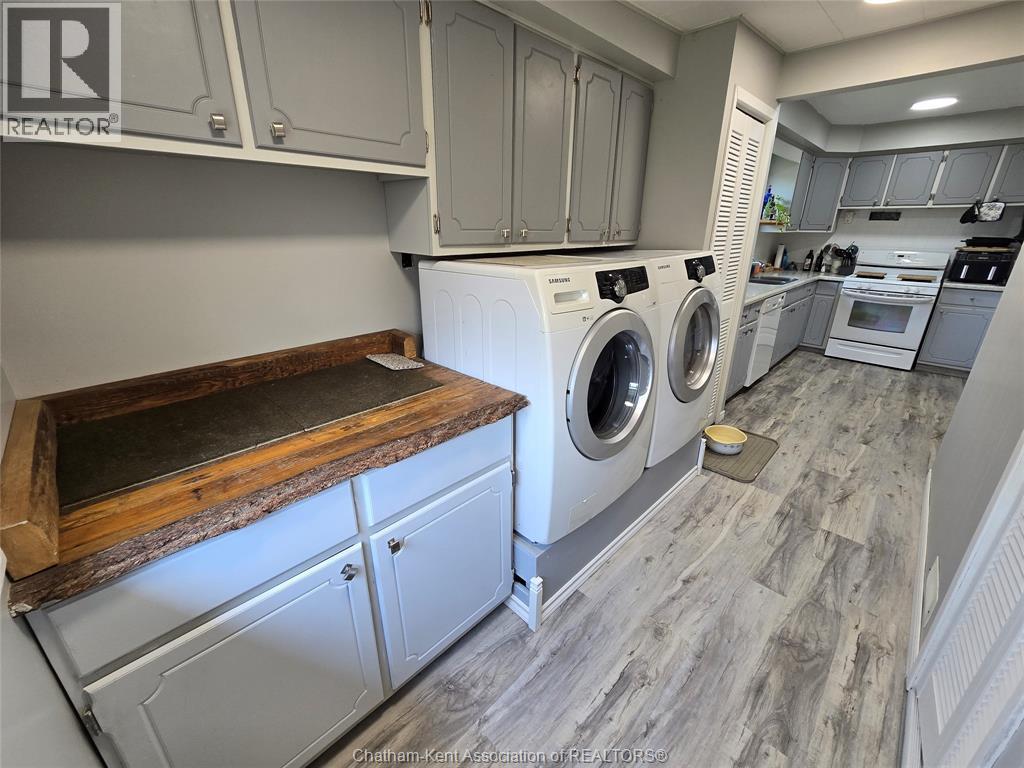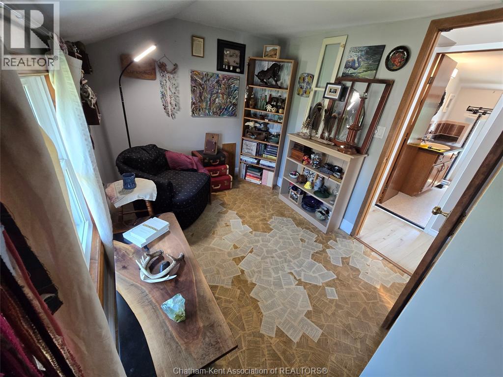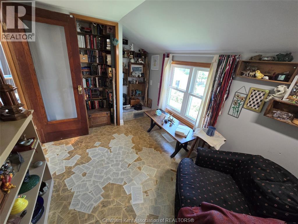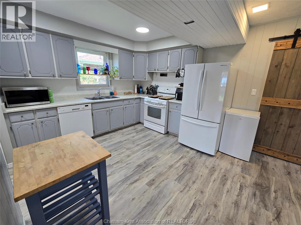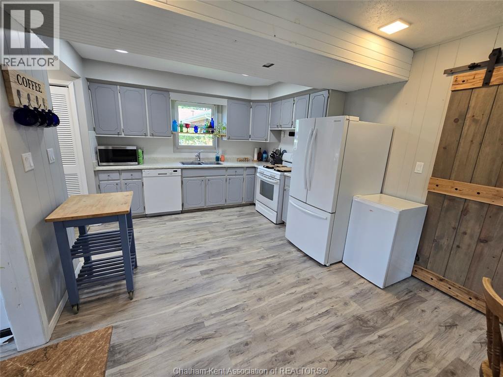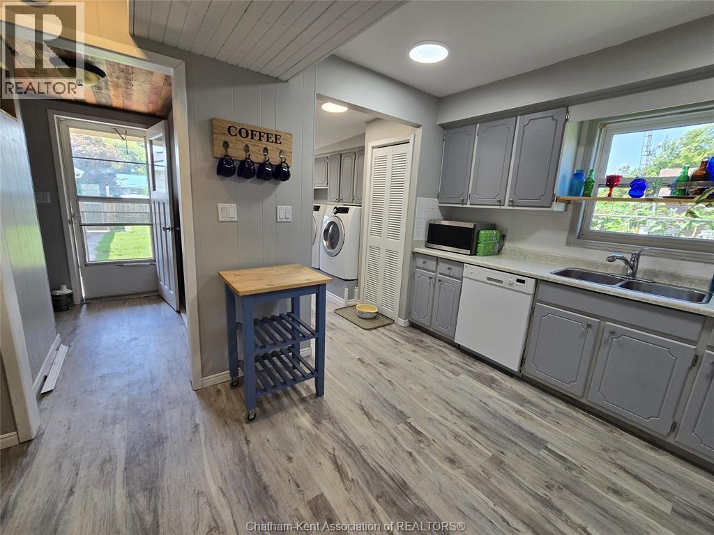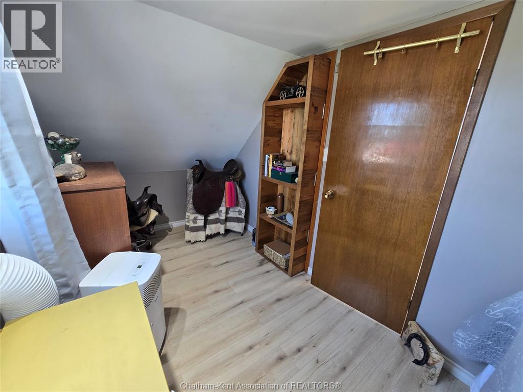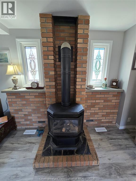 Minutes to Wallaceburg, just a half hour to Sarnia & Chatham! Welcome to this solid 1.5-storey home featuring 3 bedrooms, 1.5 baths, and a detached double-car garage, all in a great neighbourhood. The main floor offers a spacious kitchen with eating area, pantry, and convenient laundry tucked away. The large family/living room features a cozy gas fireplace, and an additional room with pocket doors provides the perfect space for a home office—currently used as a main floor bedroom. Off the back entrance you’ll find the furnace area and a handy 2-piece bath. Freshly updated front foyer opens to a quiet sitting area with stairs leading to the second floor. New vinyl flooring (2025) runs throughout most of the main level (except the main floor bedroom). Upstairs you’ll find three bedrooms, a 4-piece bath, and an open storage/closet space. Rounding out this package is a fantastic detached, insulated, and heated (wood) double-car garage (24 X 19.2)—perfect as a hobby or workshop space. Home also features two hot water heaters: the main floor unit (owned) and a second unit (rented 2023) dedicated to the 4-piece bathroom upstairs. Natural gas hook up for BBQ on garage. VPP required! (id:4555)