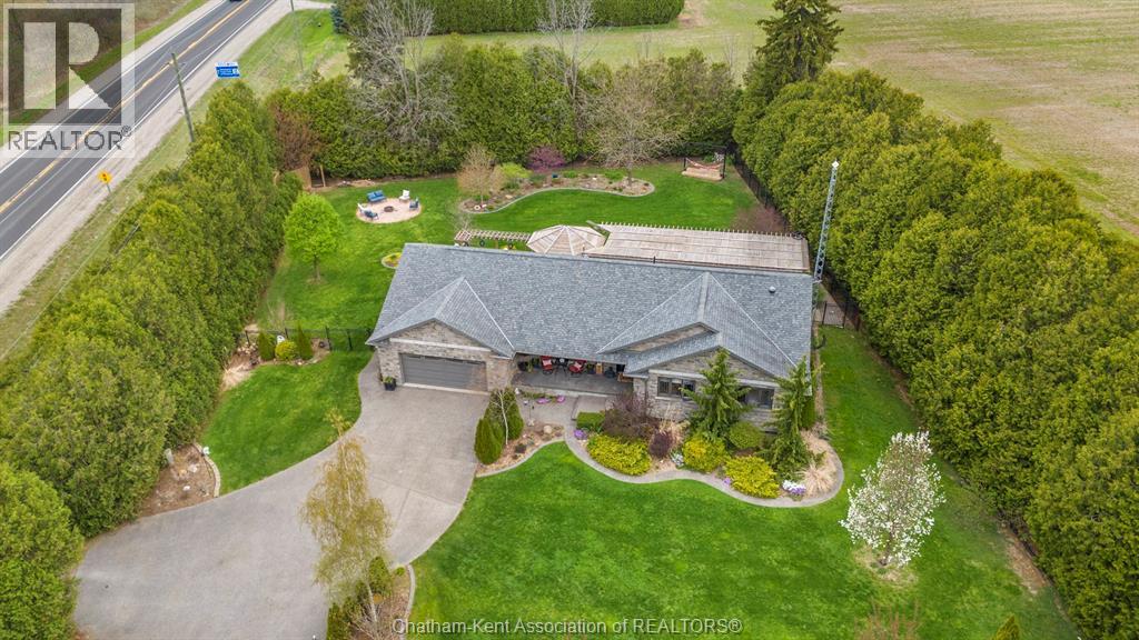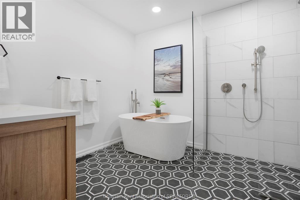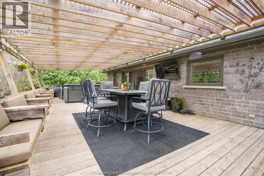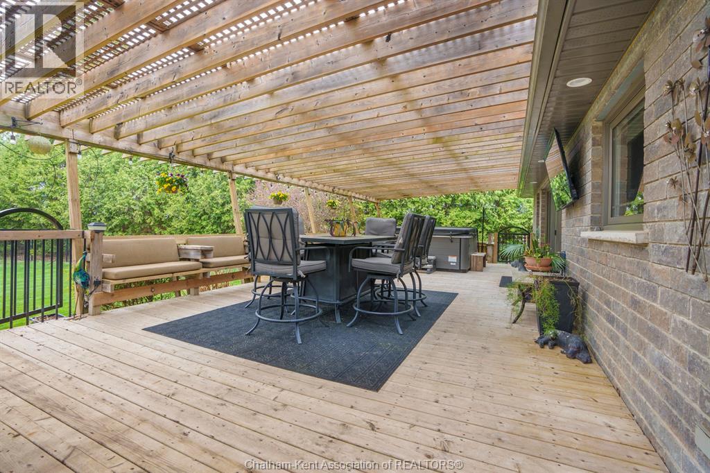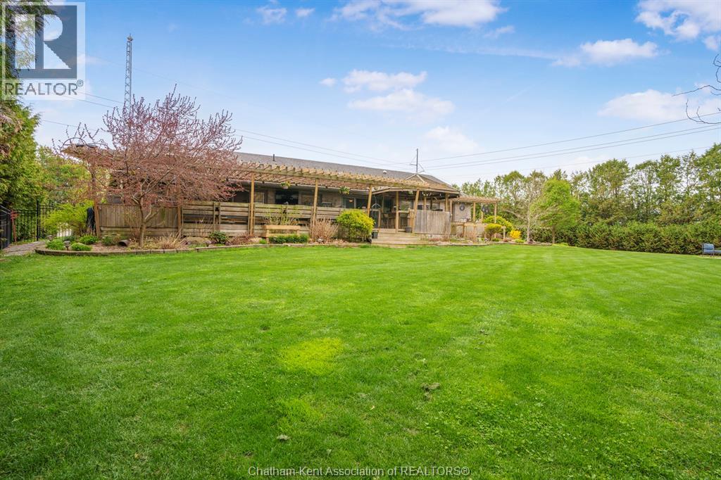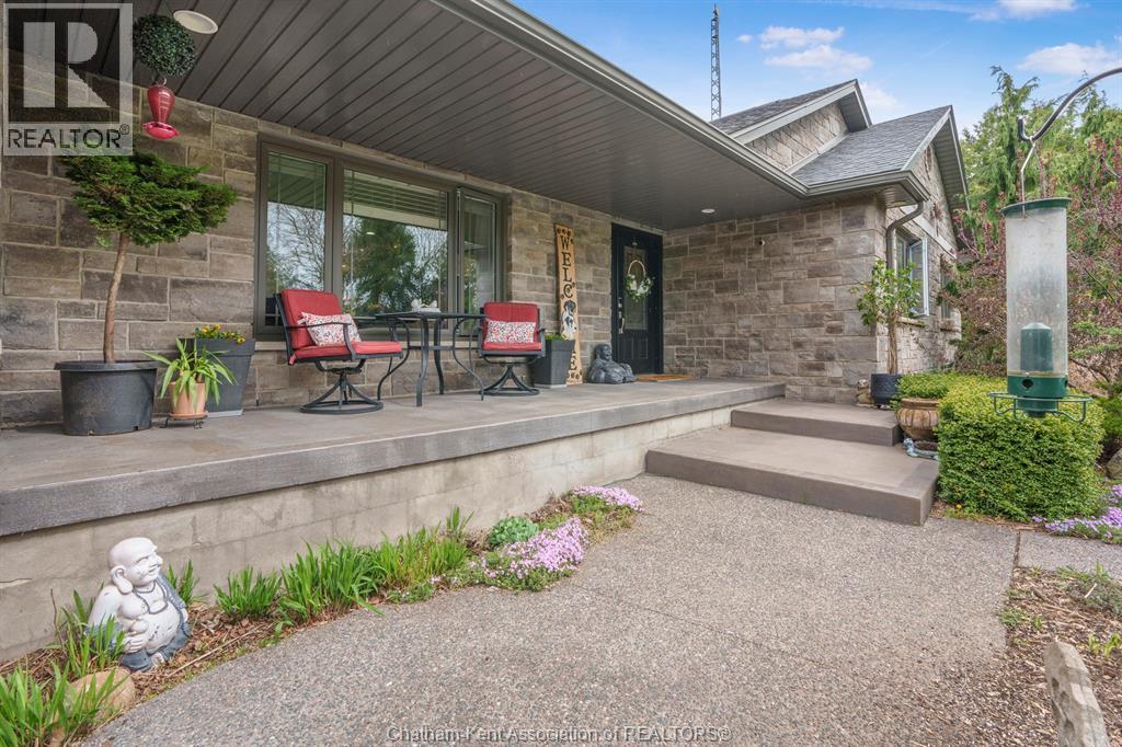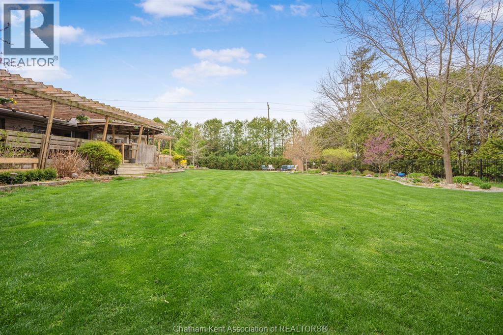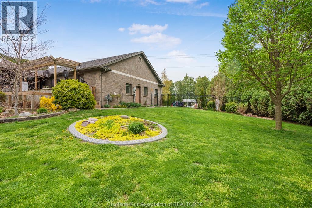 Welcome to your dream country escape! This all-brick rancher sits on just under 1 acre of private, cedar-wrapped land, offering 3 spacious bedrooms and 4 updated bathrooms. One of the main floor bathrooms features a luxurious freestanding soaker tub and heated floors for ultimate comfort. A double-car attached garage adds convenience, while the fully finished massive basement offers endless storage and living space. Relax or entertain on the expansive covered patio, complete with an outdoor kitchen style and gas BBQ setup, perfect for summer evenings. The fully fenced yard and scenic walking path around the home create a peaceful retreat. Surrounded by towering cedars for seclusion, this property combines privacy, modern updates, and country charm all in one beautiful package. Don’t miss this rare opportunity to enjoy the best of rural living with all the comforts of home! This home is located on the Southside of Chatham only seconds from HWY 401. (id:4555)