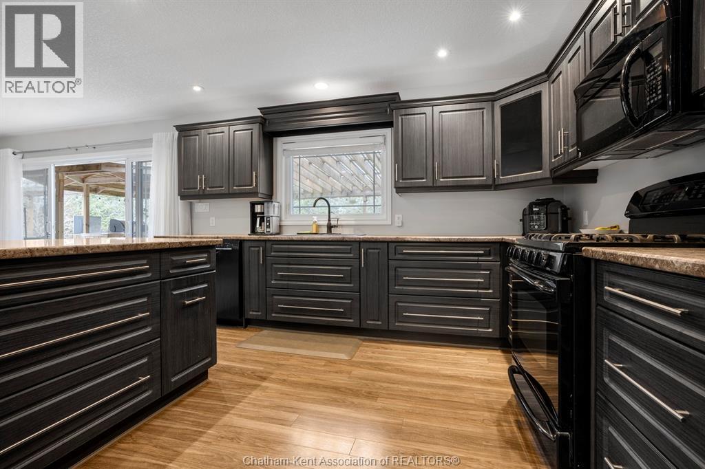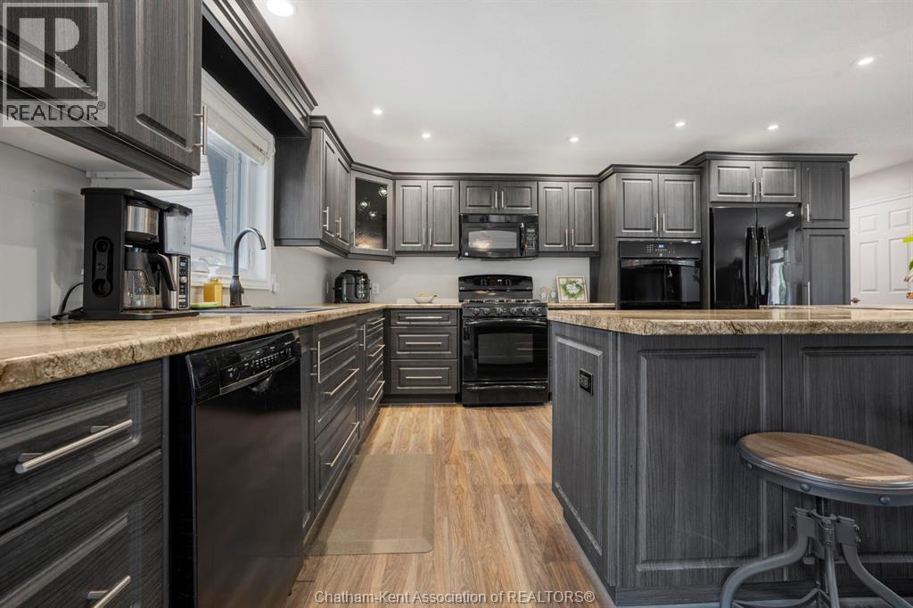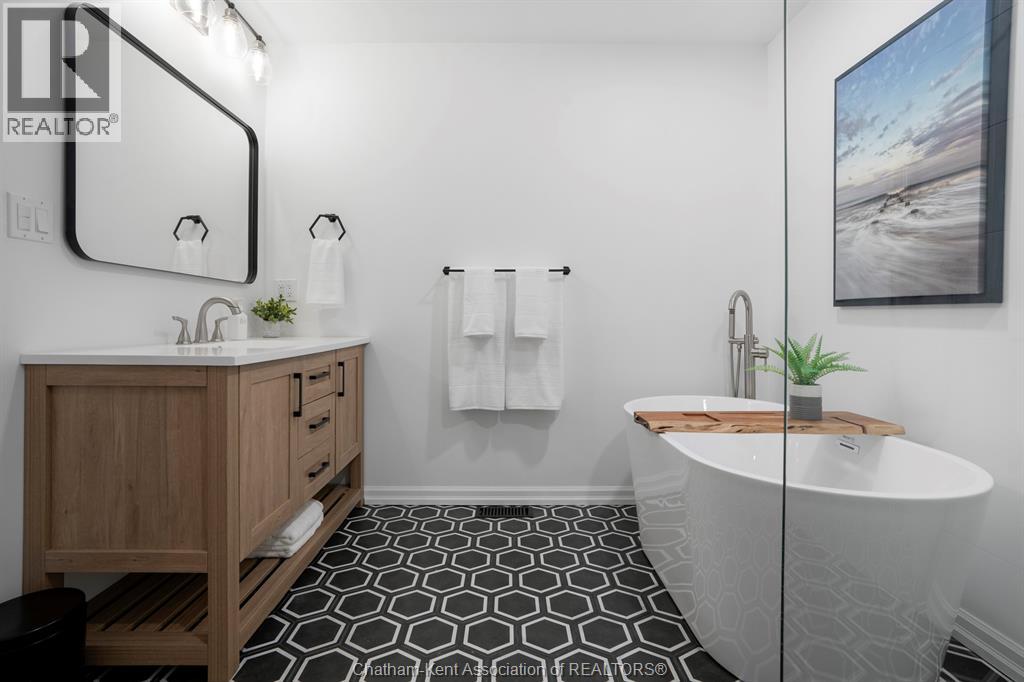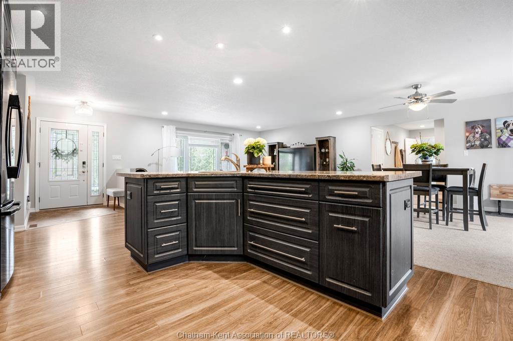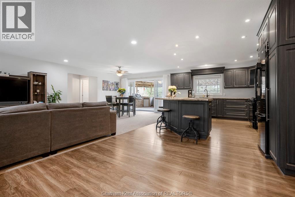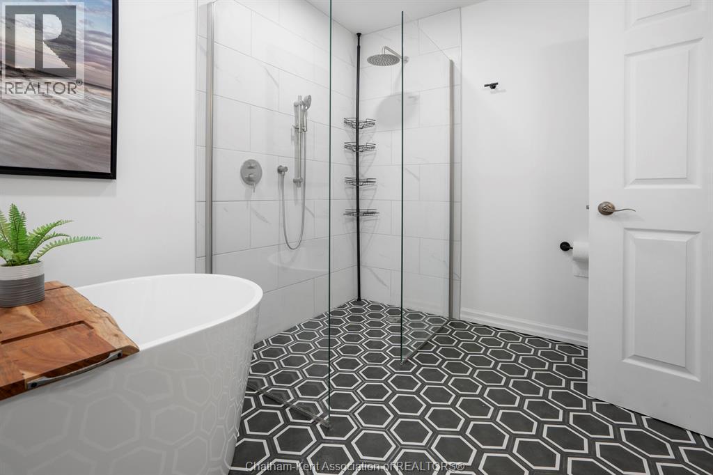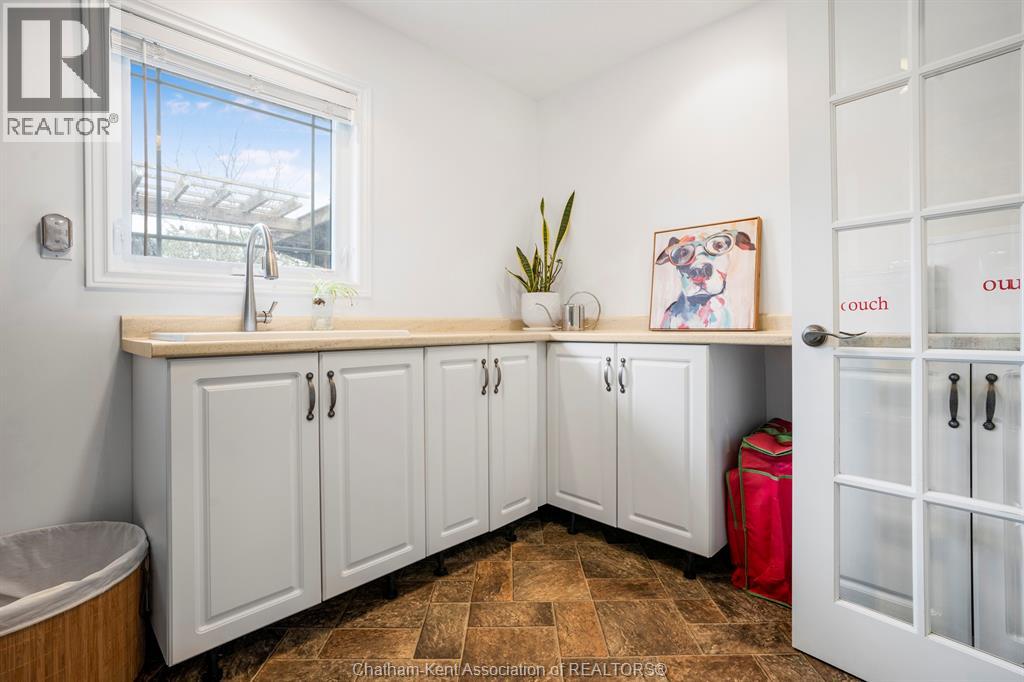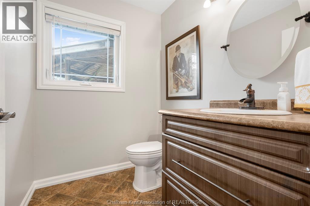 Welcome to your dream country escape! This all-brick rancher sits on just under 1 acre of private, cedar-wrapped land, offering 3 spacious bedrooms and 4 updated bathrooms. One of the main floor bathrooms features a luxurious freestanding soaker tub and heated floors for ultimate comfort. A double-car attached garage adds convenience, while the fully finished massive basement offers endless storage and living space. Relax or entertain on the expansive covered patio, complete with an outdoor kitchen style and gas BBQ setup, perfect for summer evenings. The fully fenced yard and scenic walking path around the home create a peaceful retreat. Surrounded by towering cedars for seclusion, this property combines privacy, modern updates, and country charm all in one beautiful package. Don’t miss this rare opportunity to enjoy the best of rural living with all the comforts of home! This home is located on the Southside of Chatham only seconds from HWY 401. (id:4555)