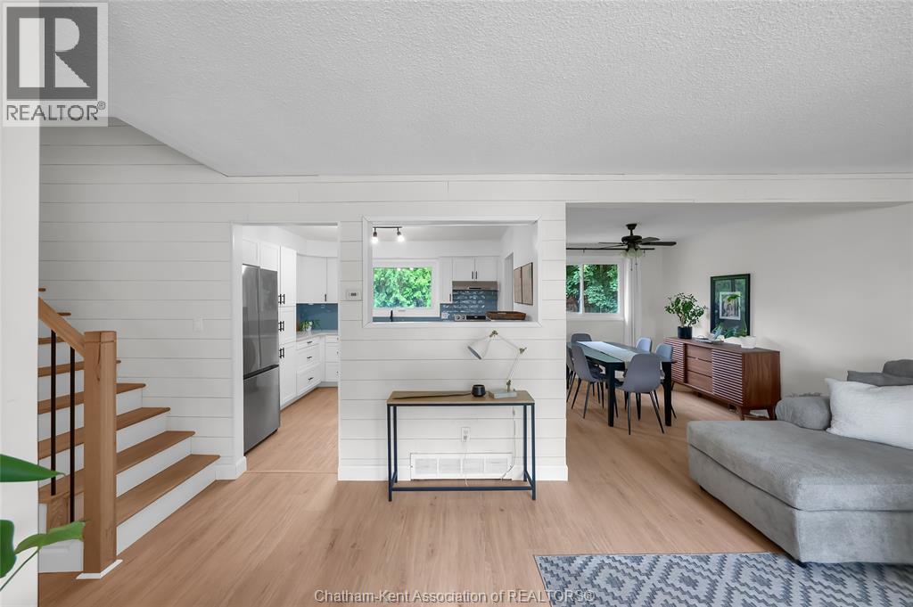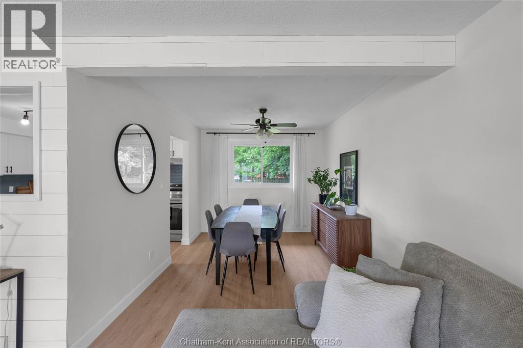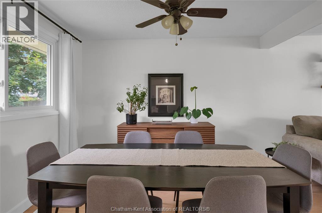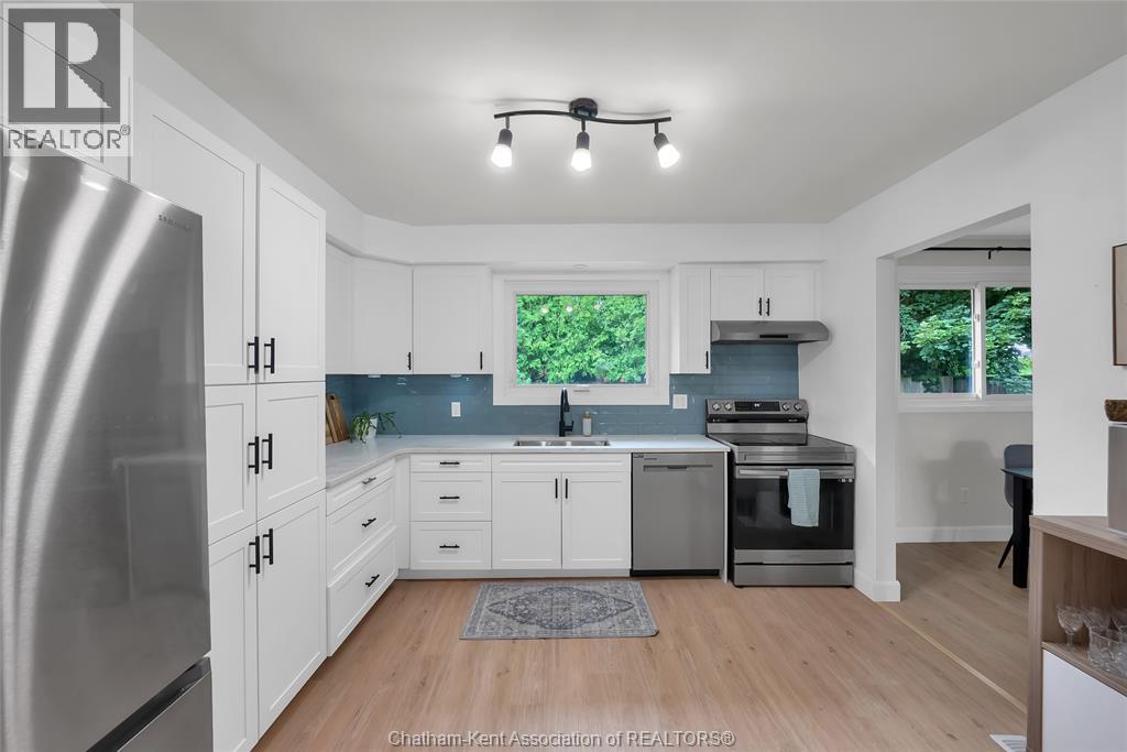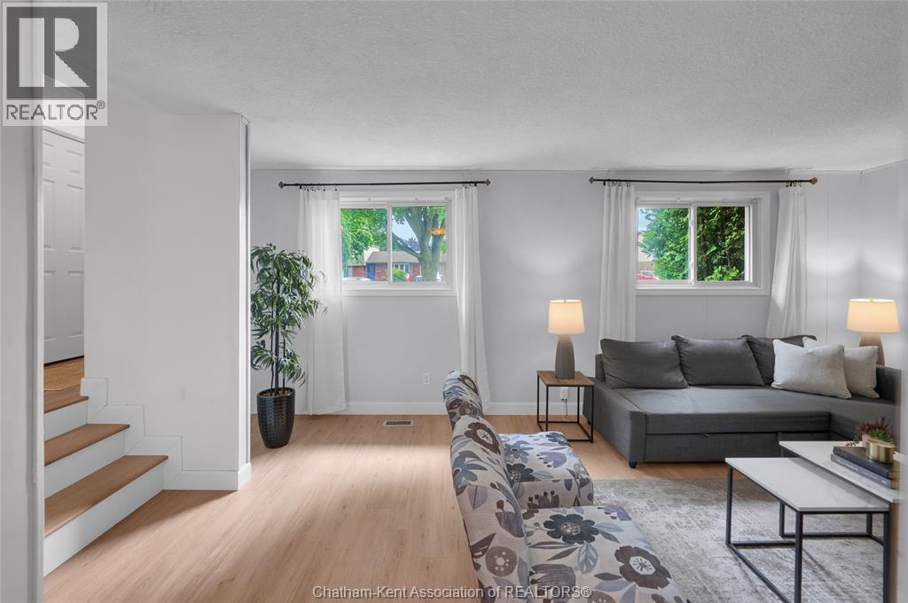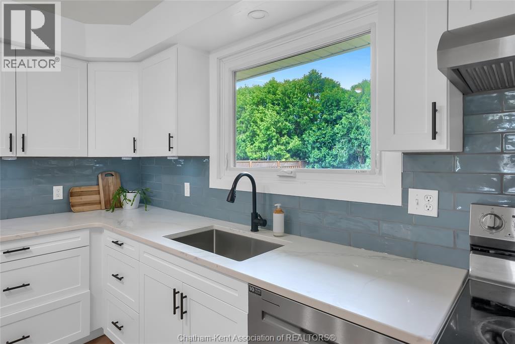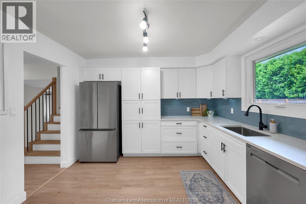 Nothing to do but move in! Welcome to 35 Peterborough - a beautifully updated side split in the heart of North Chatham’s sought-after, family-friendly neighbourhood. From the moment you step inside, you’ll be struck by the home’s fresh, modern vibe. Soaked in natural light, the main floor offers a seamless flow between the living and dining areas and is perfect for everyday living or entertaining guests. The kitchen is the true showstopper here, fully renovated with bright cabinetry, quartz countertops, and sleek, modern finishes that create a clean, stylish space you’ll love spending time in. Upstairs you'll find three generously sized bedrooms, including a spacious primary bedroom, plus a full bathroom. The lower level is the ultimate hangout zone, complete with a large family room that’s ideal for movie nights or watching the big game. Just around the corner you'll find a versatile fourth bedroom that could be used as a guest room or a home office. There's also another fully updated, modern bathroom for added convenience. Need more space? The basement level offers tons of potential. Finish it off for even more living space, or use it for all your storage needs. Key updates include: roof (2025), lower level bathroom renovation (2025), washer and dryer (2025), kitchen and appliances (2024), flooring (2023), and most windows (2023). If you're after a stylish, move-in ready home in a safe and welcoming neighbourhood, this one checks all the boxes. Call today to book your private showing! (id:4555)