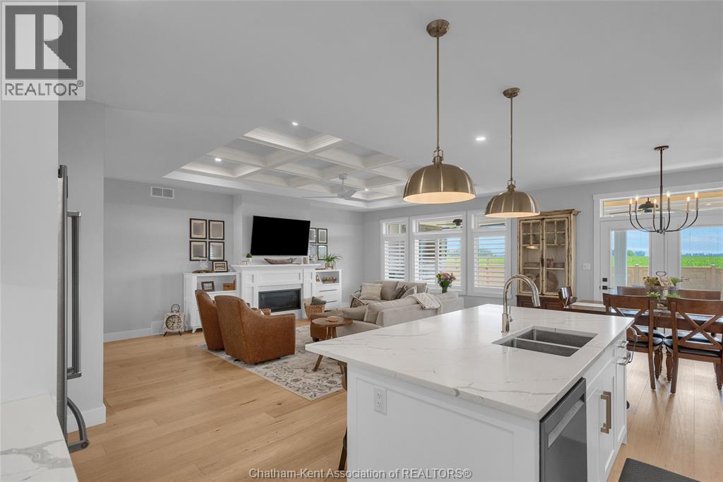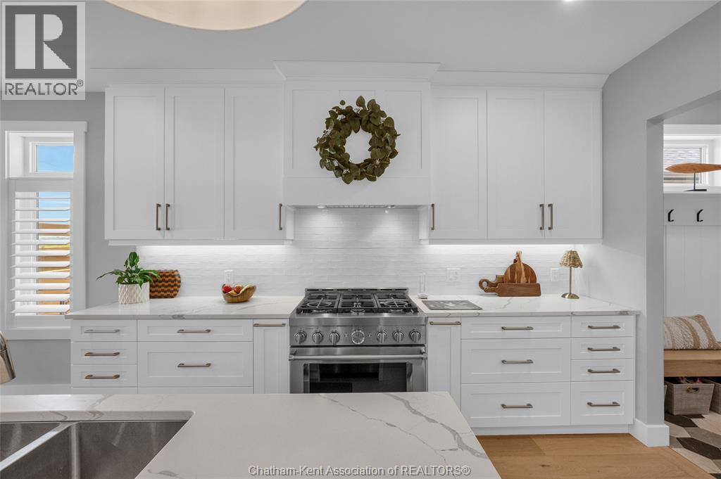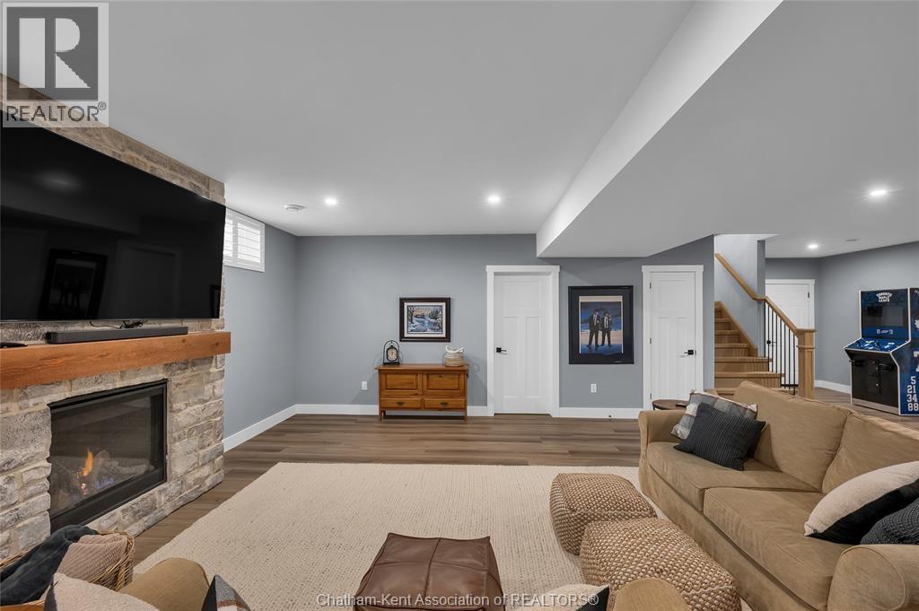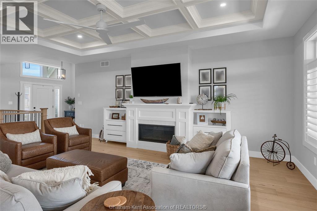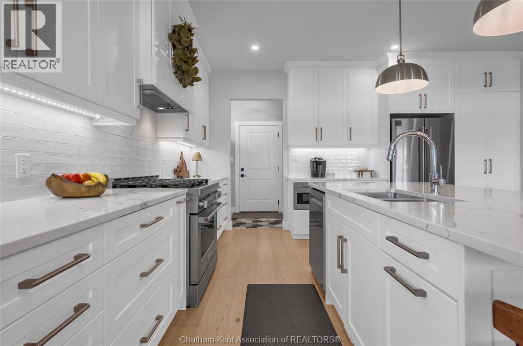 Welcome to luxury living with this beautifully designed 1,820 sq. ft. custom built ranch by Ewald Homes and showcasing exceptional quality and craftsmanship throughout. Featuring 2+2 bedrooms and 3 full bathrooms, this home presents a favourable layout with elegant details and modern touches. The main floor boasts an open-concept great room with a coffered ceiling, gas fireplace, and a chef’s kitchen complete with a large island, 36” gas stove, modern microwave, ample cabinetry, and an impressive hidden walk-in pantry. In the left wing, you'll find a well-appointed laundry room with quartz countertops, sink and custom cabinetry for added convenience. There’s 2 bedrooms with the spacious primary suite offering a walk-in closet with organizer and a luxurious ensuite featuring in-floor heat, a soaker tub, and a tiled glass shower providing the perfect space to unwind. The lower level offers two additional bedrooms, a spacious rec room with another gas fireplace, a den or storage room, and plenty of space for guests, entertaining, or multigenerational living. Step outside to enjoy the beautifully landscaped backyard, complete with a covered porch featuring composite decking, an outdoor gas fireplace, storage shed, and a fully fenced yard that is ideal for relaxation or entertaining. This meticulously maintained home shows true pride of ownership and is a must see in person to be fully appreciated. Remainder of Tarion warranty for reassurance! Call today! (id:4555)
