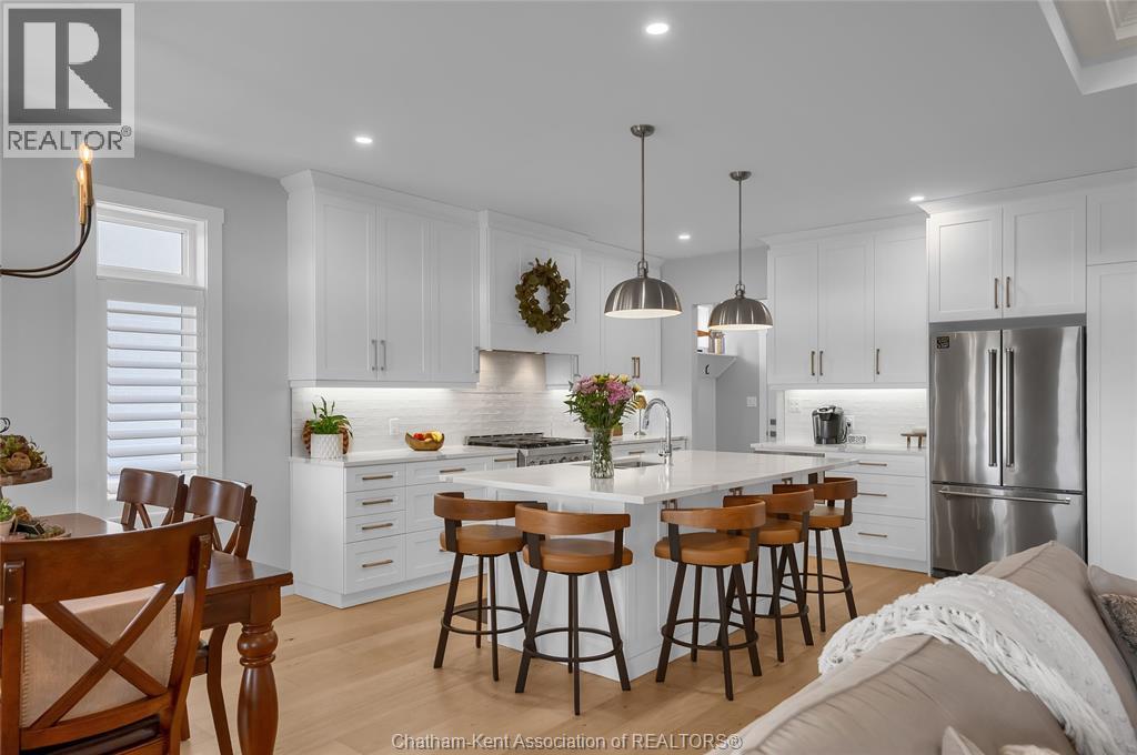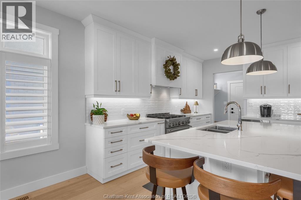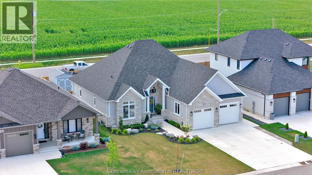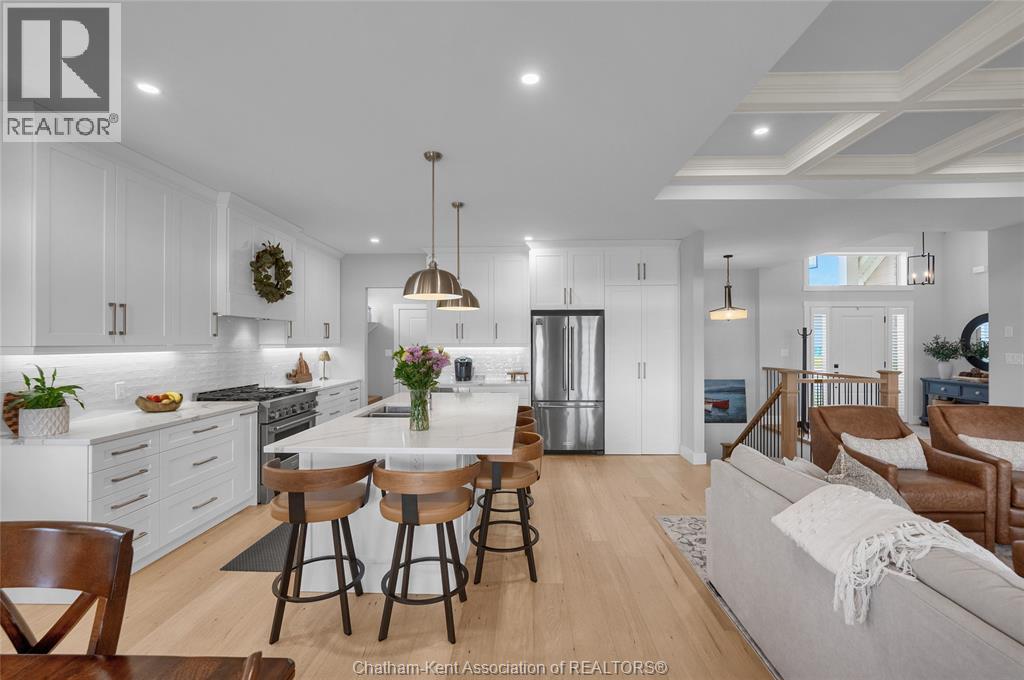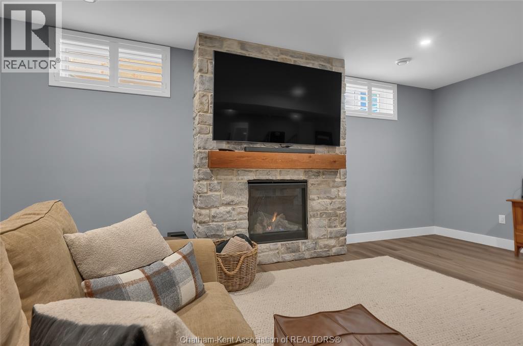 Welcome to luxury living with this beautifully designed 1,820 sq. ft. custom built ranch by Ewald Homes and showcasing exceptional quality and craftsmanship throughout. Featuring 2+2 bedrooms and 3 full bathrooms, this home presents a favourable layout with elegant details and modern touches. The main floor boasts an open-concept great room with a coffered ceiling, gas fireplace, and a chef’s kitchen complete with a large island, 36” gas stove, modern microwave, ample cabinetry, and an impressive hidden walk-in pantry. In the left wing, you'll find a well-appointed laundry room with quartz countertops, sink and custom cabinetry for added convenience. There’s 2 bedrooms with the spacious primary suite offering a walk-in closet with organizer and a luxurious ensuite featuring in-floor heat, a soaker tub, and a tiled glass shower providing the perfect space to unwind. The lower level offers two additional bedrooms, a spacious rec room with another gas fireplace, a den or storage room, and plenty of space for guests, entertaining, or multigenerational living. Step outside to enjoy the beautifully landscaped backyard, complete with a covered porch featuring composite decking, an outdoor gas fireplace, storage shed, and a fully fenced yard that is ideal for relaxation or entertaining. This meticulously maintained home shows true pride of ownership and is a must see in person to be fully appreciated. Remainder of Tarion warranty for reassurance! Call today! (id:4555)