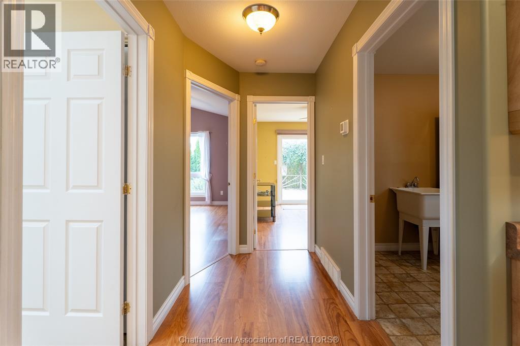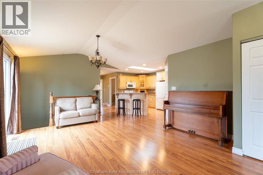 Welcome to this well-kept ranch offering convenient one-floor living and a functional open layout. Featuring an attached garage with double cement driveway, this home greets you with a covered front porch perfect for morning coffee, plus a side deck and back deck for private outdoor enjoyment. Inside, the open-concept living, dining, and kitchen area with hard surface flooring makes entertaining a breeze. The main floor offers two comfortable bedrooms, main-floor laundry, and a 4-piece bath with skylight for natural light. The finished basement adds plenty of living space with two additional bedrooms, a full bath, and extra storage. Updates include a newer furnace(HeatPump)for peace of mind. Surrounded by mature, private landscaping and located close to walking paths and a playground, this home is the perfect blend of comfort and convenience. (id:4555)