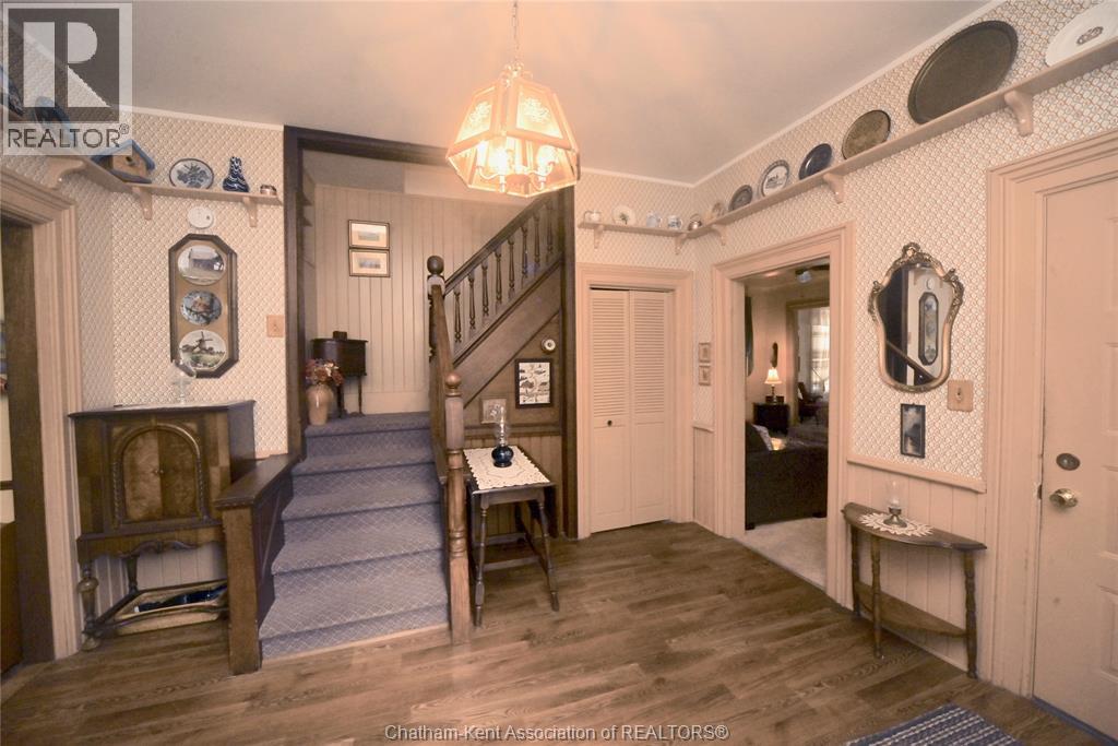 There's room for everybody in this big beauty in historic Ridgetown. 3 bedrooms with potential for 4, 1 1/2 bathrooms, large room sizes and a century home that still has some old world character, but has been lovingly maintained and thoroughly updated with all of the important and costly items, HVAC, wiring, plumbing, insulation, siding and shingles. A main floor laundry room can be a hard find in an older home and closets are also a struggle, but not here! So much storage space has been built in on both levels, and through the full basement. Upstairs are 3 bedrooms with a bonus room off of the back bedroom, perfect for an office, walk in closet, ensuite, or nursery. The back mudroom of the kitchen is super handy to keep the outside where it belongs, and the enclosed side porch is a lovely sitting spot for a bit of both. The yard is just as perfectly kept, with gorgeous gardens and a two tier back deck. A detached single car garage offers parking or workshop potential too. (id:4555)