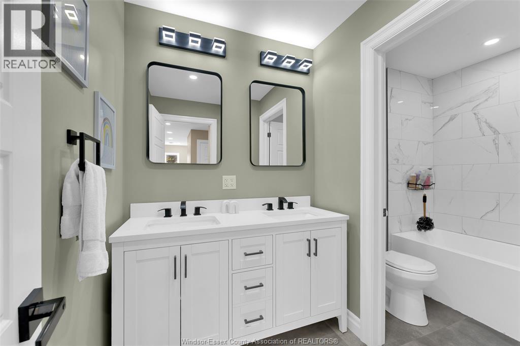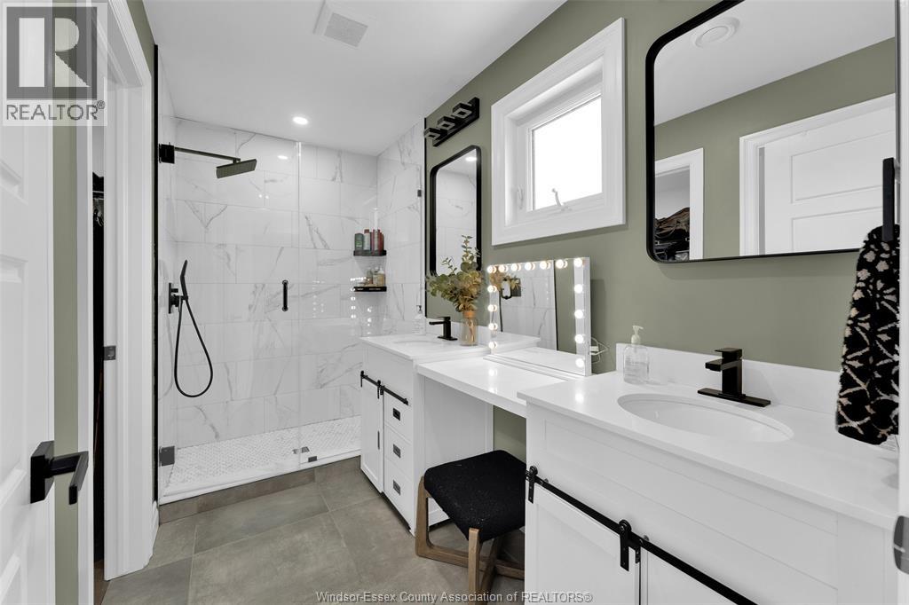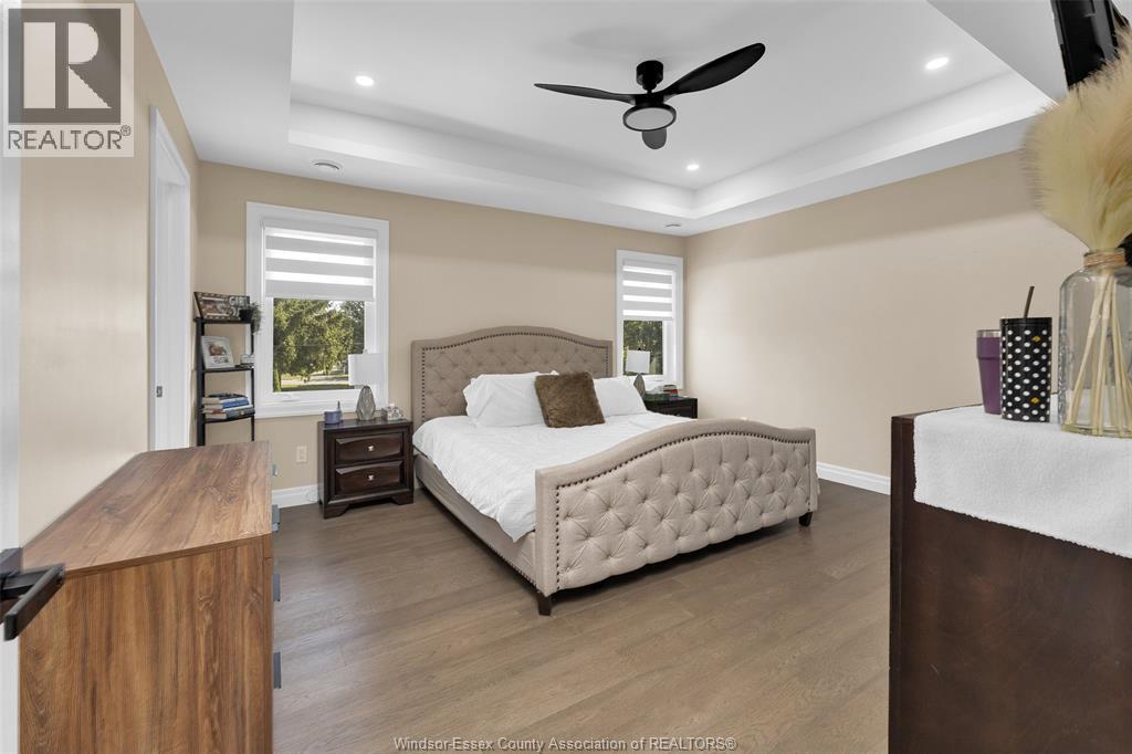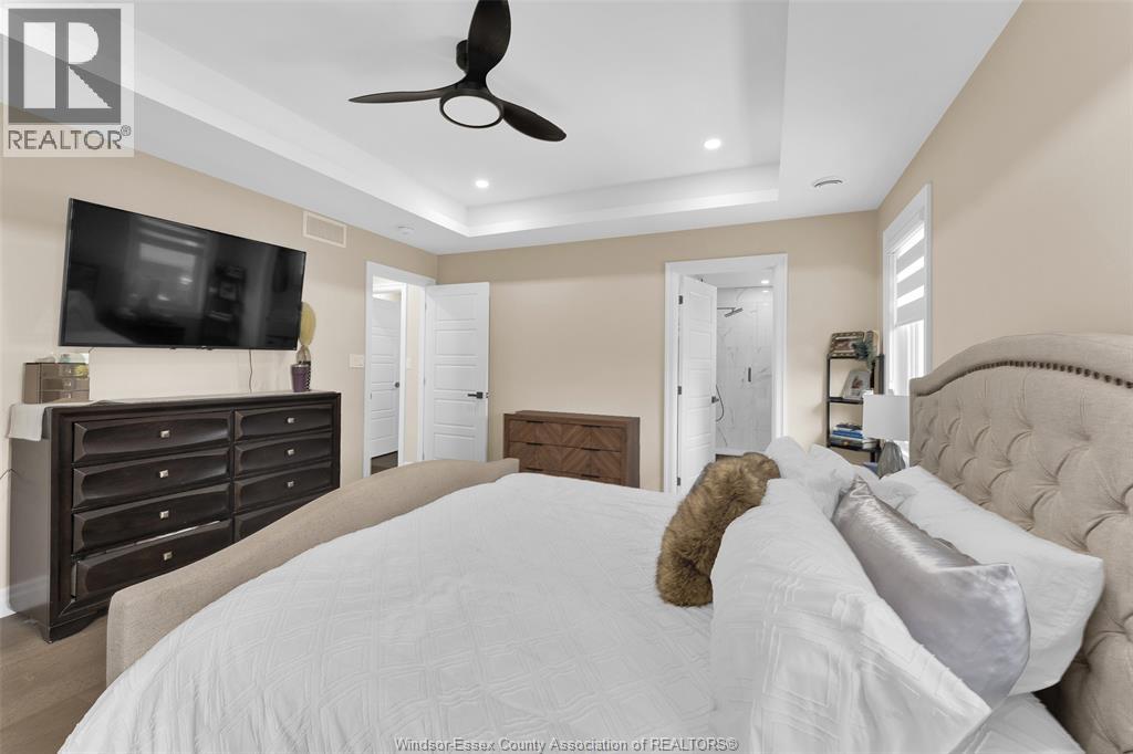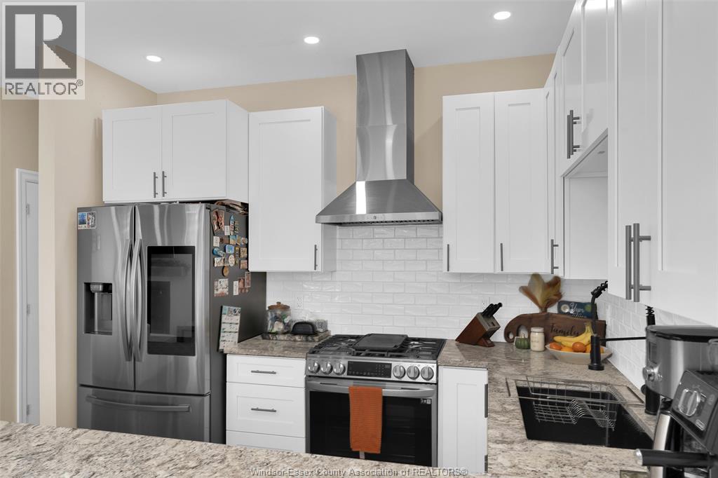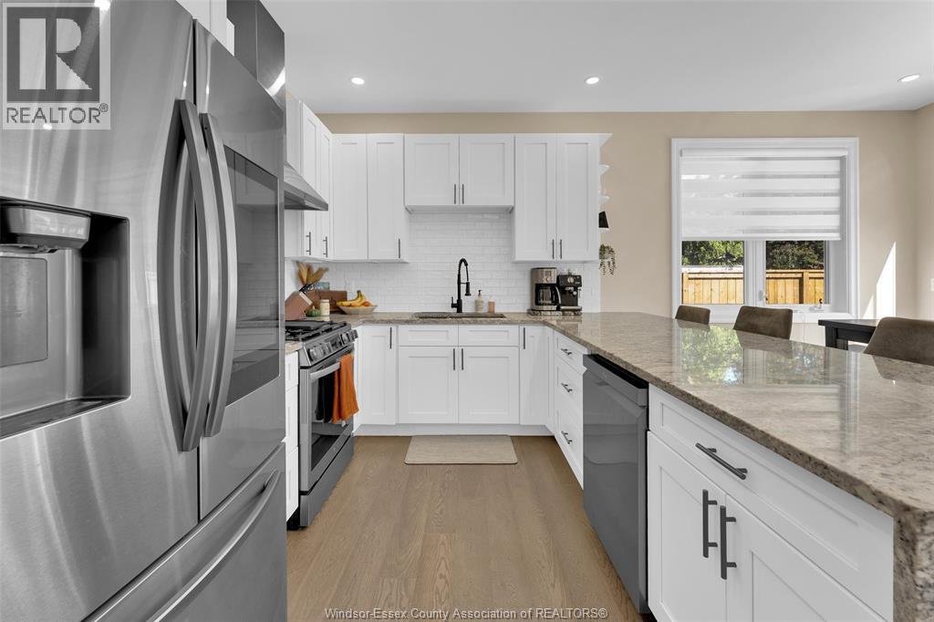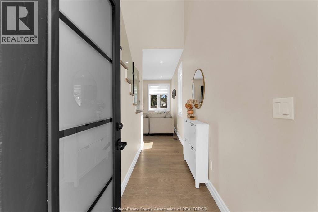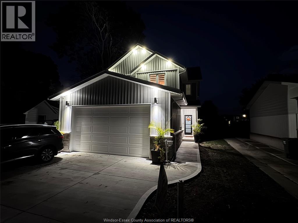 Custom built in 2023, this stunning 2-storey Amherstburg home offers 3+1 bedrooms, 2.5 baths, and an attached double garage with 1,727 SQFT of above-grade living space plus a mostly finished basement featuring an additional bedroom with large window, spacious living area, and bathroom rough-in. The exterior showcases stone wainscot detailing, board-and-batten with vinyl siding, new privacy fence (2025) along north side of yard, and paved triple-wide driveway, walkways and rear patio (front drive parks 3 cars wide comfortably). Inside, you’ll find engineered hardwood floors, custom glass railings, second-floor laundry and a modern kitchen with waterfall-edge granite countertops, gas stove, all new (2023) appliances and oversized sliding patio doors leading to paved rear patio. The primary suite boasts a walk-in closet and spa-style 5-piece ensuite. The home has a sump pump with battery back-up system & backflow valve. Located walking distance to vibrant downtown Amherstburg waterfront, walking trails, restaurants, shops & more. This block of George Street is just recently completely redone; sewers, road, sidewalks, boulevard sod all brand new! (id:4555)