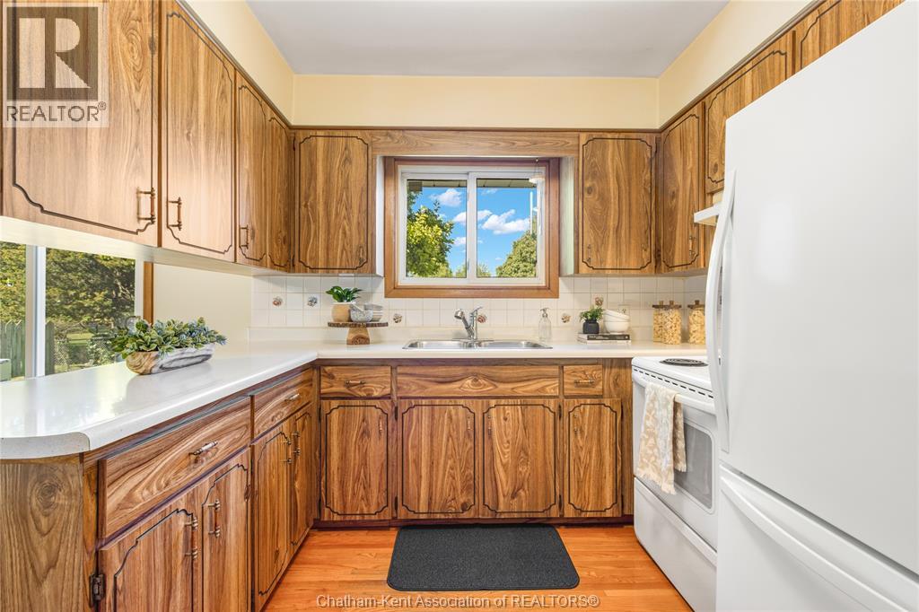 Tucked away on a quiet cul-de-sac and backing onto a school with no rear neighbours, this charming brick rancher is a true find. From the moment you step onto the property, the meticulous landscaping and pride of ownership over the years are evident—enhanced by a convenient underground sprinkler system that keeps the grounds lush and well maintained. Step inside to a bright and inviting layout featuring a large living room with gleaming hardwood floors that connects to a spacious eat-in kitchen with patio access to the beautifully landscaped backyard—perfect for relaxing or entertaining. The main floor offers three generous bedrooms and a four-piece bath. The lower level includes a convenient two-piece bath and plenty of potential for additional living space, with separate access from the driveway. Outside, enjoy a double concrete driveway with carport, a handy storage shed, and beautifully maintained grounds enclosed by a fully fenced yard. A 14KW generator adds peace of mind, completing this well-cared-for property. Property is being sold in “as-is” condition at the request of the estate. (id:4555)