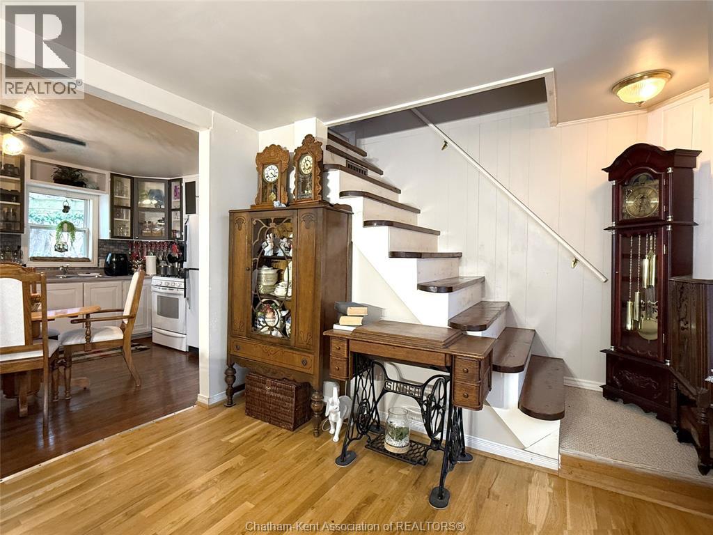This two story home is the definition of cozy and comfortable. Located in scenic Ridgetown, The Friendliest Town in Ontario’, 20 minutes from Chatham, 10 minutes from Blenheim and a stone’s throw from Rondeau Park. The main floor features a quaint kitchen, a large 4pc bathroom with a jacuzzi and standup shower. From the kitchen step out onto the wood deck looking out over a large backyard, or head over to the living room with its two large windows looking out to a neighbourhood that is peaceful and quiet. A lovely wooden staircase leads upstairs to a large primary bedroom and two smaller bedrooms. This property presents a wonderful opportunity for those who are looking to downsize. That said, the large yard presents possibilities for an addition or an ADU. (id:4555)