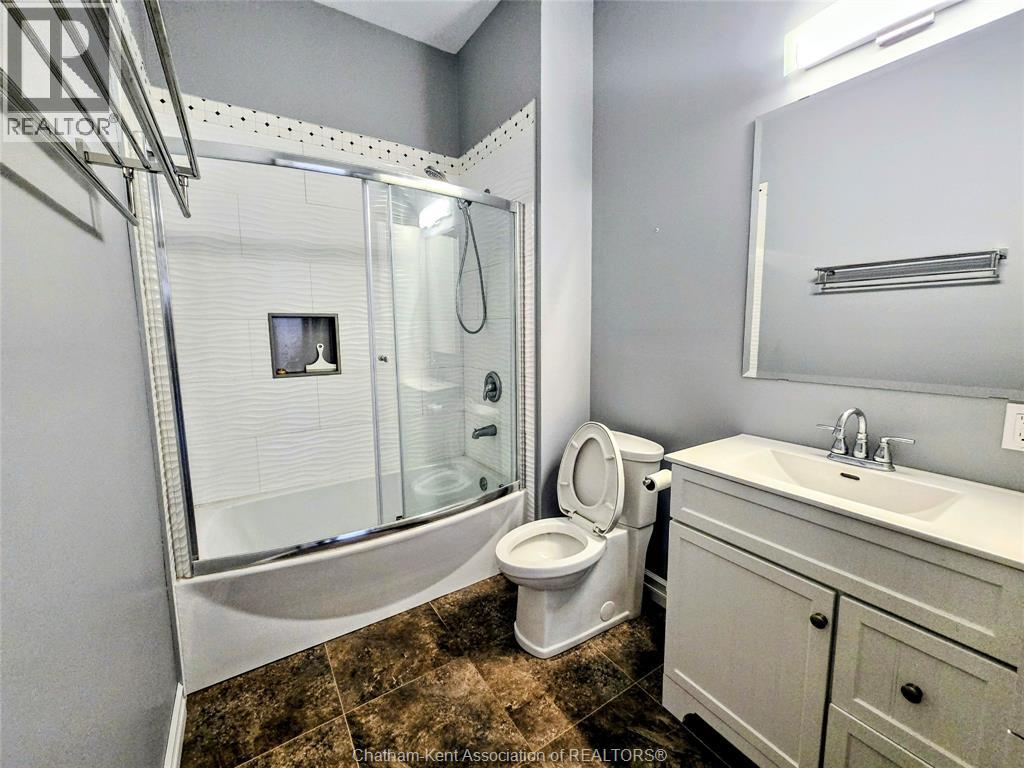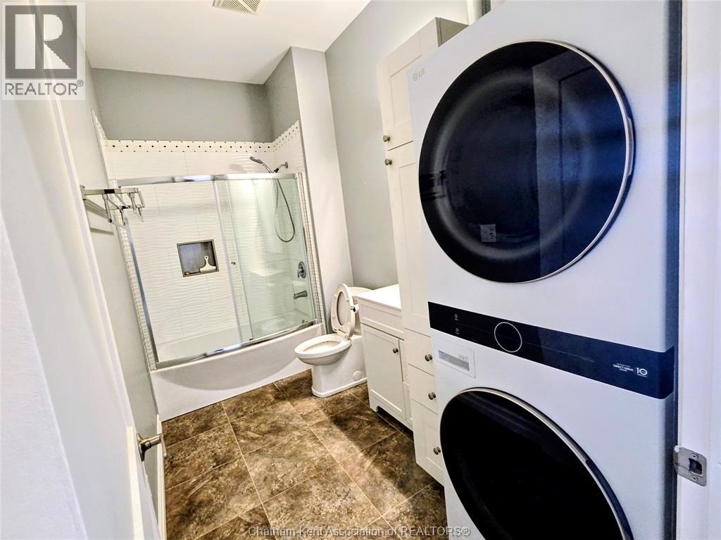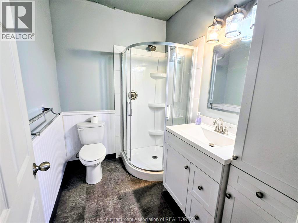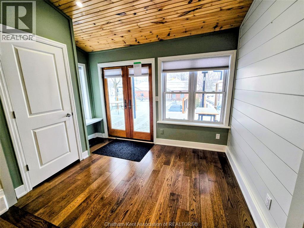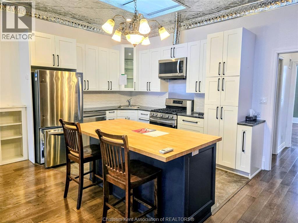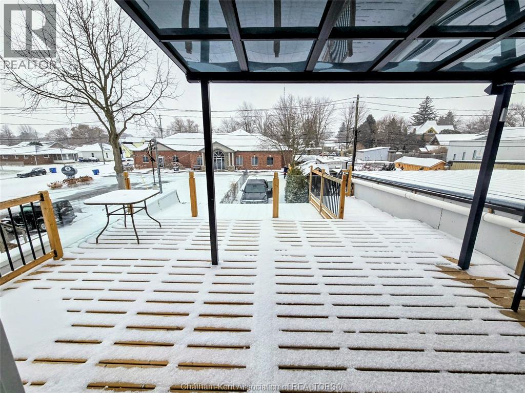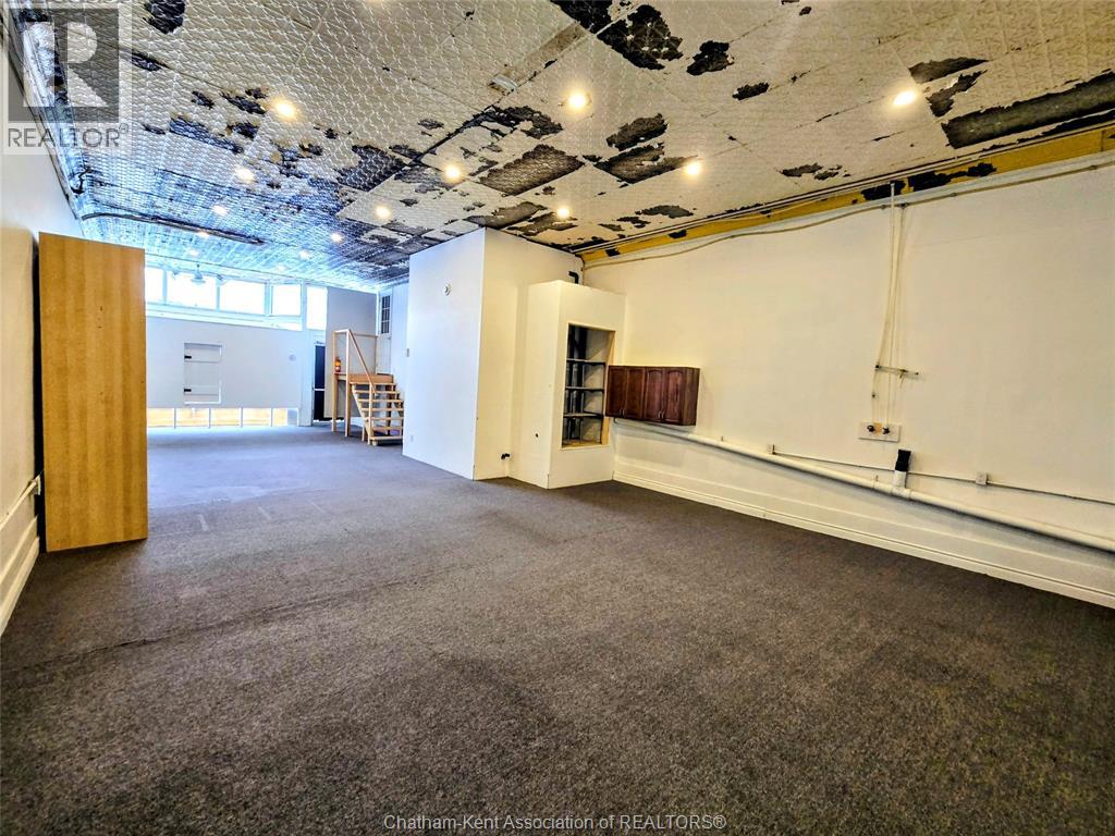 Welcome to 163 Main St in Downtown Dresden- A great investment with multiple opportunities for income potential!! The main floor offers a perfect commercial space (900 sq ft) in the heart of downtown with lots of natural light, charming original embossed tin ceilings and a 3 piece bathroom. A 20 x 21 heated garage (spray foamed walls/ceiling) sectioned off in the back adds an additional entrance plus garage door with plenty of outdoor parking (4+ spots). You could even turn this space into a second residential rental unit or utilize the main floor as a live/work opportunity. Although not currently being utilized a second, separate entrance from the front of the building could lead upstairs to the fully renovated and STUNNING residential unit (910 sq ft). This upper floor unit is absolutely breath taking with exposed brick, modern vintage inspired decorative tin ceiling with two fabulous skylights over the kitchen, and a large and bright living/entertainment space accompanied by a sunroom that leads to a spacious west facing balcony with rear entrance. All appliances in the kitchen/bath/laundry come with the building so you are set for success with separate meter capabilities for each floor. You don't want to miss this opportunity- set up a showing and make an investment towards your future today!! (id:4555)
