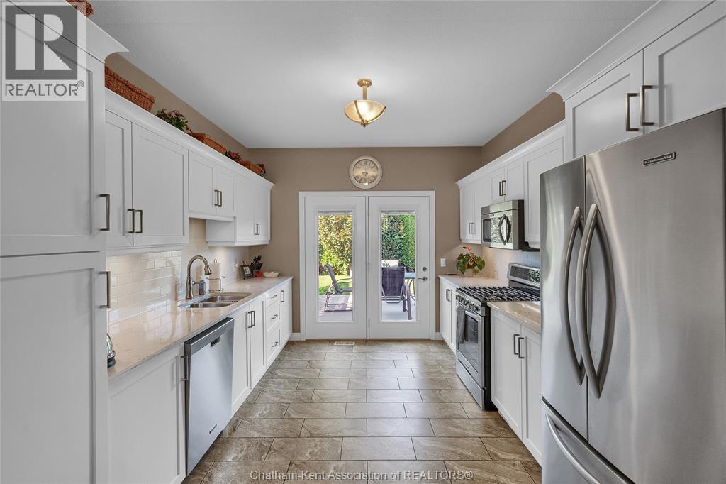 Attention empty nesters. You have to see this end unit townhouse with a double car is in a much sought after area. The home offers white kitchen with quartz counter tops, pull out drawers and stainless steel appliances. The living room has a 2 sided fireplace with the dining room. Grade entry is a real plus in this home with 36"" doors which makes it handicapped accessible.2 carpeted bedrooms on the main floor with the primary having an large ensuite bath. The partially finished basement has large bedroom, 3 pc. bath and large rec room. It has lots of storage space. The easy to maintain back yard has a bubbling rock and the walkway between the two units has a interlocking brick walk. The end unit must provide access to the middle unit's backyard for grass cutting etc. No association fees. IMMEDIATE POSSESSION. (id:4555)