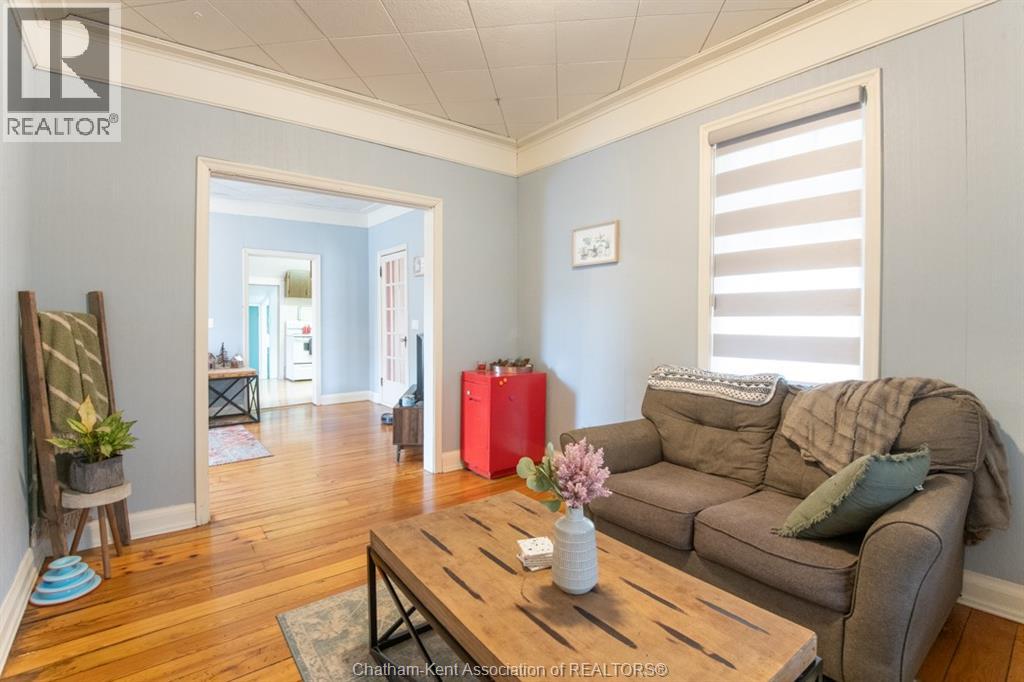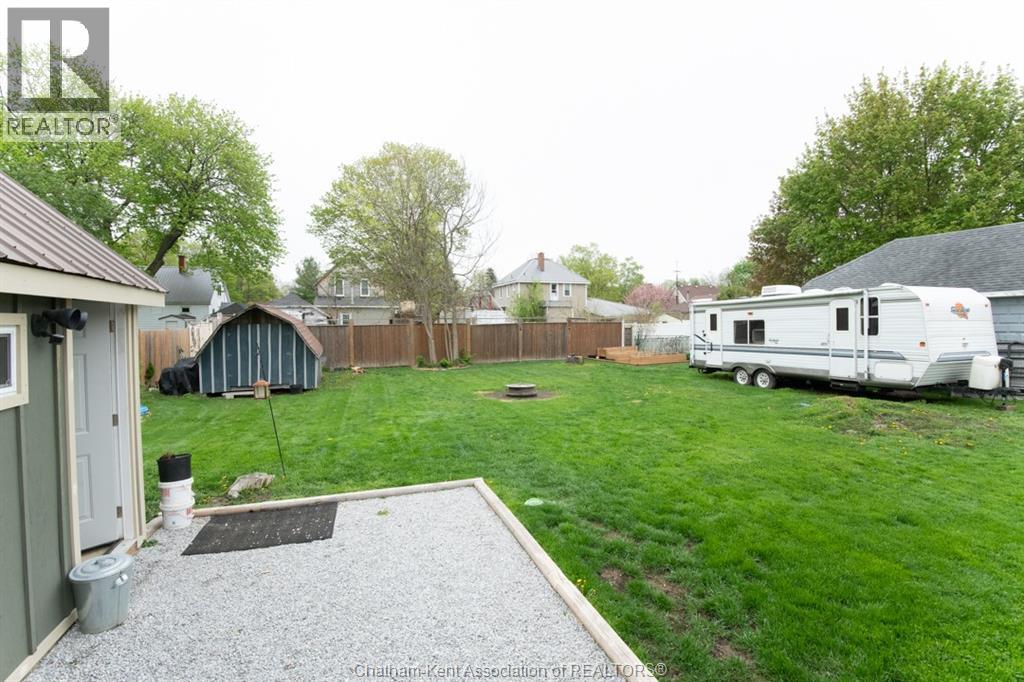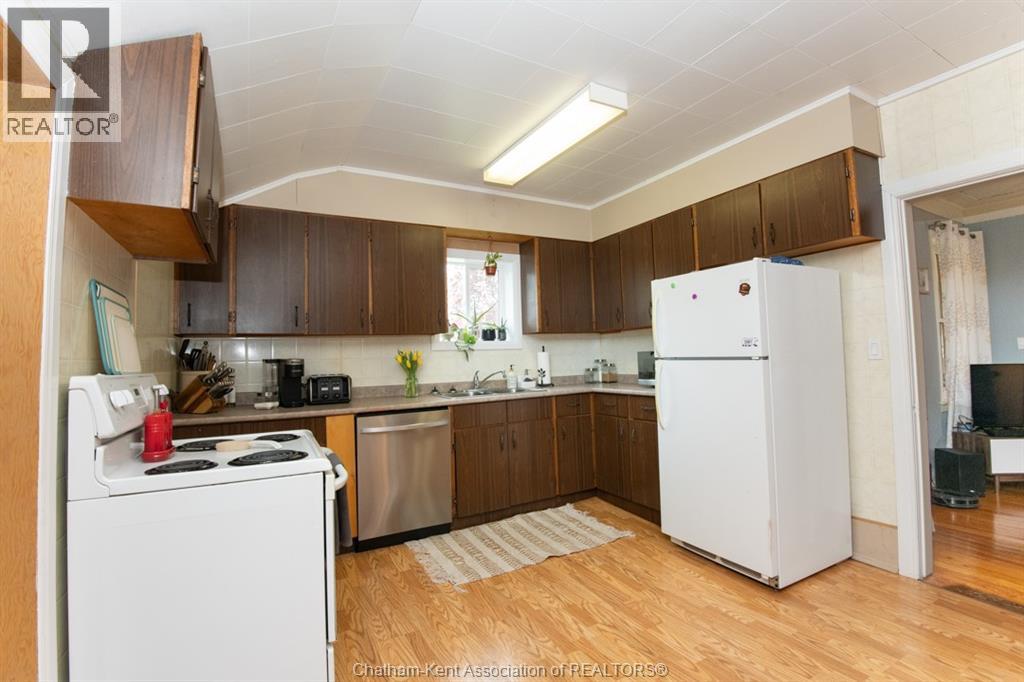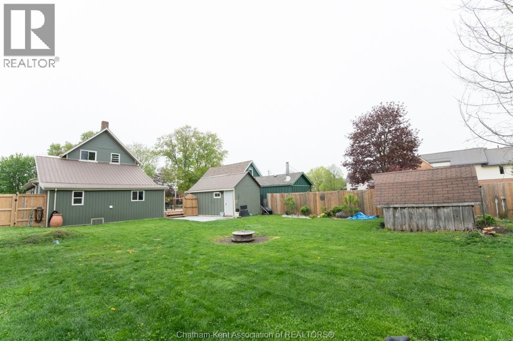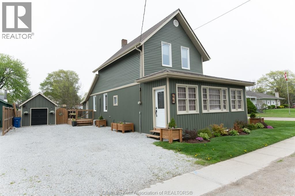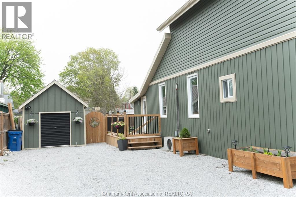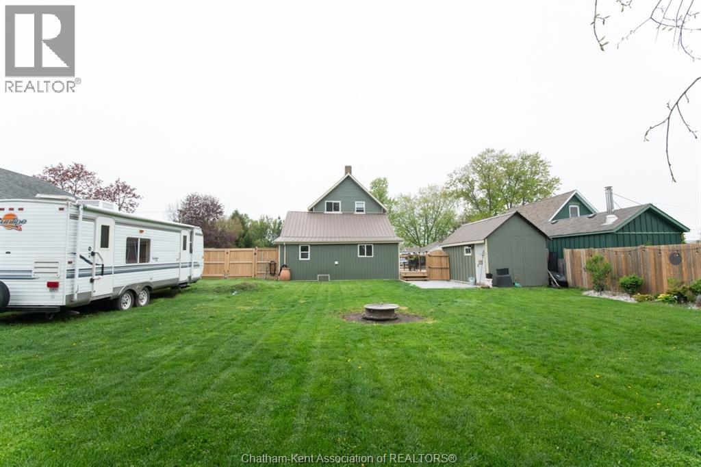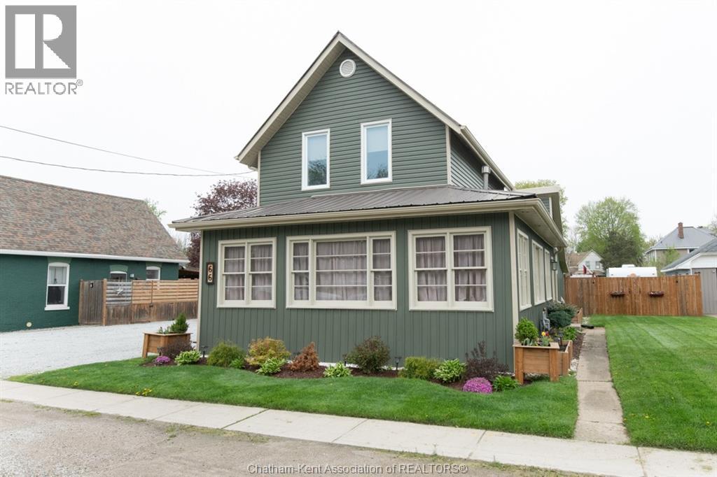 Fall in love with this beautifully updated 3 bedroom, 1.5-story home, perfectly situated on an expansive lot in the heart of Thamesville. This is the ideal opportunity for first-time buyers or families seeking an affordable, move-in-ready home that blends a warm cottage feel with significant modern upgrades. The main floor welcomes you with newly refinished original hardwood flooring and a functional layout that includes a cozy living room, a versatile den, and an eat-in kitchen designed for family gatherings. The enclosed wrap-around porch offers an abundance of natural light and incredible extra space for storage. Enjoy the convenience of a main floor bathroom and laundry room. The upper-level features three bedrooms and an insulated attic for added energy efficiency. The exterior of this home boasts massive curb appeal with a suite of high-value updates completed in 2023, including all-new siding, eavestroughs, soffits, fascia, and energy-efficient windows. A long-lasting metal roof and an owned hot water tank (2019) provide long-term peace of mind and cost savings. Outdoor enthusiasts and hobbyists will be impressed by the massive 6-car driveway and the fully fenced backyard featuring a large, gated entrance for easy vehicle access. The property includes a detached garage wired with hydro, plus an additional shed perfect for extra storage. All appliances are included in the sale, making this a truly turnkey package. From the stylish finishes to the tranquil backyard, this newly refreshed home will not disappoint. Experience the perfect mix of comfort, convenience, and affordability—make this beautiful property your new home today! (id:4555)