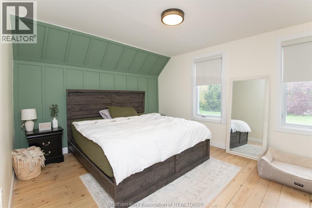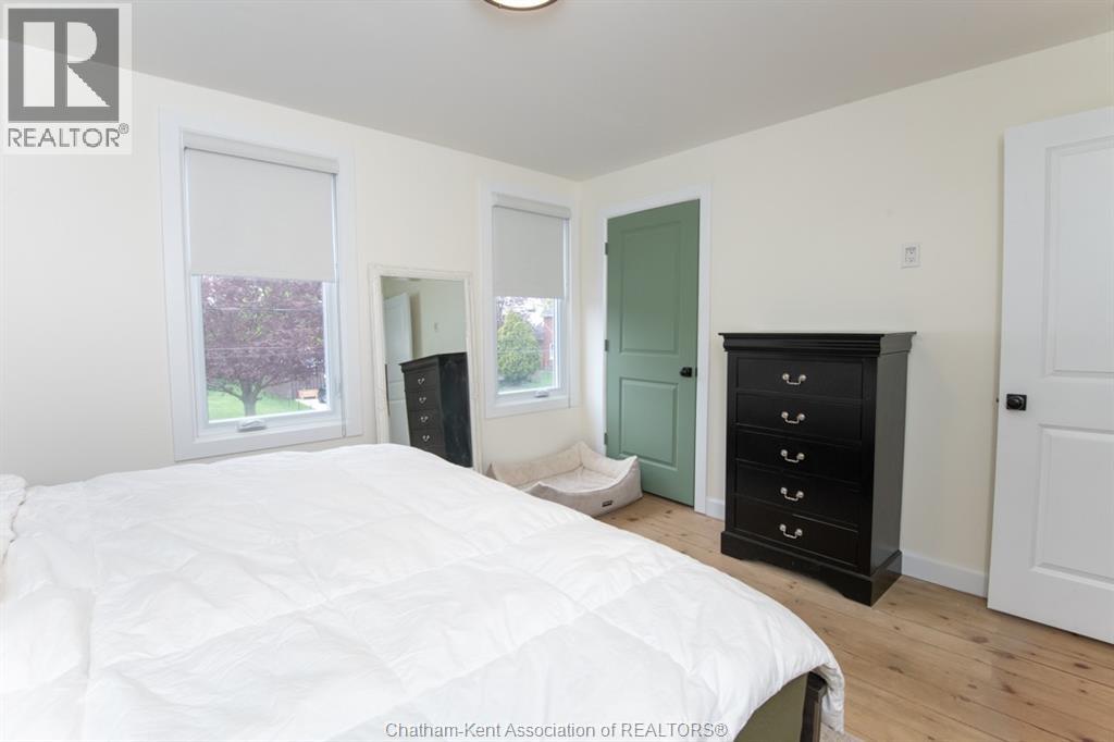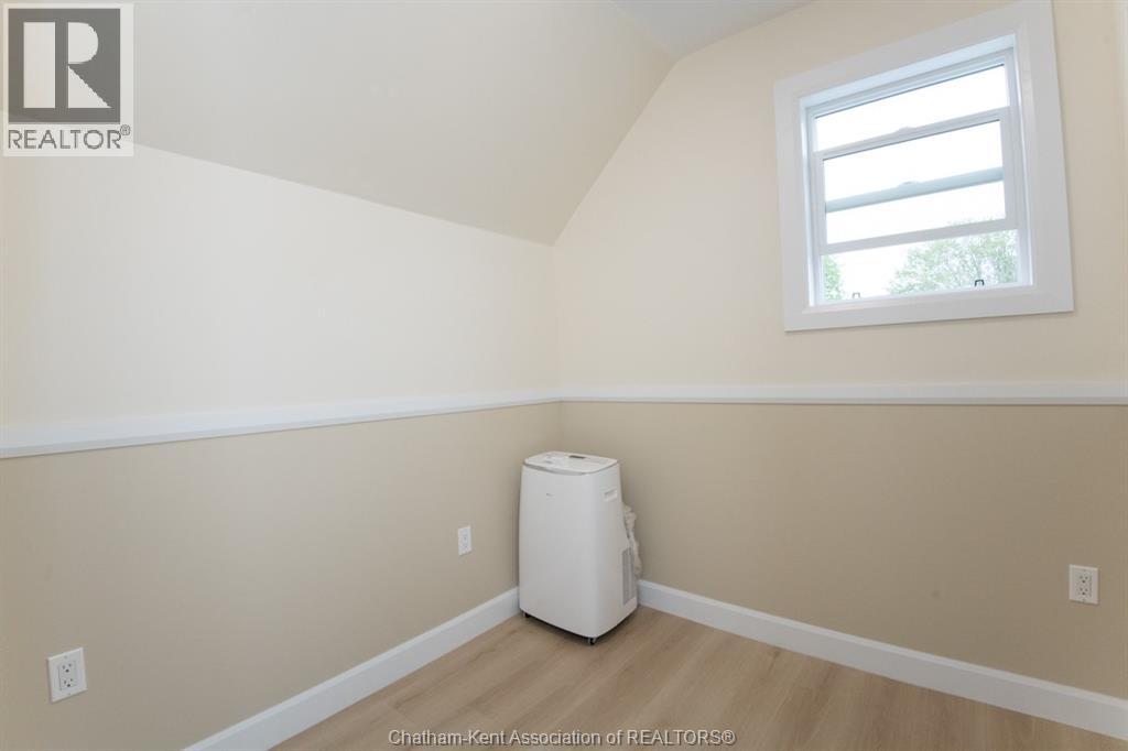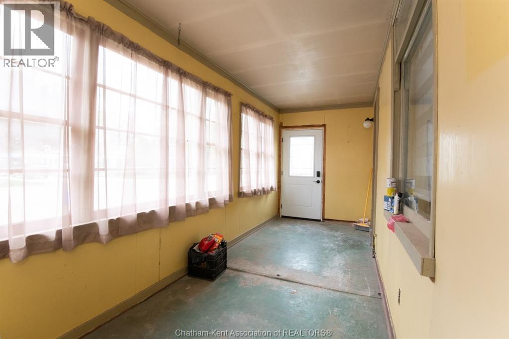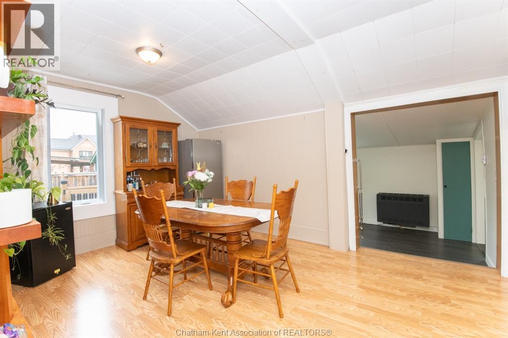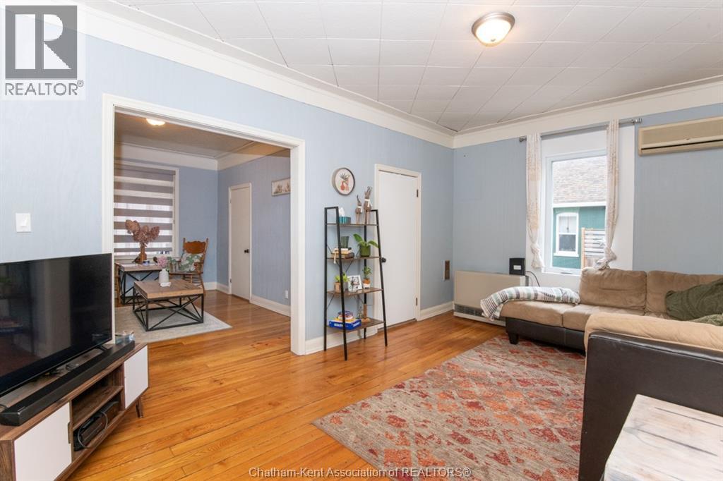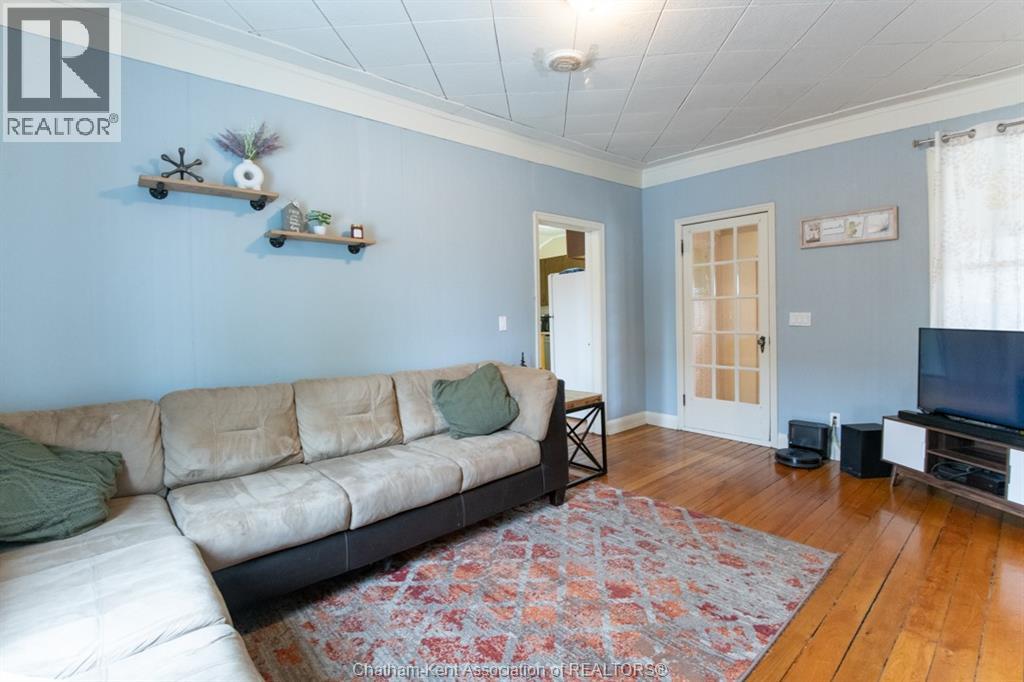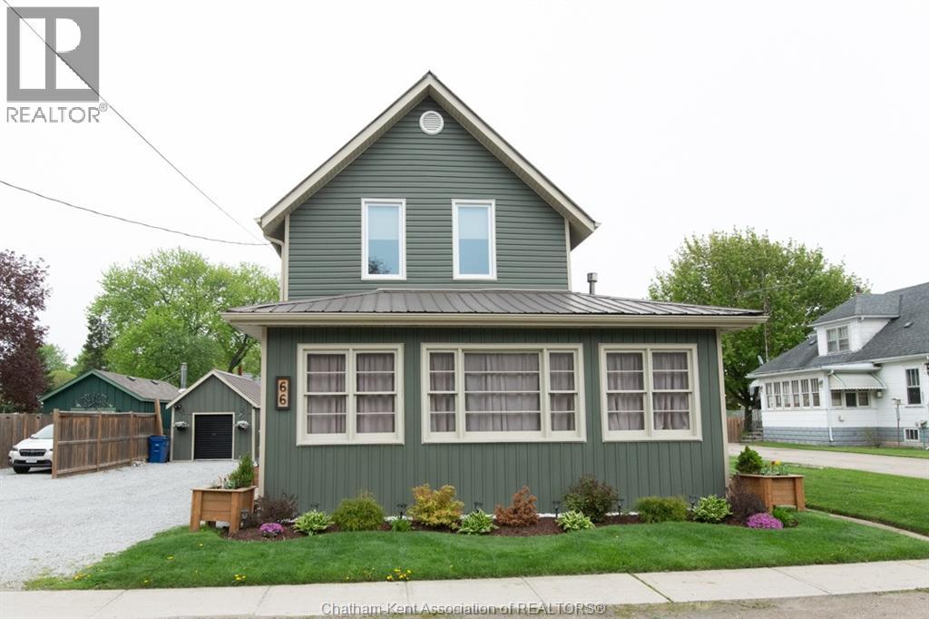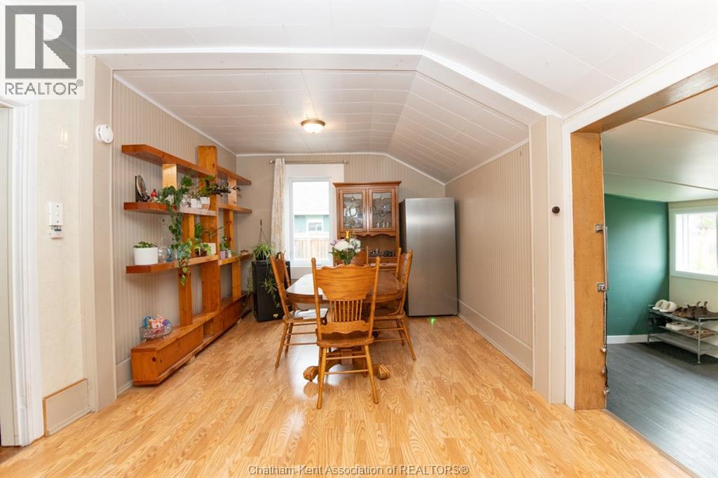 Fall in love with this beautifully updated 3 bedroom, 1.5-story home, perfectly situated on an expansive lot in the heart of Thamesville. This is the ideal opportunity for first-time buyers or families seeking an affordable, move-in-ready home that blends a warm cottage feel with significant modern upgrades. The main floor welcomes you with newly refinished original hardwood flooring and a functional layout that includes a cozy living room, a versatile den, and an eat-in kitchen designed for family gatherings. The enclosed wrap-around porch offers an abundance of natural light and incredible extra space for storage. Enjoy the convenience of a main floor bathroom and laundry room. The upper-level features three bedrooms and an insulated attic for added energy efficiency. The exterior of this home boasts massive curb appeal with a suite of high-value updates completed in 2023, including all-new siding, eavestroughs, soffits, fascia, and energy-efficient windows. A long-lasting metal roof and an owned hot water tank (2019) provide long-term peace of mind and cost savings. Outdoor enthusiasts and hobbyists will be impressed by the massive 6-car driveway and the fully fenced backyard featuring a large, gated entrance for easy vehicle access. The property includes a detached garage wired with hydro, plus an additional shed perfect for extra storage. All appliances are included in the sale, making this a truly turnkey package. From the stylish finishes to the tranquil backyard, this newly refreshed home will not disappoint. Experience the perfect mix of comfort, convenience, and affordability—make this beautiful property your new home today! (id:4555)