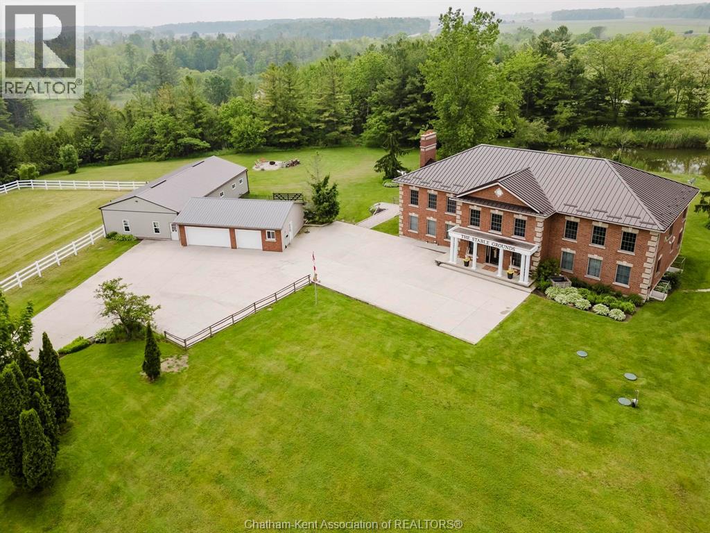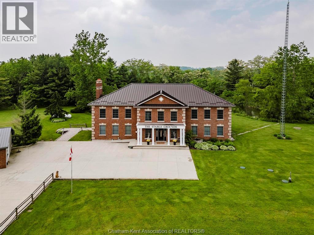 Presenting a rare & exceptional opportunity to acquire a meticulously maintained 55.03-acre countryside retreat. Ideally located just minutes from Highway 401 in West Elgin this facility was built with seclusion & convenience in mind. Currently operating as a thriving wellness retreat, the business is relocating—offering you the chance to reimagine this extraordinary estate’s next chapter. At the heart of the property stands a sprawling 7,500 sq ft residence with 10 spacious bedrooms & 7 bathrooms, designed to host large groups or multi-generational families with ease. The open-concept layout features a stunning chef's dream industrial-style kitchen, complete with a large island, separate butler's kitchen, & bistro-style seating area with access to a panoramic 60' balcony overlooking a tranquil pond & peaceful landscape—perfect for entertaining or running a commercial operation. A cozy fireplace central to the great room creates a warm & welcoming atmosphere for gatherings at the core of the premises. The fully finished lower level offers a private gym, yoga room, gathering room & dedicated office space-catering to both relaxation & productivity. State-of-the-art equestrian facilities are sure to captivate with its 100x150 indoor riding arena, 6-stall horse barn, 3 fenced paddocks, & fully outfitted tack room with attached studio apartment. The grounds also feature trails, offering serene views & the peaceful ambiance that defines this one-of-a-kind estate. Zoned A1 with permitted wellness facility use, the property is primed for continued commercial operation, agricultural ventures with 19 workable acres, or private luxury living. Whether you envision a private sanctuary, a retreat center, or an equestrian training facility, this property delivers unmatched potential in a truly idyllic setting. Don’t miss your chance to own a turnkey acreage combining natural beauty, luxury amenities, & business-ready infrastructure—all within easy reach of major travel routes. (id:4555)