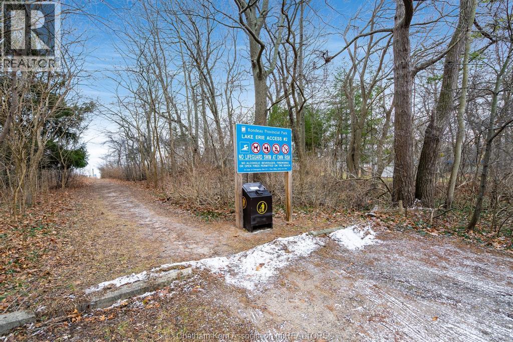 Escape to your own private sanctuary in the heart of Rondeau Provincial Park. Nestled ""in the bush"" and surrounded by forest, this 3-bedroom, 1-bath cottage offers the ultimate immersion in nature. Start your mornings watching deer and unique bird species from your doorstep before taking a short, scenic walk to the beach on the sandy shores of Lake Erie. Situated on a unique peninsula, you are perfectly positioned between the world-class fishing of Lake Erie and the calm waters of Rondeau Bay. Miles of premium hiking and biking trails are at your fingertips, while modern conveniences like the local restaurant and the park store (featuring an LCBO) are just a stroll away. Experience the serenity of park living with a secure land tenure extended to 2038. Grab your bags, and stay! Most furnishings included. Roof, electrical 100 amp breakers, water filtration system all in 2020. Fiber internet available.Contact your REALTORĀ® or Lisa today at 519-564-2013 to book your private showing. It's a beautiful day to get you moving! (id:4555)
