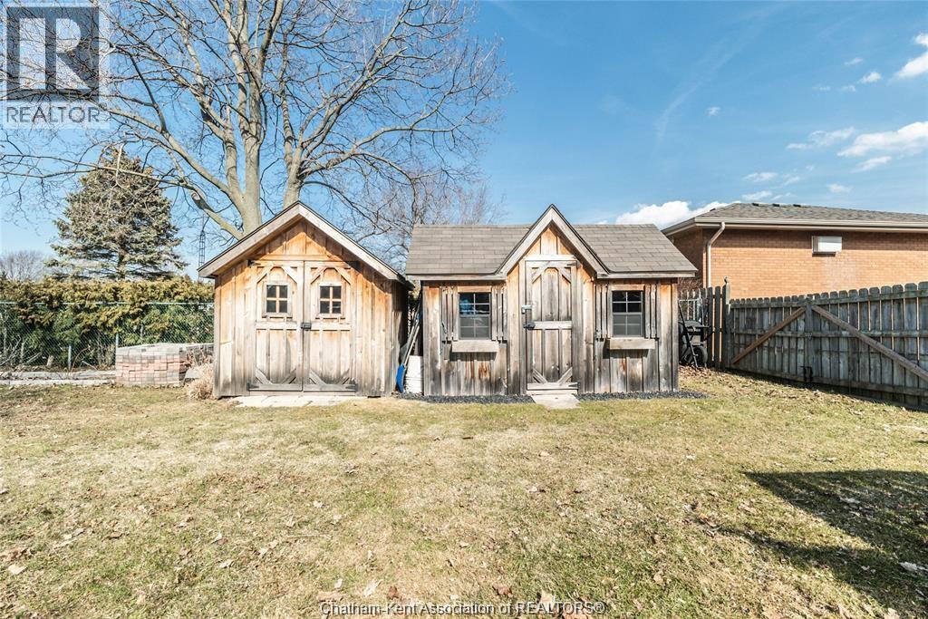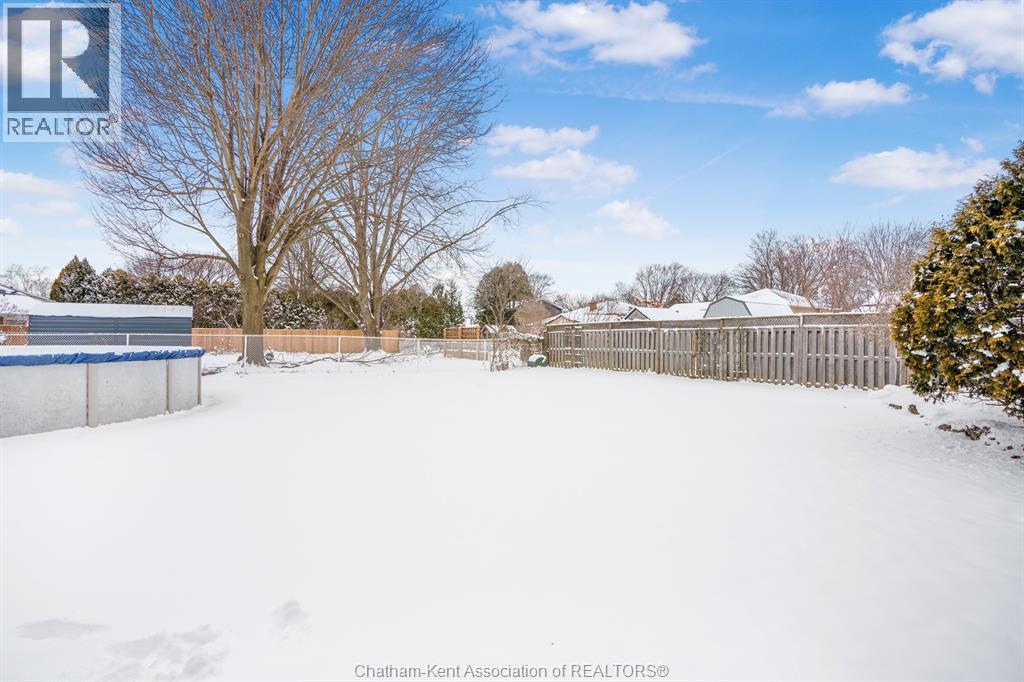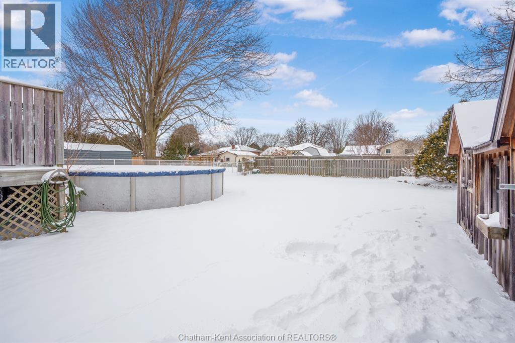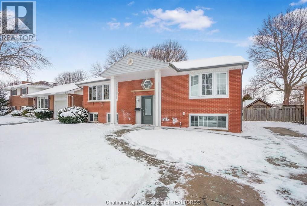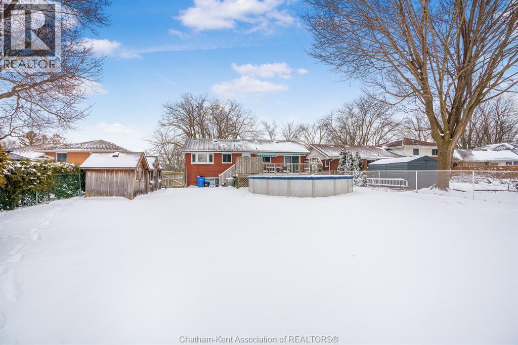 This beautiful home shows better than the photos! 4 bedroom, 2 bathroom fabulously appointed raised ranch home on Chatham's desired Northside close to all amenities! The private backyard boasts a heated 24 ft above ground pool with newer heater and chlorinator (2025), plus amble green space for your kids and pets to play! The upper level of the home features a large living area, dining room, kitchen, 2 bedrooms and a 4 pc bathroom with heated flooring! The lower level offers a spacious living space, separate 3 pcs bathroom, laundry room and 2 more large bedrooms. Plus, you’ll love the convenience of being right across the road from Ellis Park, offering green space and recreational opportunities just steps away. Two large backyard sheds. New owned hot water on demand unit! This home is just waiting for you to unpack!! Pls no showings before 2pm (id:4555)