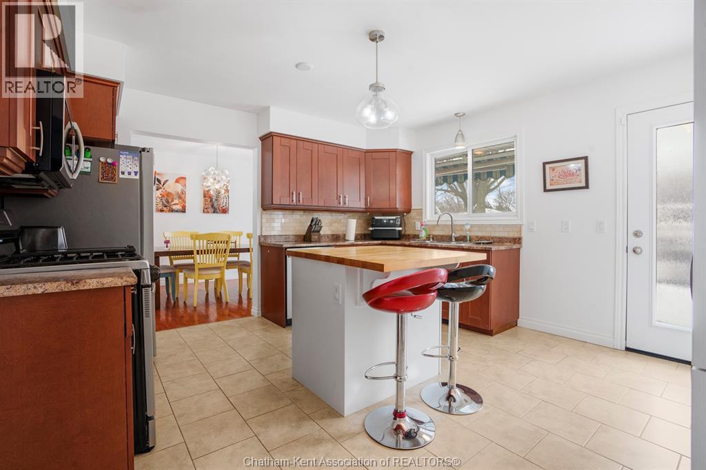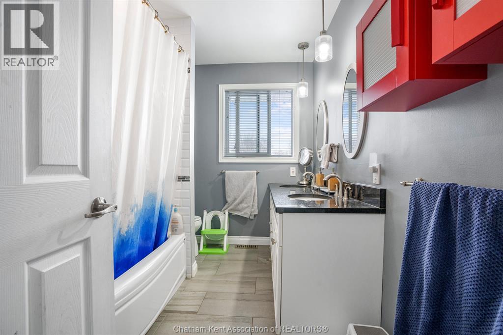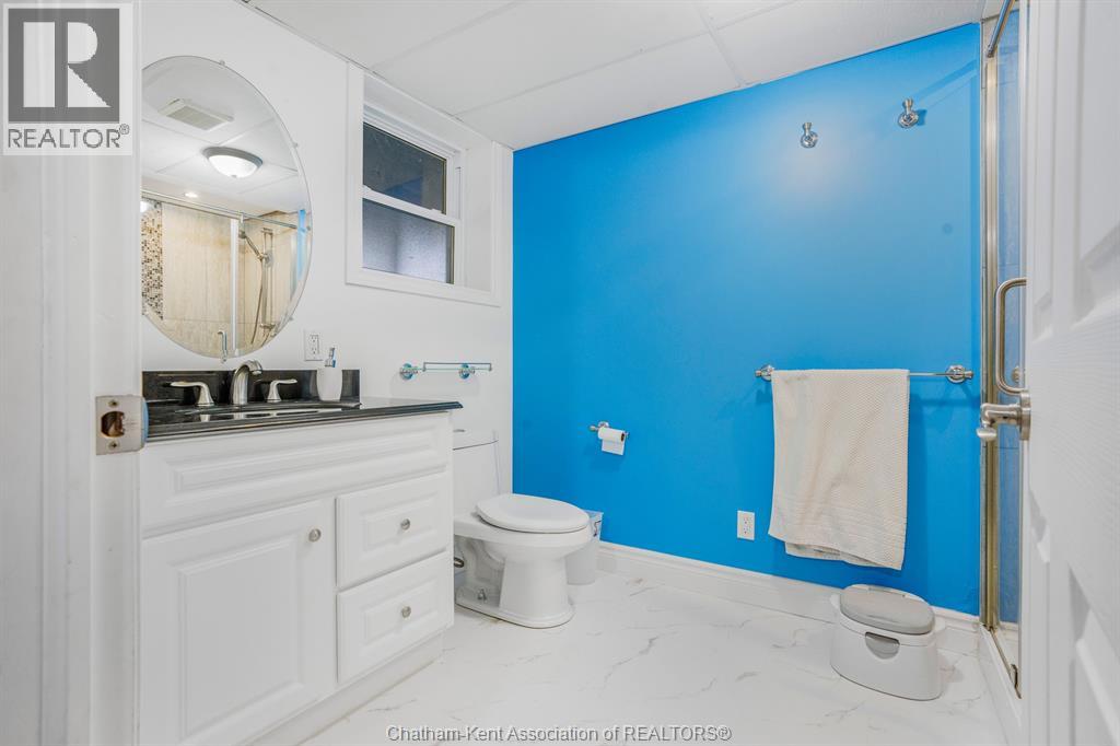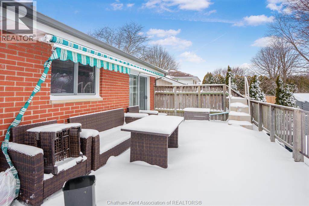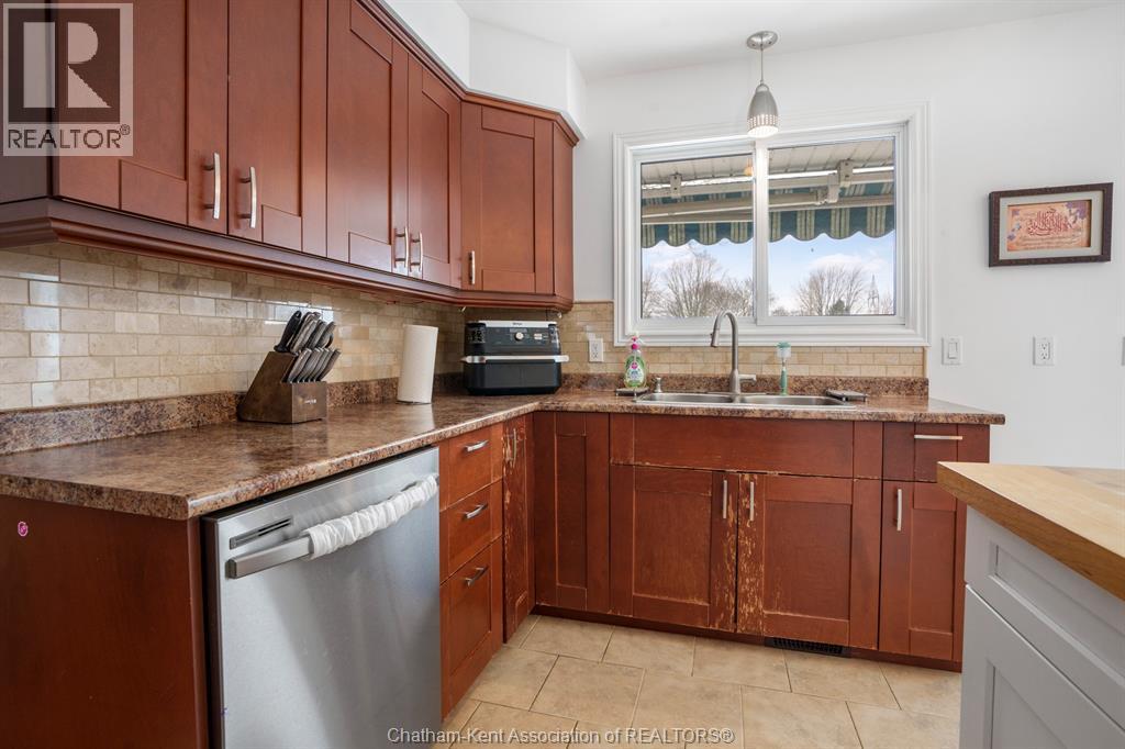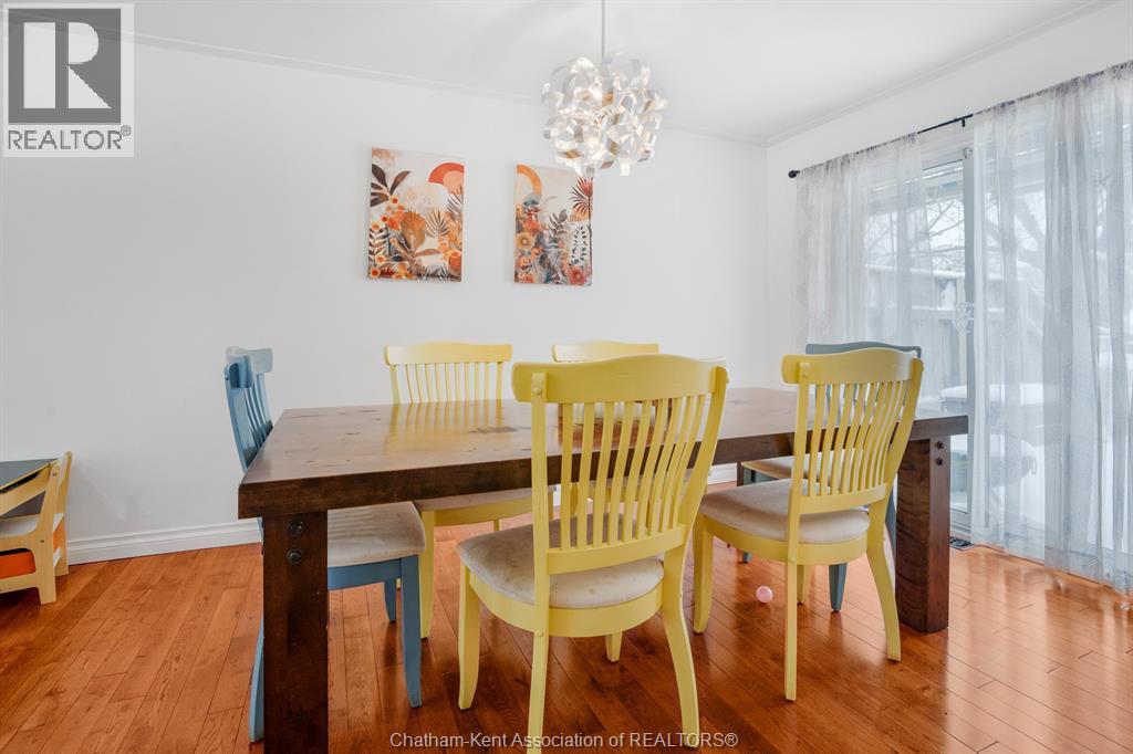 This beautiful home shows better than the photos! 4 bedroom, 2 bathroom fabulously appointed raised ranch home on Chatham's desired Northside close to all amenities! The private backyard boasts a heated 24 ft above ground pool with newer heater and chlorinator (2025), plus amble green space for your kids and pets to play! The upper level of the home features a large living area, dining room, kitchen, 2 bedrooms and a 4 pc bathroom with heated flooring! The lower level offers a spacious living space, separate 3 pcs bathroom, laundry room and 2 more large bedrooms. Plus, you’ll love the convenience of being right across the road from Ellis Park, offering green space and recreational opportunities just steps away. Two large backyard sheds. New owned hot water on demand unit! This home is just waiting for you to unpack!! Pls no showings before 2pm (id:4555)