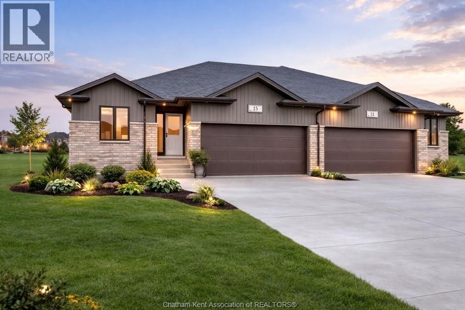 *** OPEN HOUSE WILL BE HELD AT 20 CORNERSTONE PLACE *** Welcome to this brand new open-concept semi-detached rancher on Chatham’s South side. Offering spacious, modern one-floor living, this home is filled with natural light and features two bedrooms and two full baths, including a large primary suite with walk-in closet and ensuite. The primary bedroom is thoughtfully positioned at the back of the home for privacy, while the additional bedroom and main bath are located at the front. The open layout flows from the kitchen with quartz countertops into the dining and living areas, where a cozy fireplace adds warmth and charm. The second bedroom offers flexibility for kids, grandkids, guests, or a home office. Enjoy the convenience of main-floor laundry, an attached garage, a full unfinished basement for future development, and a covered back patio perfect for relaxing outdoors. This Mi Cazza Construction quality-built home delivers exceptional value and comfort in a prime South Chatham location. Photos may include virtual staging or images from a similar build. (id:4555)