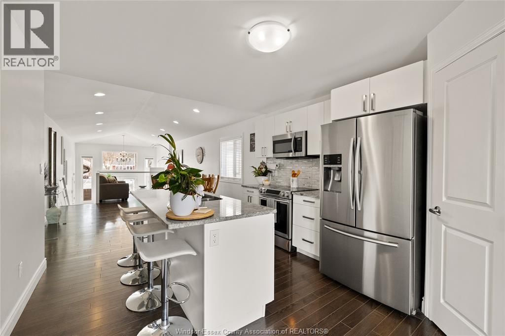 WELCOME TO THIS 2017-BUILT RAISED RANCH IN HIGHLY SOUGHT-AFTER EAST WINDSOR, JUST MINUTES FROM THE WFCU CENTRE, NEW COSTCO, GANATCHIO TRAIL, SHOPPING, PARKS, AND WITHIN THE COVETED DAVID SUZUKI PUBLIC SCHOOL DISTRICT. THIS WELL-DESIGNED HOME FEATURES 3+1 BEDROOMS AND 3 FULL BATHROOMS, INCLUDING A PRIMARY SUITE WITH WALK-IN CLOSET AND PRIVATE ENSUITE. LARGE WINDOWS FILL THE HOME WITH NATURAL LIGHT, ENHANCING THE SPACIOUS LAYOUT. THE LOWER LEVEL IS BUILT FOR ENTERTAINING WITH A WET BAR, FIREPLACE, AND GENEROUS MOVIE AND GAMES AREA. THE KITCHEN OFFERS STAINLESS STEEL APPLIANCES, AN EAT-AT ISLAND, WALK-IN PANTRY, AND FULL GRANITE COUNTERTOPS. ENJOY THE UPPER DECK WITH METAL GAZEBO AND NATURAL GAS BBQ LINE, OVERLOOKING A LARGE CONCRETE PATIO AND FULLY FENCED YARD. TWO-CAR ATTACHED GARAGE, NO RENTAL EQUIPMENT, AND TRUE TURNKEY LIVING. OFFERS REVIEWED WEDNESDAY FEB 18 AT 6PM. SELLER RESERVES THE RIGHT TO ACCEPT OR DECLINE ANY OFFER. (id:4555)