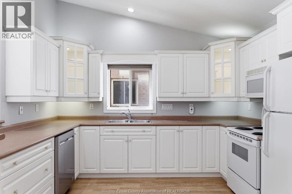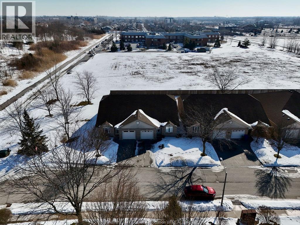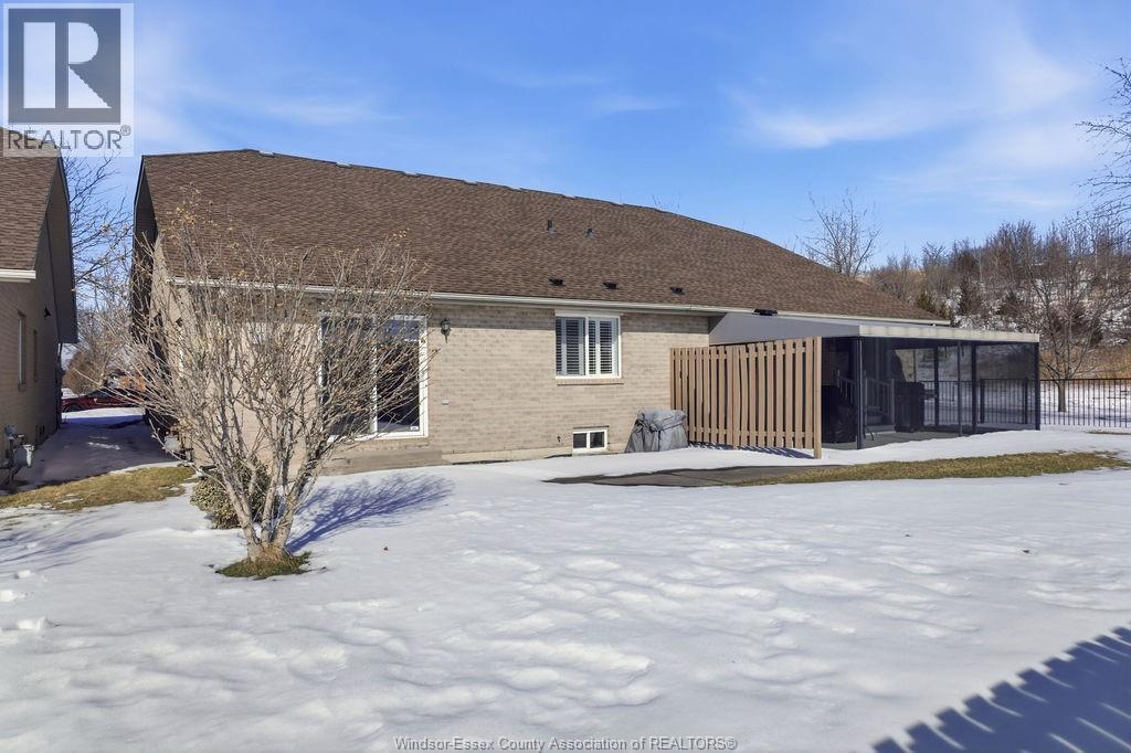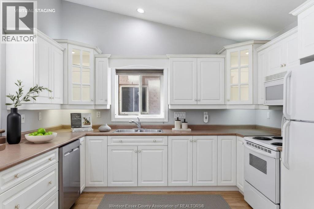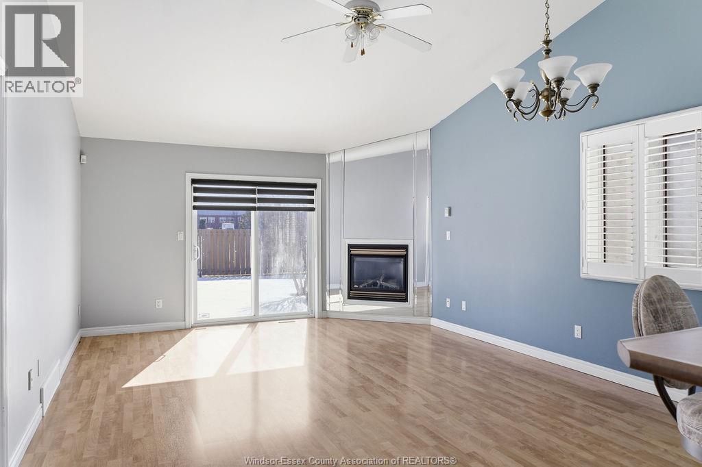 Enjoy maintenance-free living in this beautifully updated East Windsor end-unit townhome offering the rare combination of no rear neighbours and a prime location directly across from Blue Heron Park with scenic lake views and walking trails. Situated in a quiet, highly desirable East Riverside neighbourhood, this home features an open-concept kitchen with island overlooking the living room with gas fireplace, a spacious primary bedroom with walk-in closet and ensuite, second bedroom or office, and main floor laundry. The unfinished lower level offers excellent potential for additional living space with roughed-in bath and ample storage. Updated paint, flooring, plumbing. Monthly association fee $115 includes, snow, grass, roof, sprinkler. (id:4555)