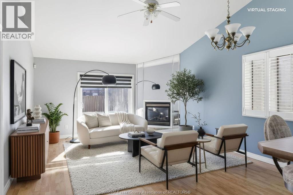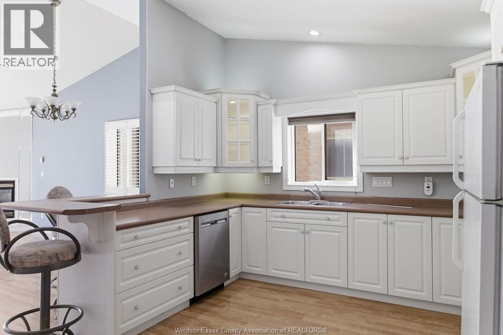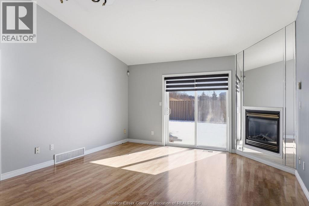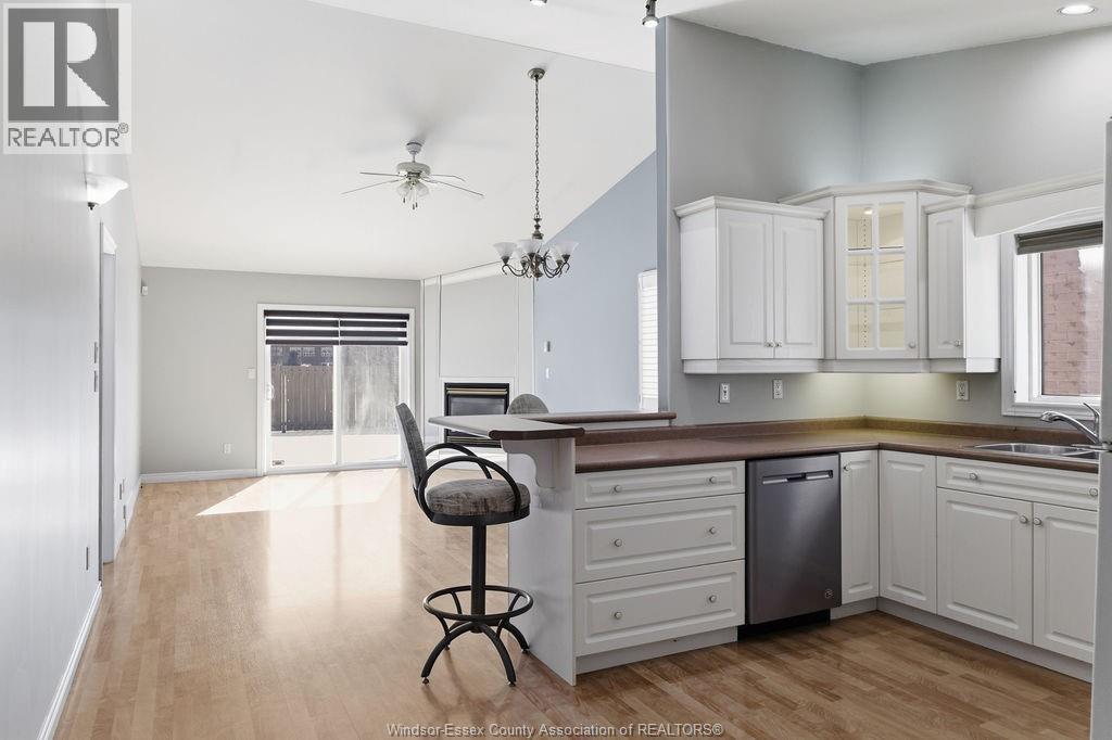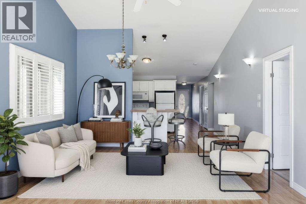Enjoy maintenance-free living in this beautifully updated East Windsor end-unit townhome offering the rare combination of no rear neighbours and a prime location directly across from Blue Heron Park with scenic lake views and walking trails. Situated in a quiet, highly desirable East Riverside neighbourhood, this home features an open-concept kitchen with island overlooking the living room with gas fireplace, a spacious primary bedroom with walk-in closet and ensuite, second bedroom or office, and main floor laundry. The unfinished lower level offers excellent potential for additional living space with roughed-in bath and ample storage. Updated paint, flooring, plumbing. Monthly association fee $115 includes, snow, grass, roof, sprinkler. (id:4555)