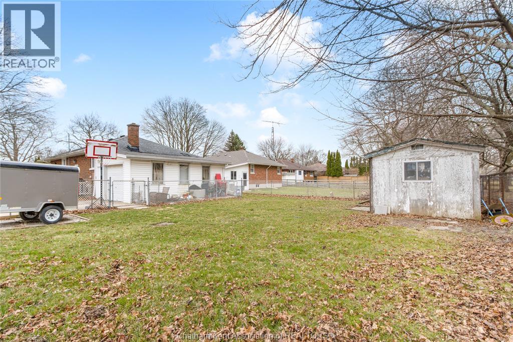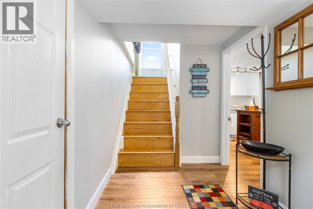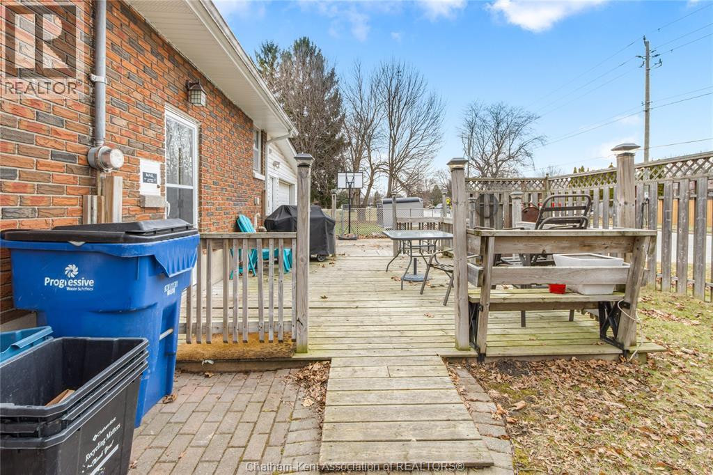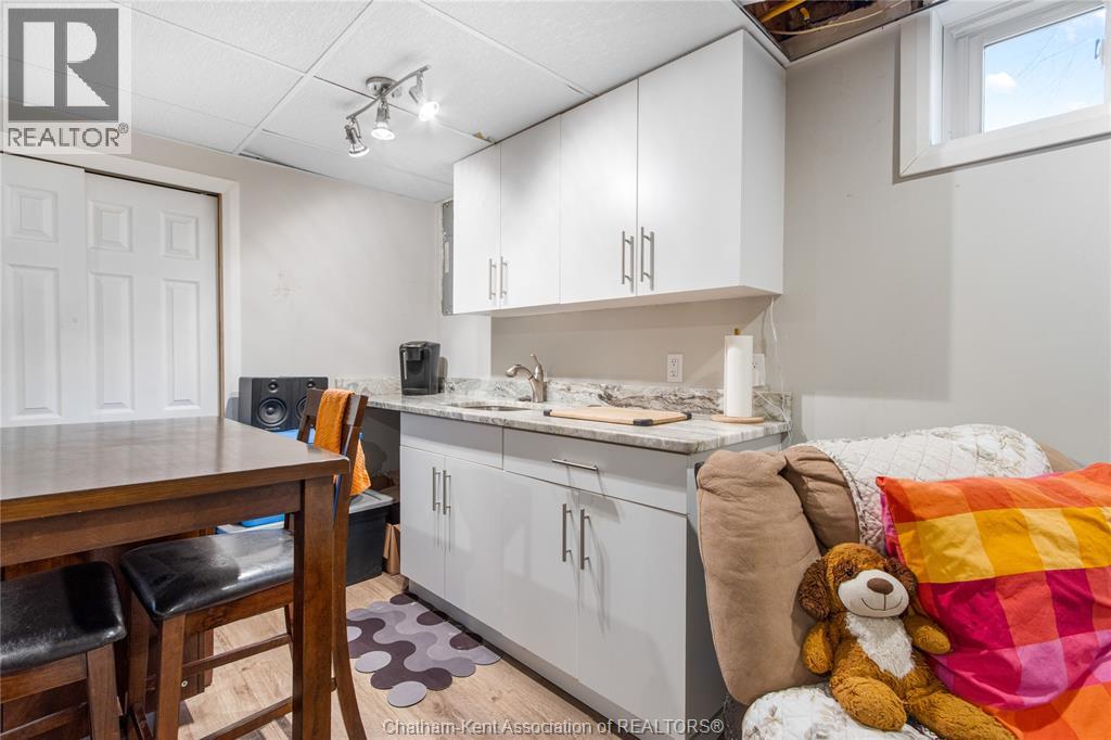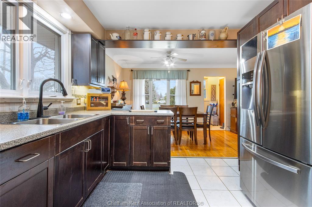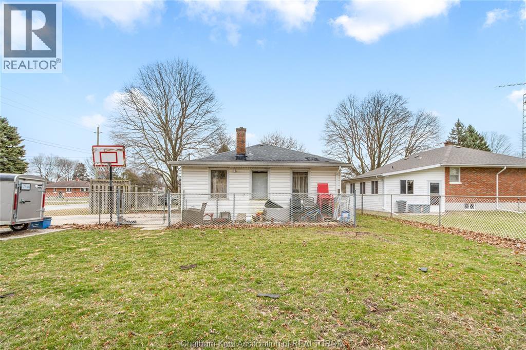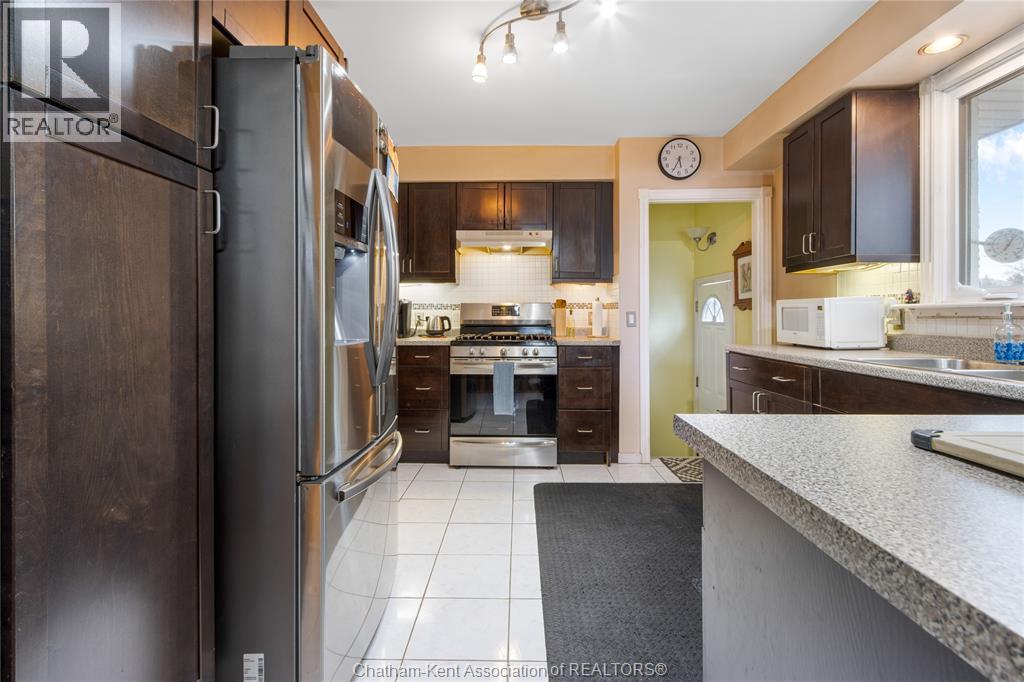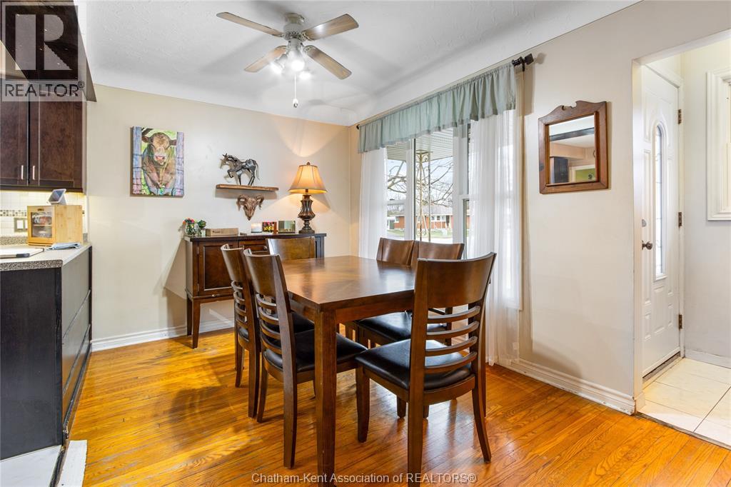Situated on a corner lot in a quiet north-side Chatham neighbourhood, this well-maintained bungalow offers 3+1 bedrooms and 2 full bathrooms, with numerous updates throughout. The kitchen features ample cabinetry, stainless steel appliances, and an open layout connecting into the dining area and living room, highlighted by hardwood flooring. The lower level provides additional living space, including a fourth bedroom and a spacious rec room with a wet bar—perfect for entertaining or extended family use, all finished with a modern, updated feel. An attached garage offers convenient sheltered parking or workspace, while the fully fenced yard provides a great setting for family enjoyment and outdoor activities. (id:4555)