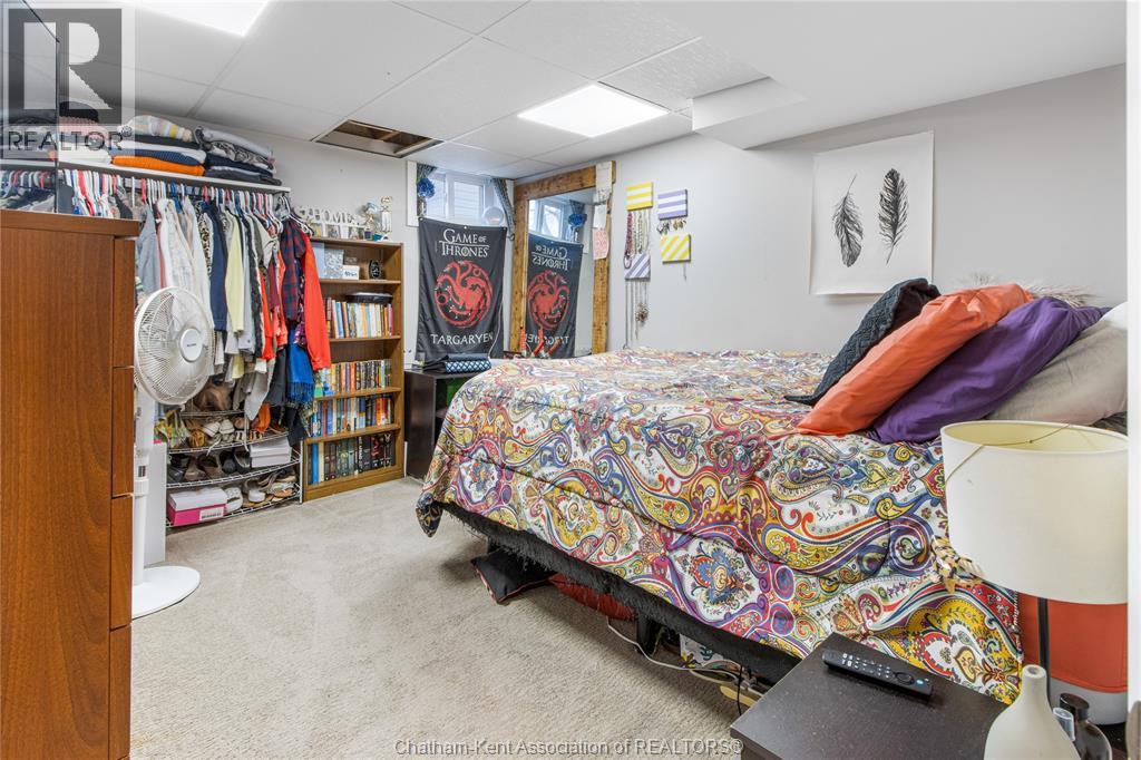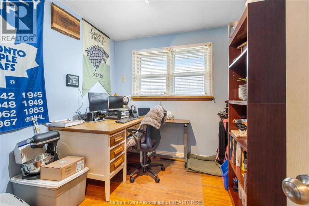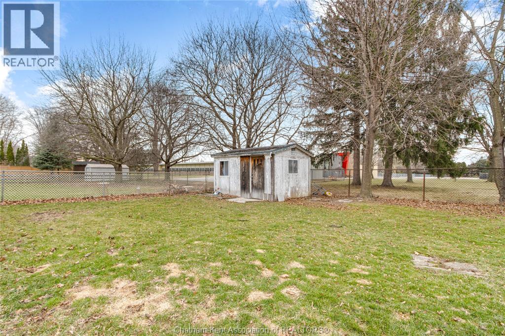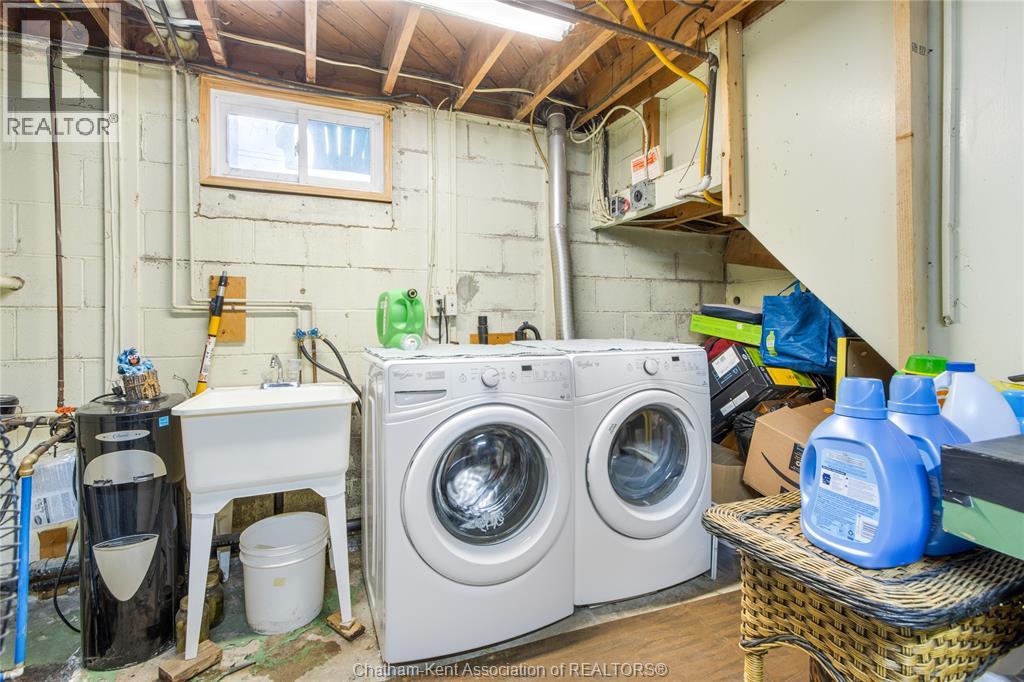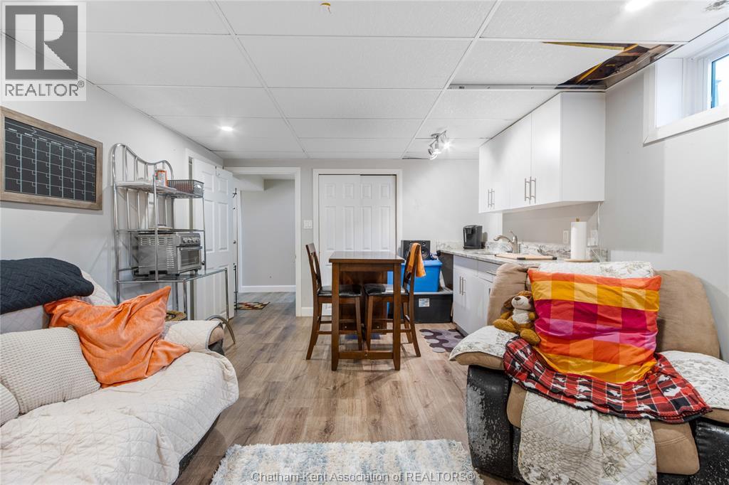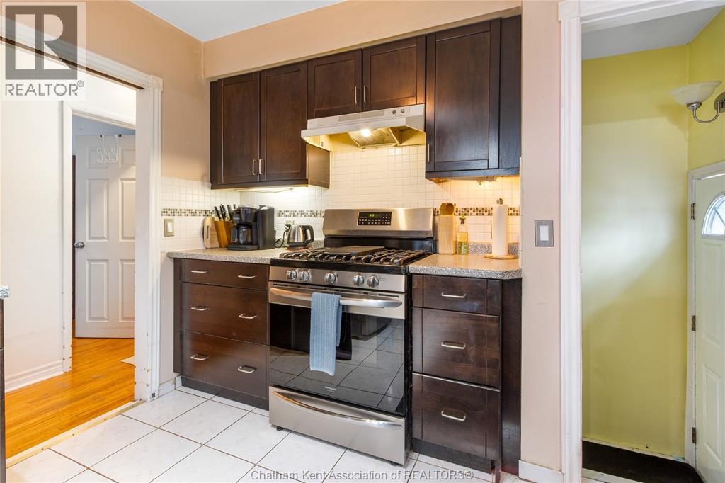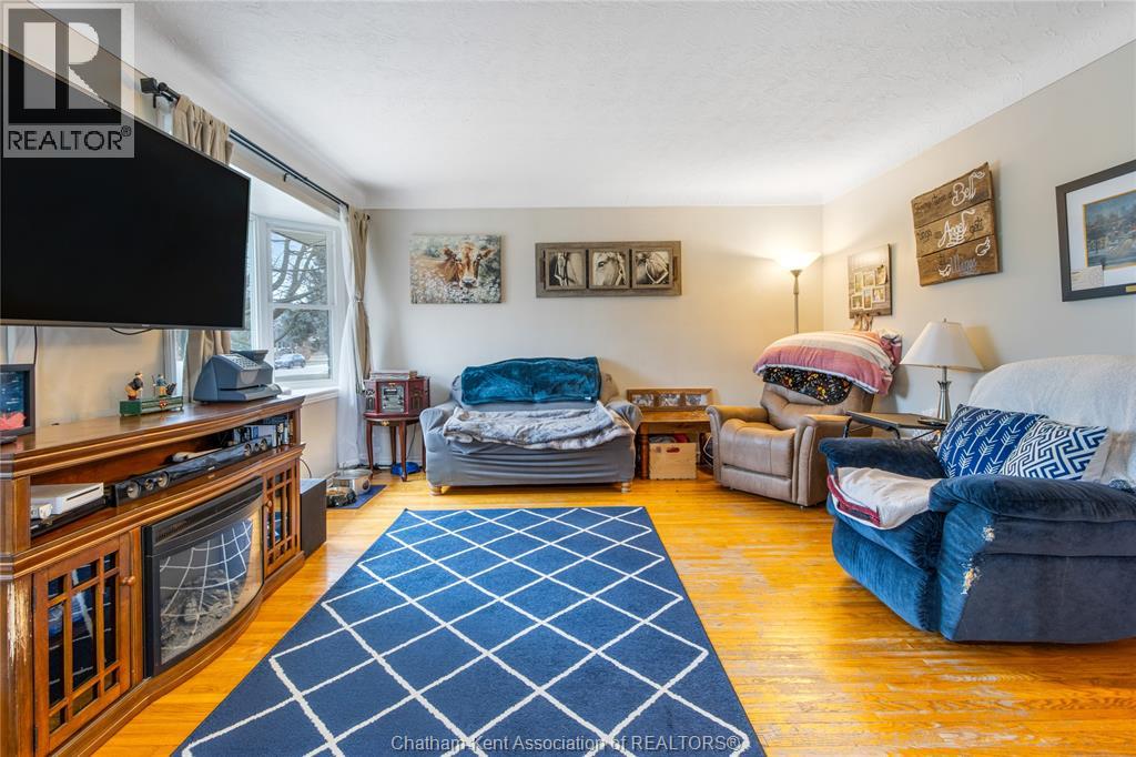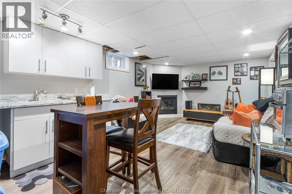 Situated on a corner lot in a quiet north-side Chatham neighbourhood, this well-maintained bungalow offers 3+1 bedrooms and 2 full bathrooms, with numerous updates throughout. The kitchen features ample cabinetry, stainless steel appliances, and an open layout connecting into the dining area and living room, highlighted by hardwood flooring. The lower level provides additional living space, including a fourth bedroom and a spacious rec room with a wet bar—perfect for entertaining or extended family use, all finished with a modern, updated feel. An attached garage offers convenient sheltered parking or workspace, while the fully fenced yard provides a great setting for family enjoyment and outdoor activities. (id:4555)