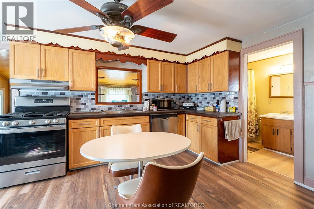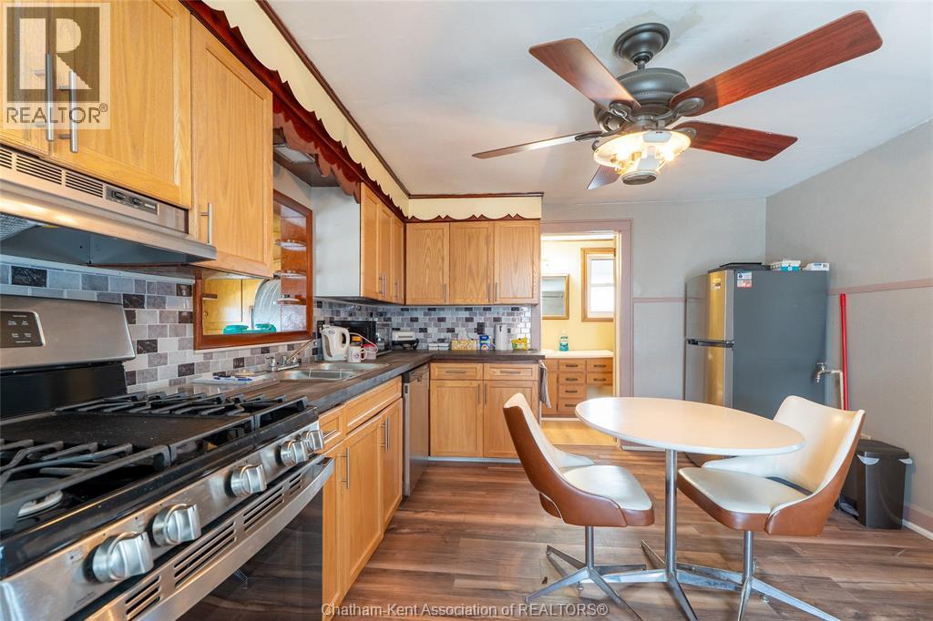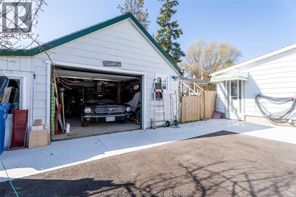 Charming and affordable 1 3/4-storey home on a spacious lot! This 2-bedroom, 1-bathroom home has seen many recent updates and is move-in ready. Recent improvements include a brand-new asphalt and cement driveway, new garage door and windows, all new flooring in the kitchen, bathroom, and mud room, as well updated kitchen cabinets, backsplash, and countertops. The bathroom has also been refreshed with a new tub, tub surround, and toilet. Additional upgrades include a brand-new gas dryer, new dishwasher, and fresh paint throughout. Features include updated windows (2013) and 100-amp breakers. The fully fenced yard is beautifully landscaped, a true gardener’s dream. The oversized lot offers plenty of outdoor space, complemented by a detached 1.5-car garage with an attached carport and additional storage area, providing ample room for vehicles, tools, and hobbies. The above-ground pool with deck is currently in working order; however, it is being included in “as is” condition. All appliances are included for added. Located within walking distance to all amenities, as well as Wallaceburg District Secondary School and the scenic Carothers Park Trail, this property offers both convenience and comfort in a great location. (id:4555)