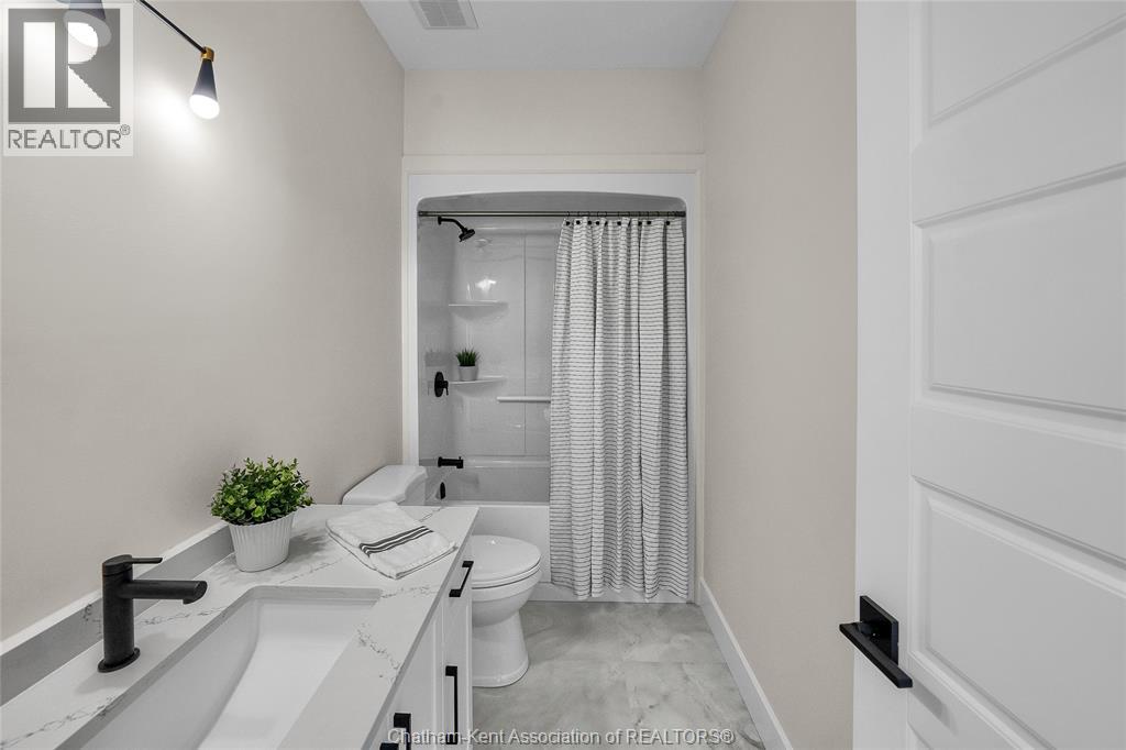 Step into this NEW BUILD home that instantly feels right! The Fairview model by Mi Cazza Construction delivers bright, easy living in one of Chatham’s most exciting new neighbourhoods just off Indian Creek with quick 401 access. From the moment you enter, the open layout welcomes you with natural flow and inviting gathering spaces designed for real life. The kitchen becomes the heart of the home with beautiful Mylen cabinetry, a statement island made for morning coffee and evening conversations, and a walk-in pantry that keeps everything organized. Just beyond, the dining area and cozy family room with gas fireplace create the kind of space where everyday moments turn into lasting memories. The thoughtful split-bedroom layout offers flexibility for families, guests or a dedicated home office, while the private primary suite tucked at the back of the home offers a true retreat with a walk-in closet, double vanity and walk-in shower. Downstairs, the bright lower level with large windows is ready to grow with you, offering endless possibilities for future living space, entertaining or family hangouts. Set on a premium 61-ft wide lot over 140 ft deep, the covered rear porch and expansive backyard invite summer barbecues, quiet evenings and room to dream big outdoors. Skip the stress, skip the wait and enjoy the confidence of brand-new living backed by the peace of mind of the 7-Year Tarion Warranty. Perfect for downsizers, professionals or move-up buyers seeking one-floor living. Concrete driveway and sod scheduled for completion. Some exterior photos may be artist renderings. Purchase price based on HST rebate applicable effective April 1, 2026 to March 31, 2027, assignable to the builder. Price subject to Buyer’s eligibility for the rebate and the enactment of the applicable legislation. In the event the Buyer does not qualify for the rebate, in whole or in part, the purchase price shall be increased by the corresponding amount of HST. (id:4555)