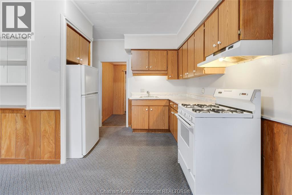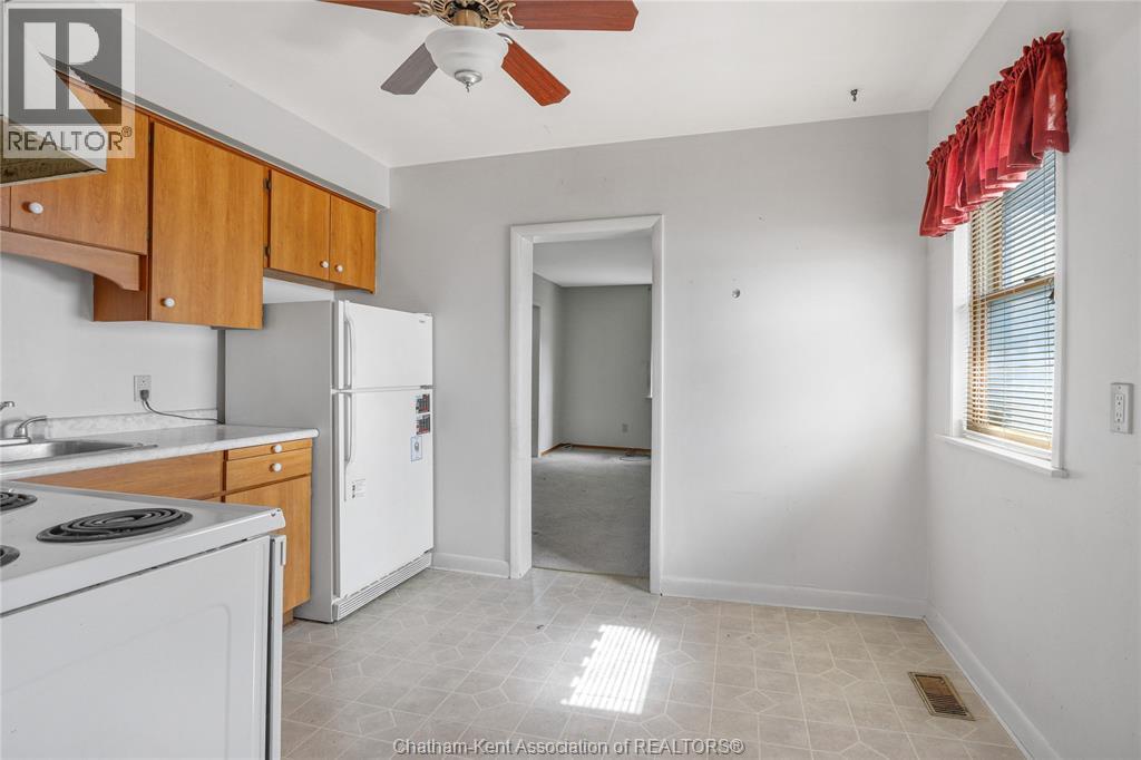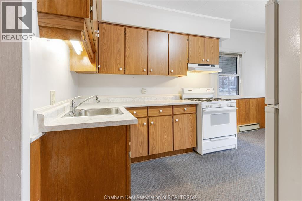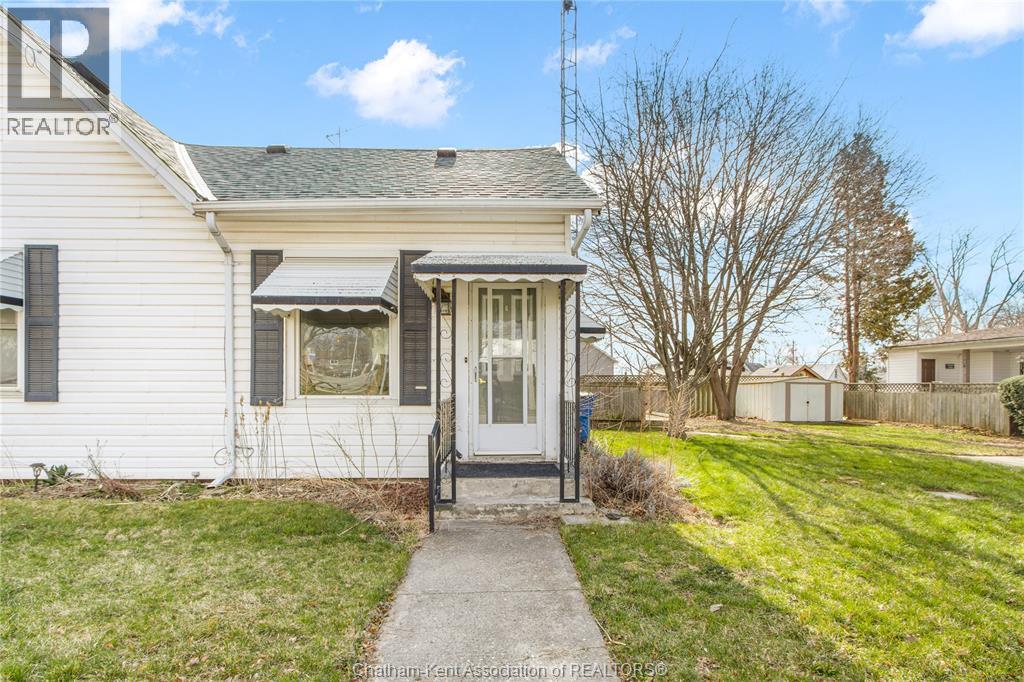 Located in the charming town of Blenheim, Ontario, and just a short walk to the bustling downtown amenities, this versatile one-and-a-half-story residence invites a range of future endeavours. The property has separate hydro meters for each side, while water and gas are on a single shared meter. On one side of the residence, you’ll find a welcoming mudroom, a kitchen with ample cabinetry, a spacious living room, and a four-piece bathroom, as well as three bedrooms upstairs. This side also offers a single car driveway and a storage shed. The other side of the residence features an eat-in kitchen, a living room area, one bedroom, a four-piece bath, and a double-car concrete driveway. This side is equipped with an additional heating source via a wall furnace. Please note: This property is being sold in as-is condition at the request of the estate. While GeoWarehouse lists it as a semi-detached under one owner, municipal records are not fully conclusive. Buyers are encouraged to verify all details independently to ensure accuracy. (id:4555)