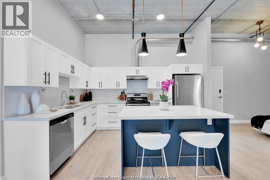 Introducing The Victoria at The Townsend—Tecumseh's premier loft-style apartment rentals. This stunning one-bedroom, 1.5-bathroom suite features soaring 11-foot exposed ceilings, modern finishes, and a spacious eat-in island, creating an open and stylish living space. Enjoy full-size appliances, in-suite laundry, an assigned parking spot, and secure key fob entry for your convenience. Ideally situated near shopping centers, pharmacies, restaurants, public transit, and with easy access to the EC Row Expressway, The Victoria offers both luxury and accessibility. Available May 1st. Contact us today to schedule a showing! (id:4555)
